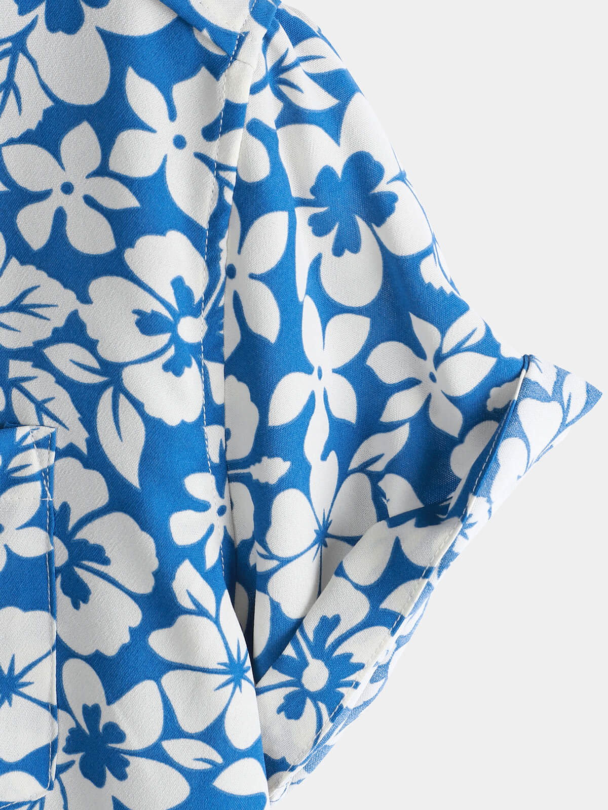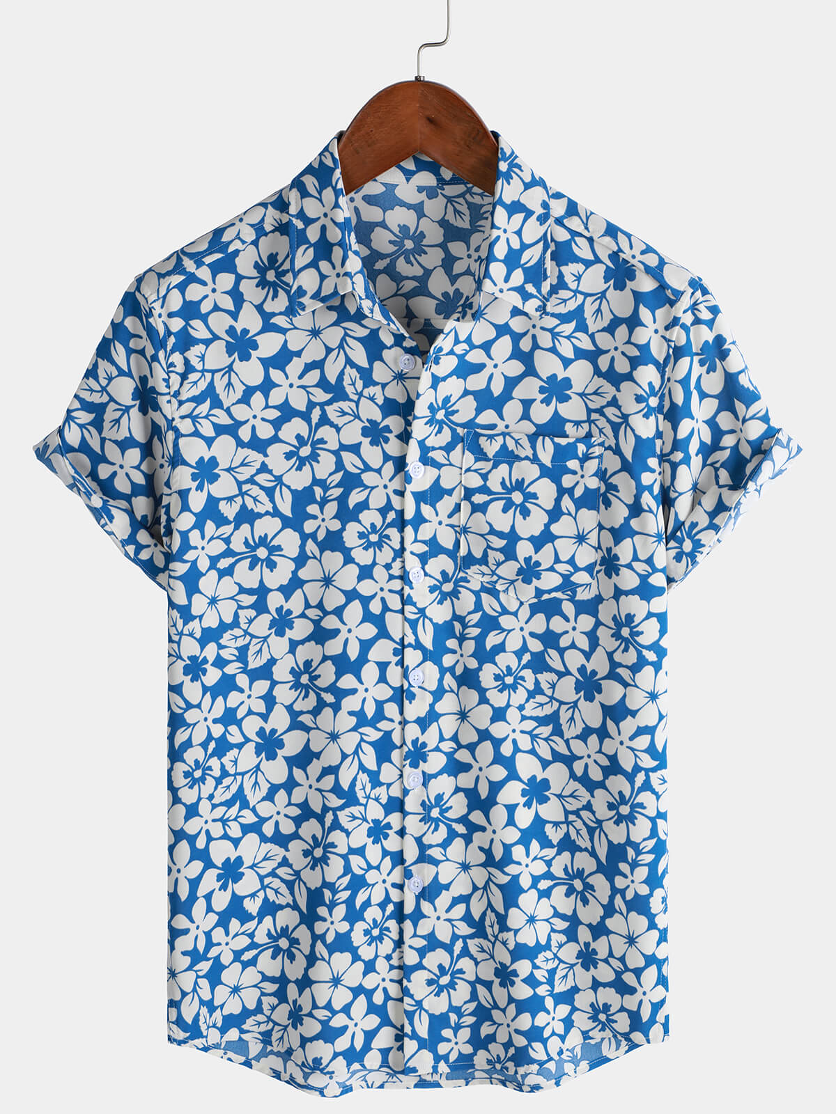 Men's Summer Floral Print Holiday Flower Resort Casual Short Sleeve Shirt