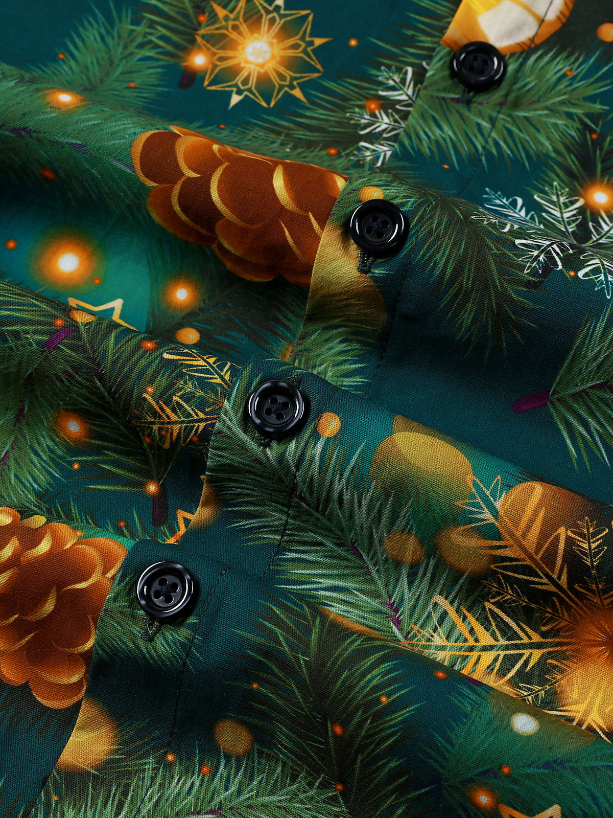 Men's Christmas Tree Print Cotton Holiday Long Sleeve Shirt