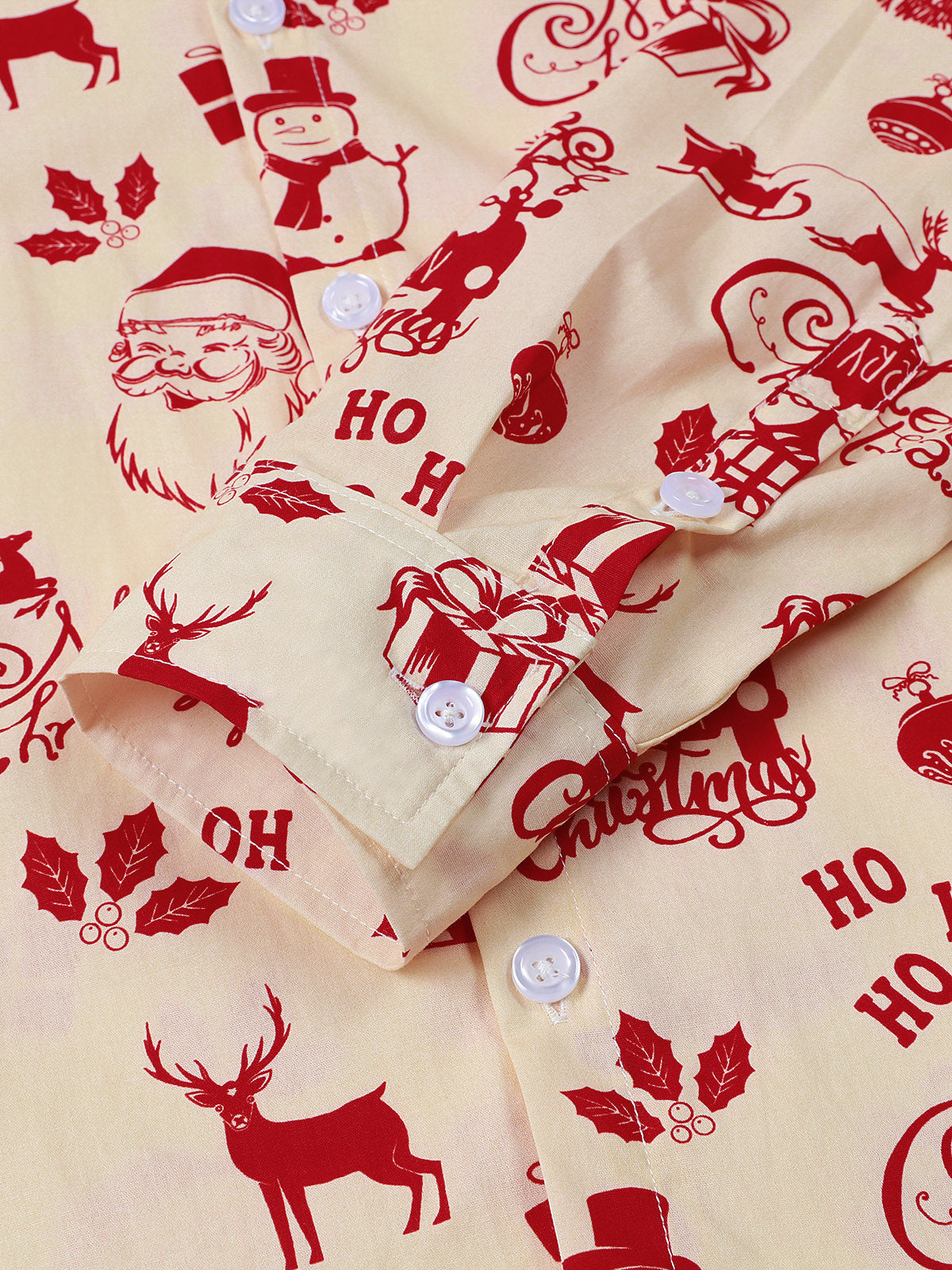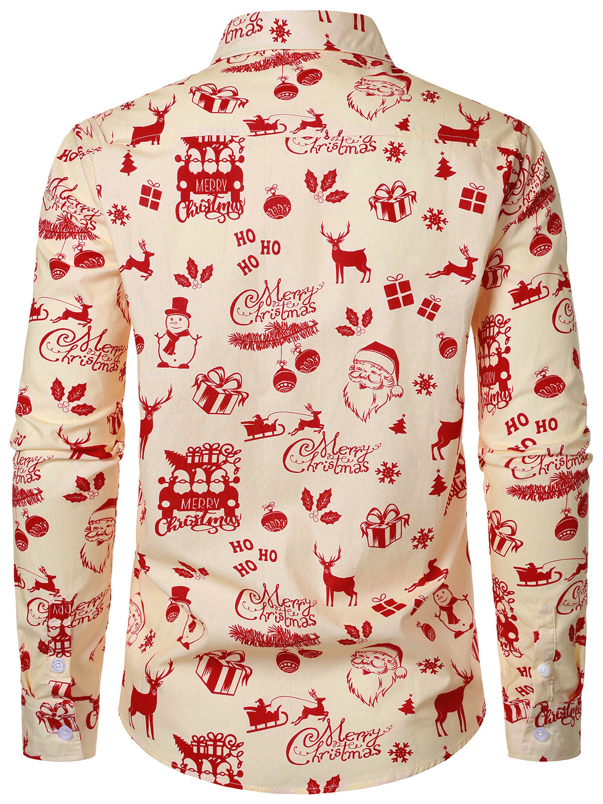 Men's Christmas Vintage Cotton Long Sleeve Shirt