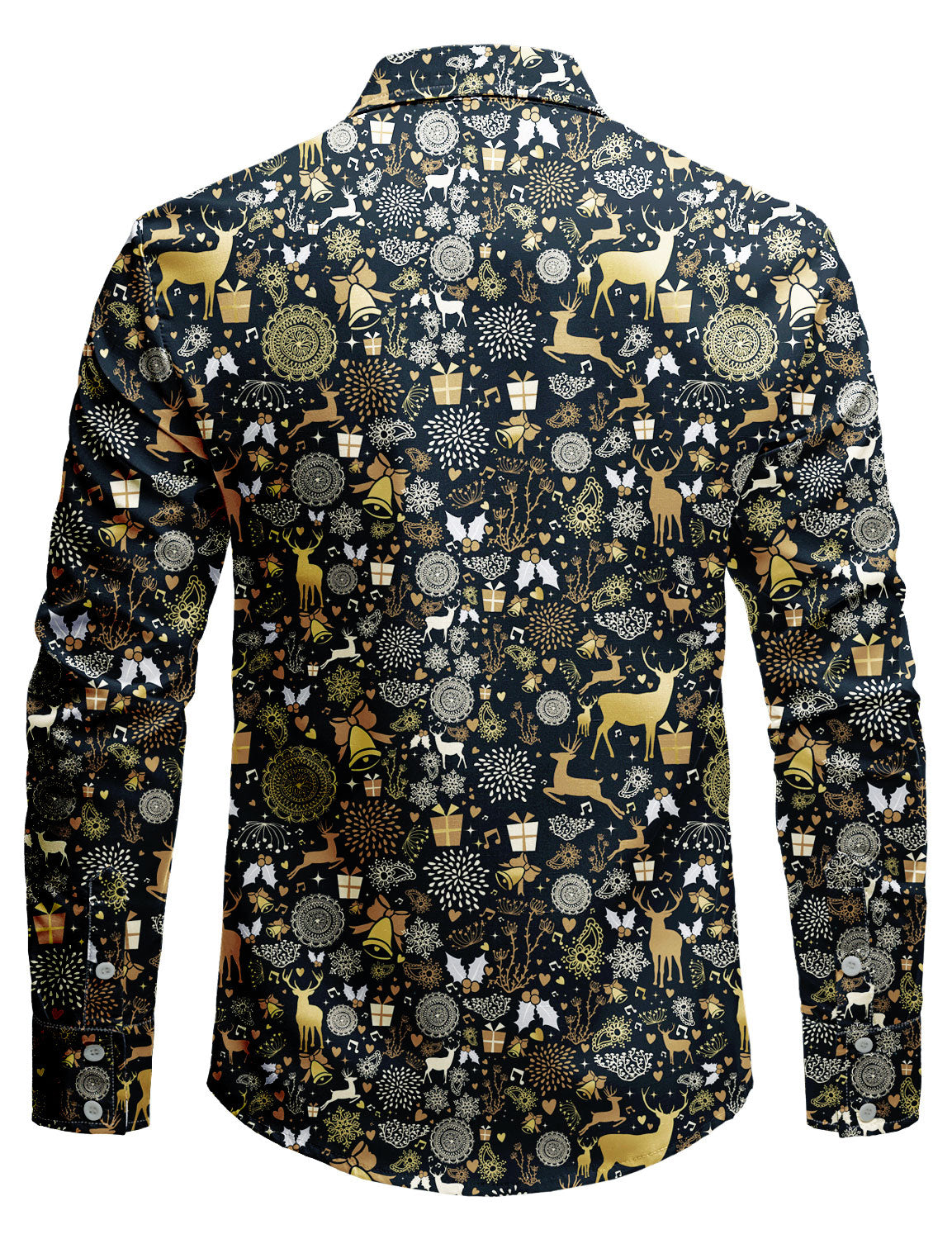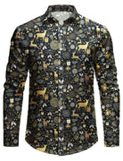 Men's Vintage Christmas Gold Reindeer Print Holiday Long Sleeve Shirt