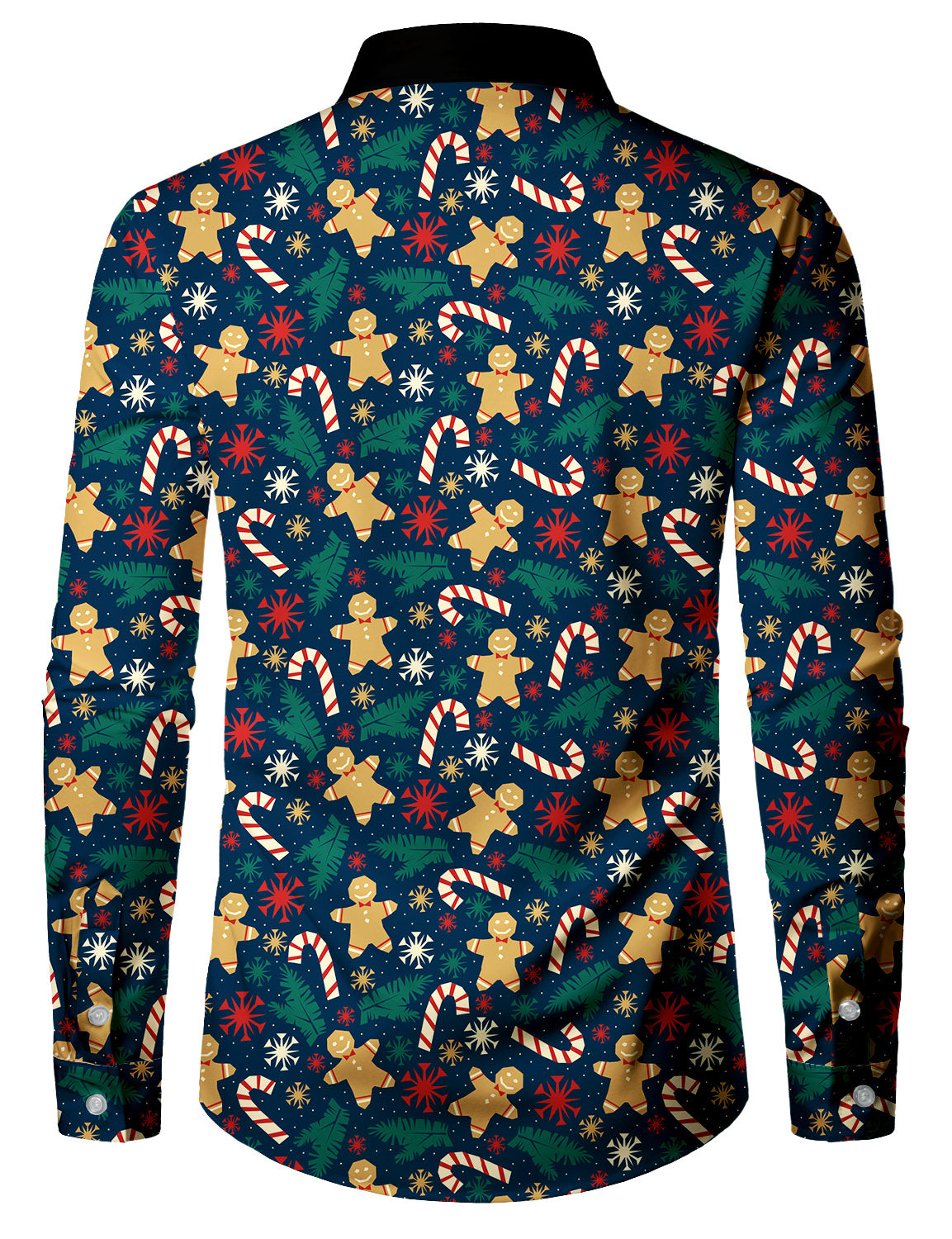 Men's Cotton Christmas Shiny Gingerbread Man Long Sleeve Shirt