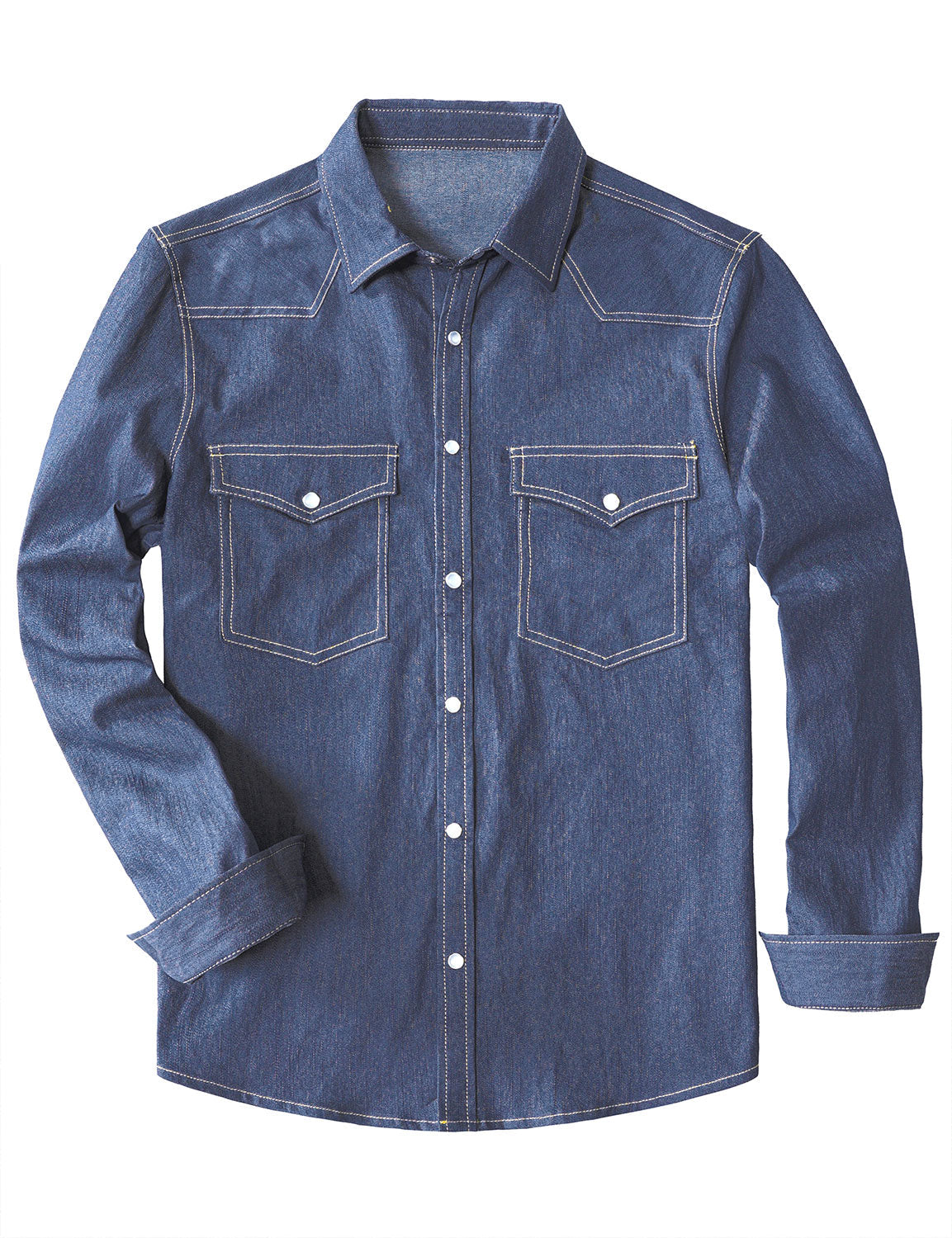 Men’s Cowboy Denim Pearl Snap Long Sleeve Shirt