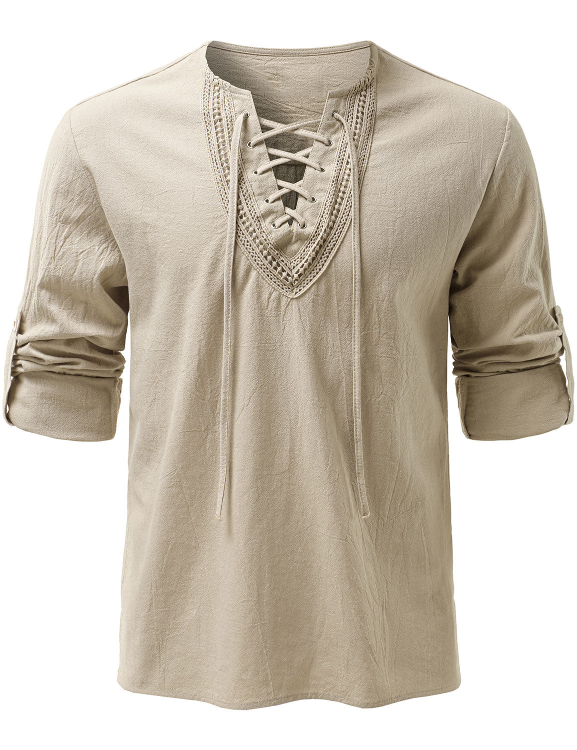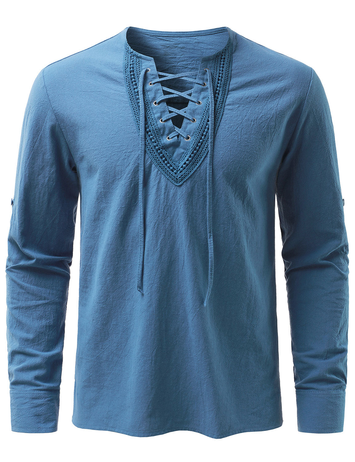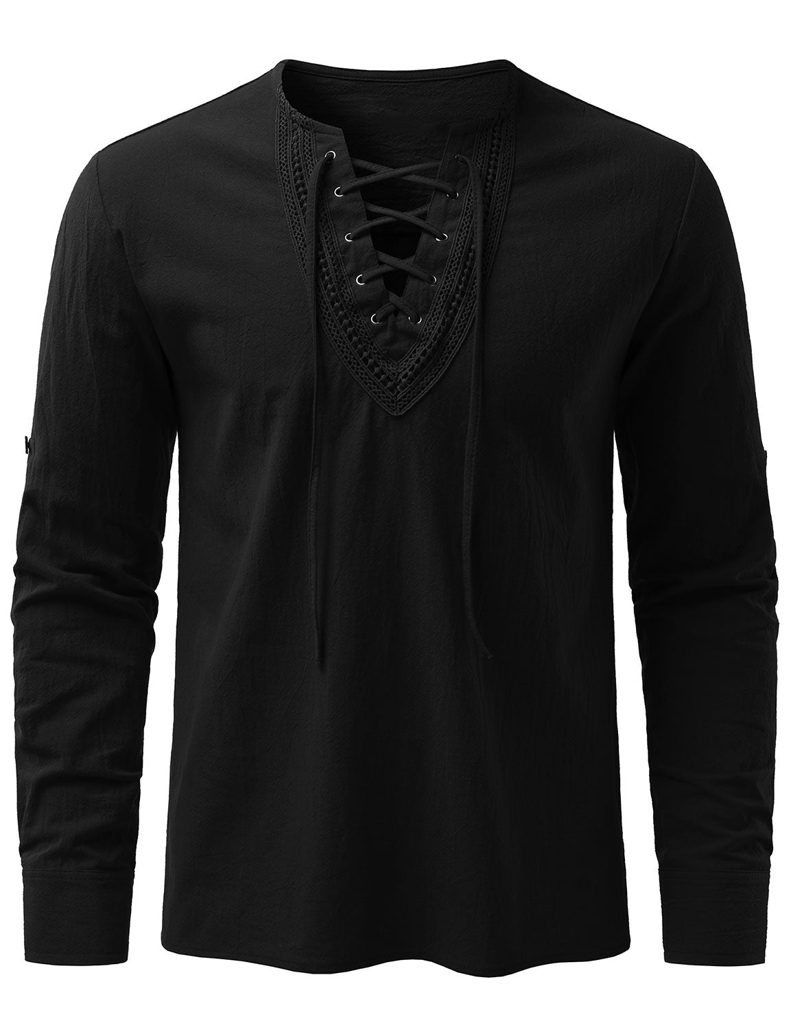 Men’s Pirate Viking Halloween Costume Gothic Steampunk Retro Long Sleeve Shirt