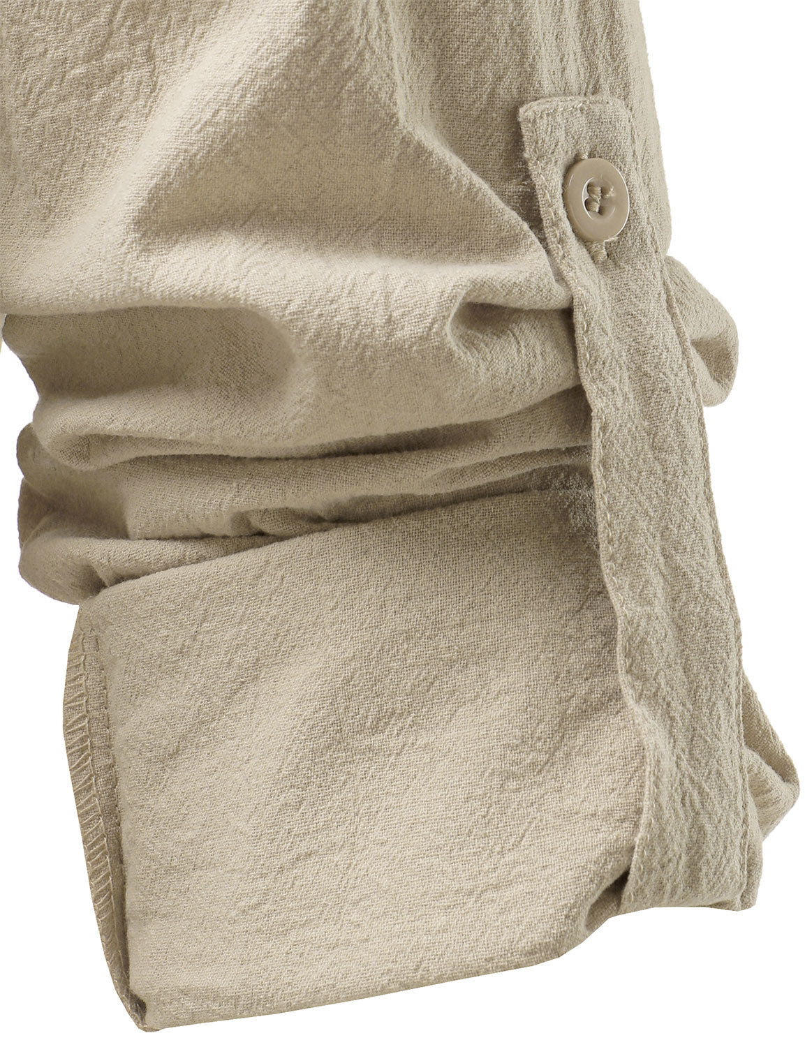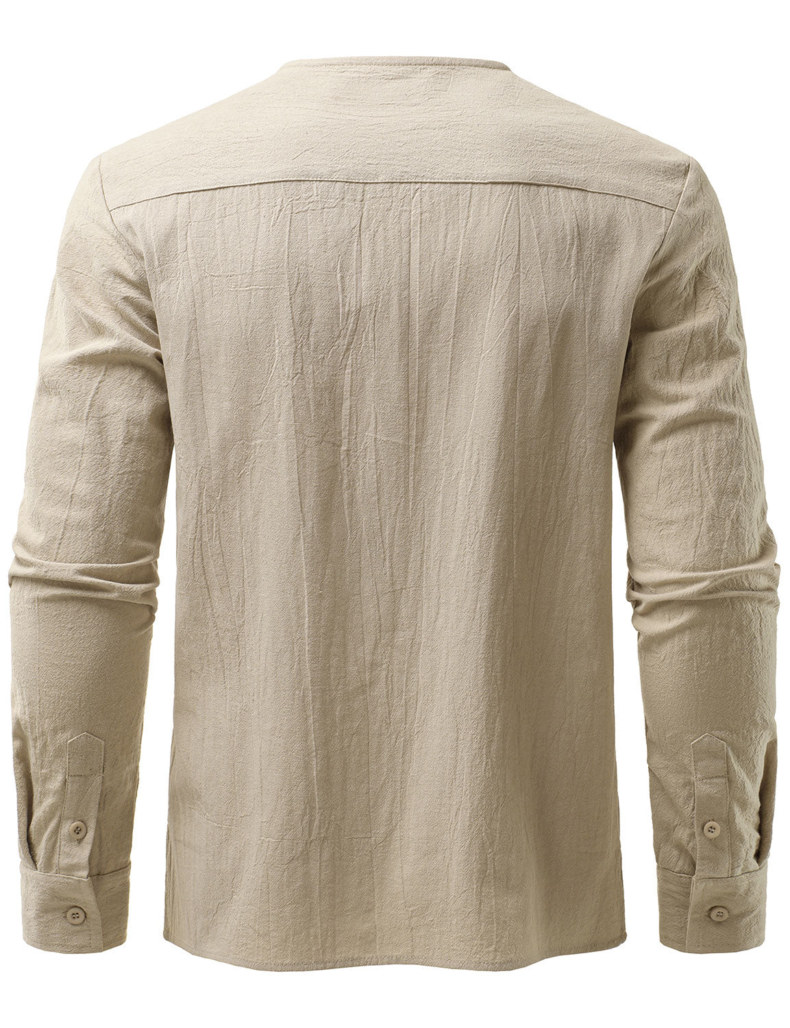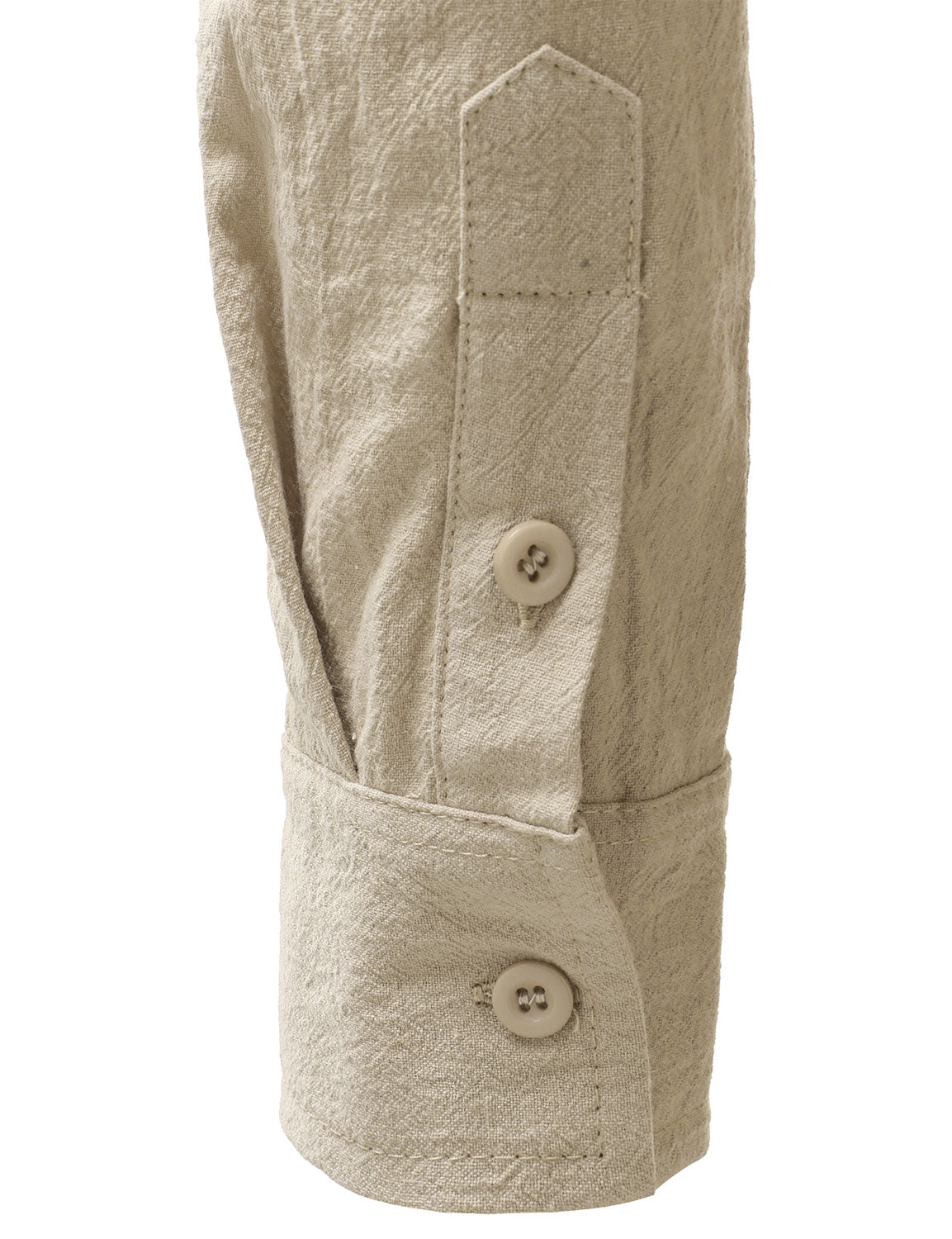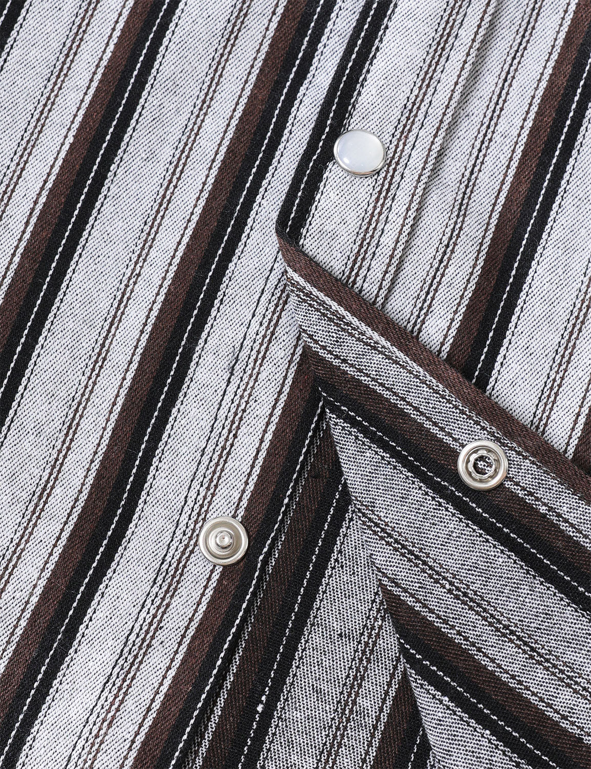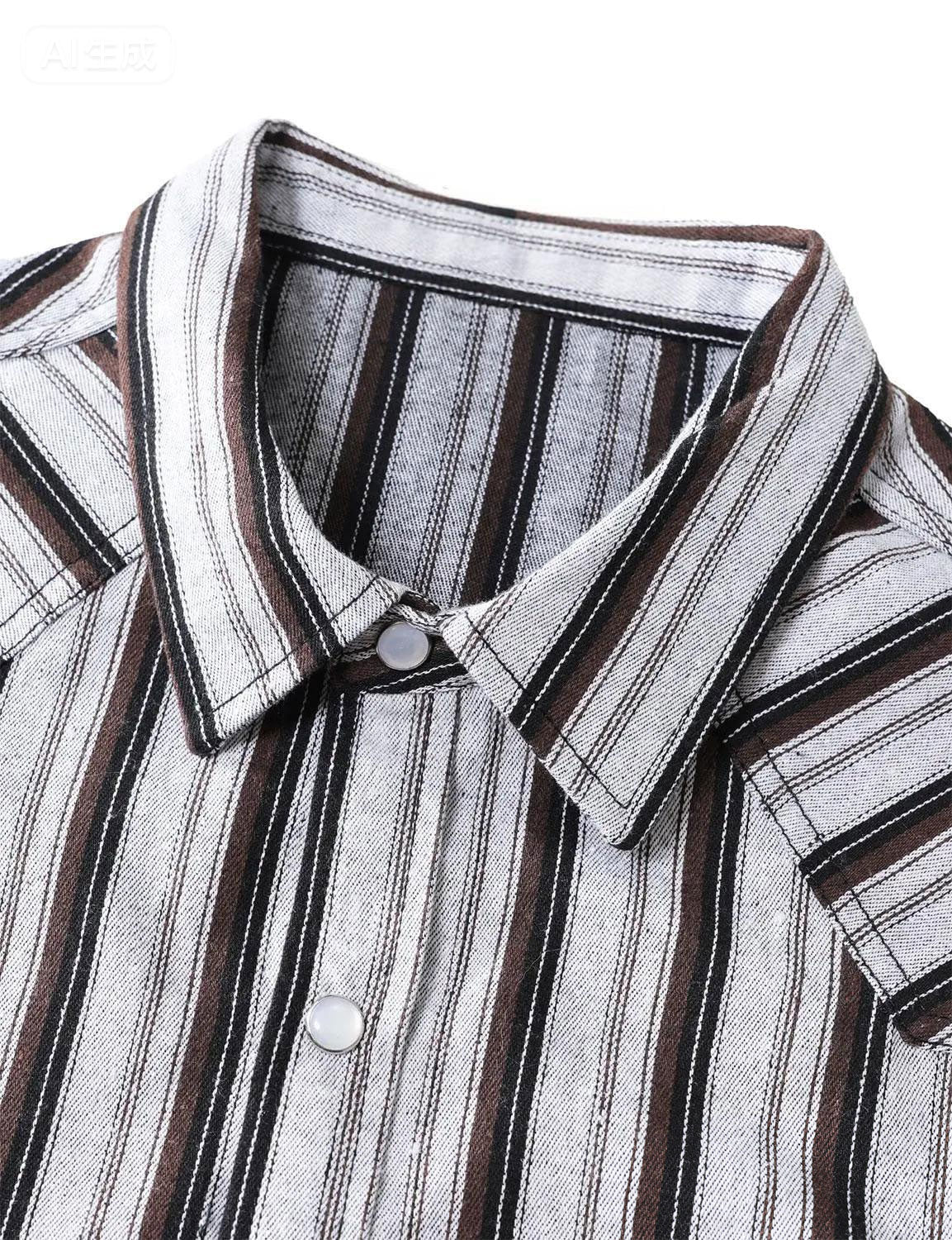Men's Casual Breathable Pocket Long Sleeve Khaki Striped Shirt