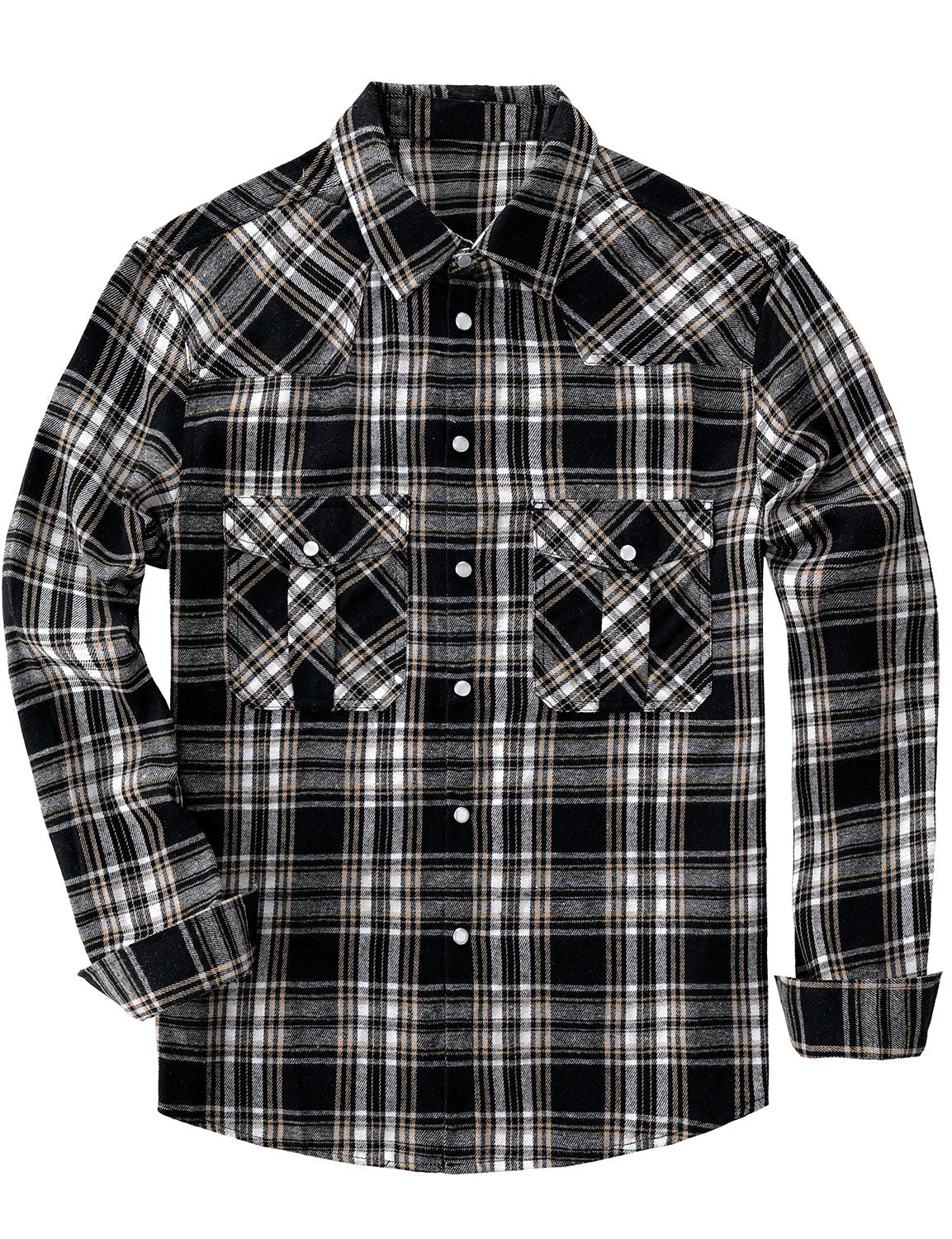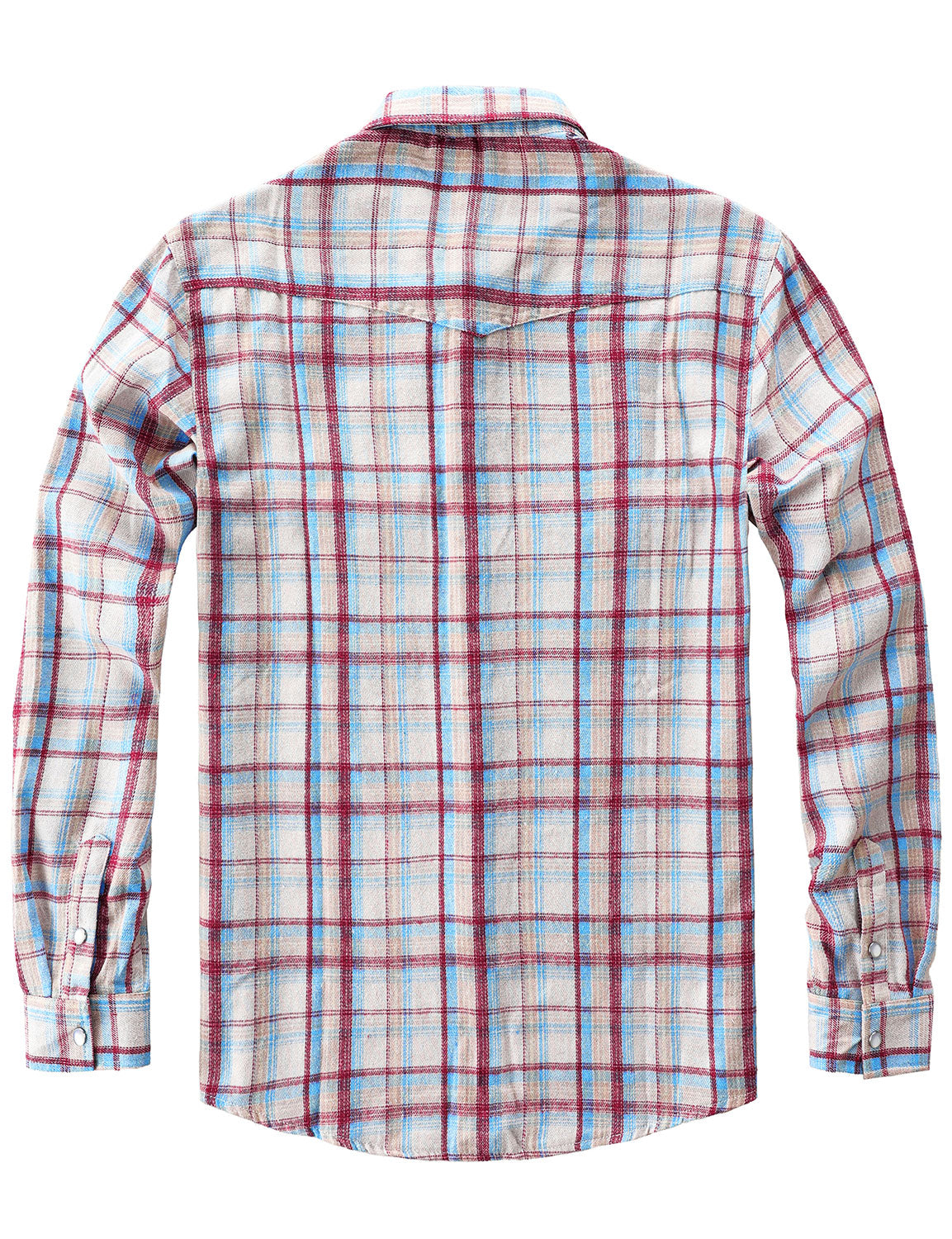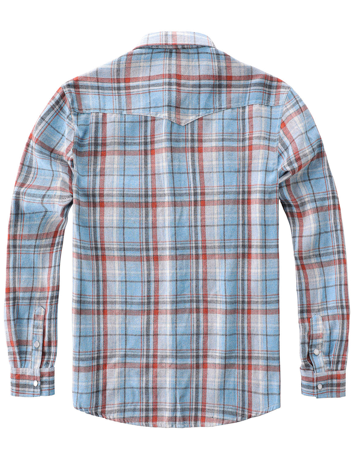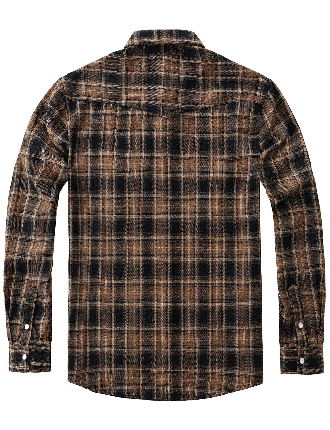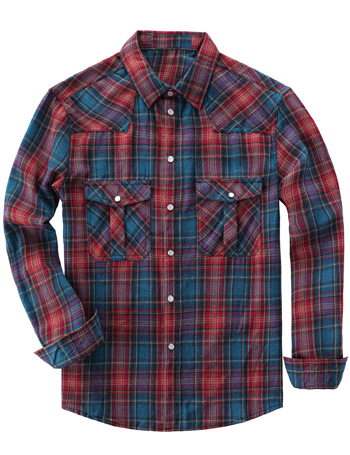Men's Western Pearl Snap Plaid Lightweight Flannel Long Sleeve Shirt
