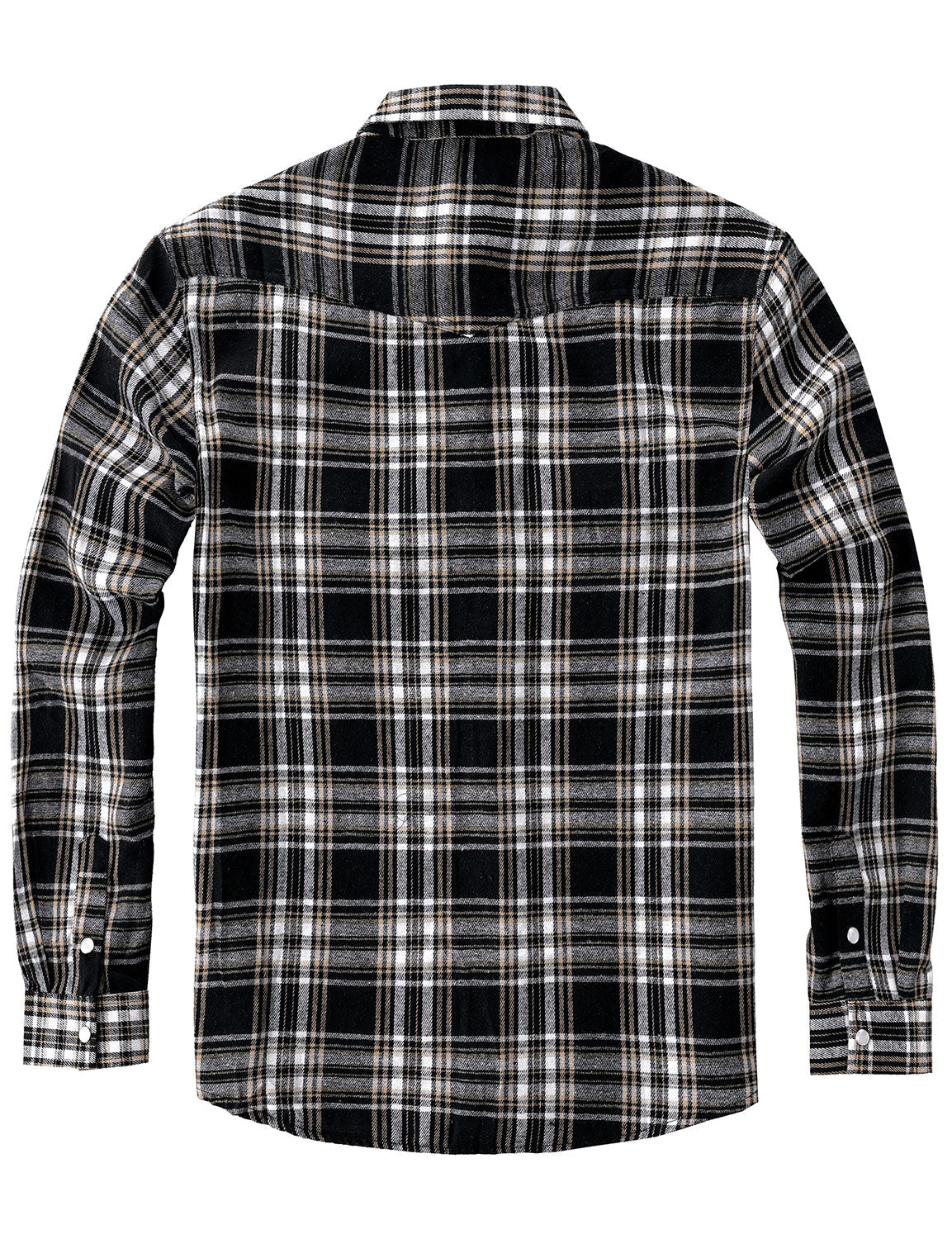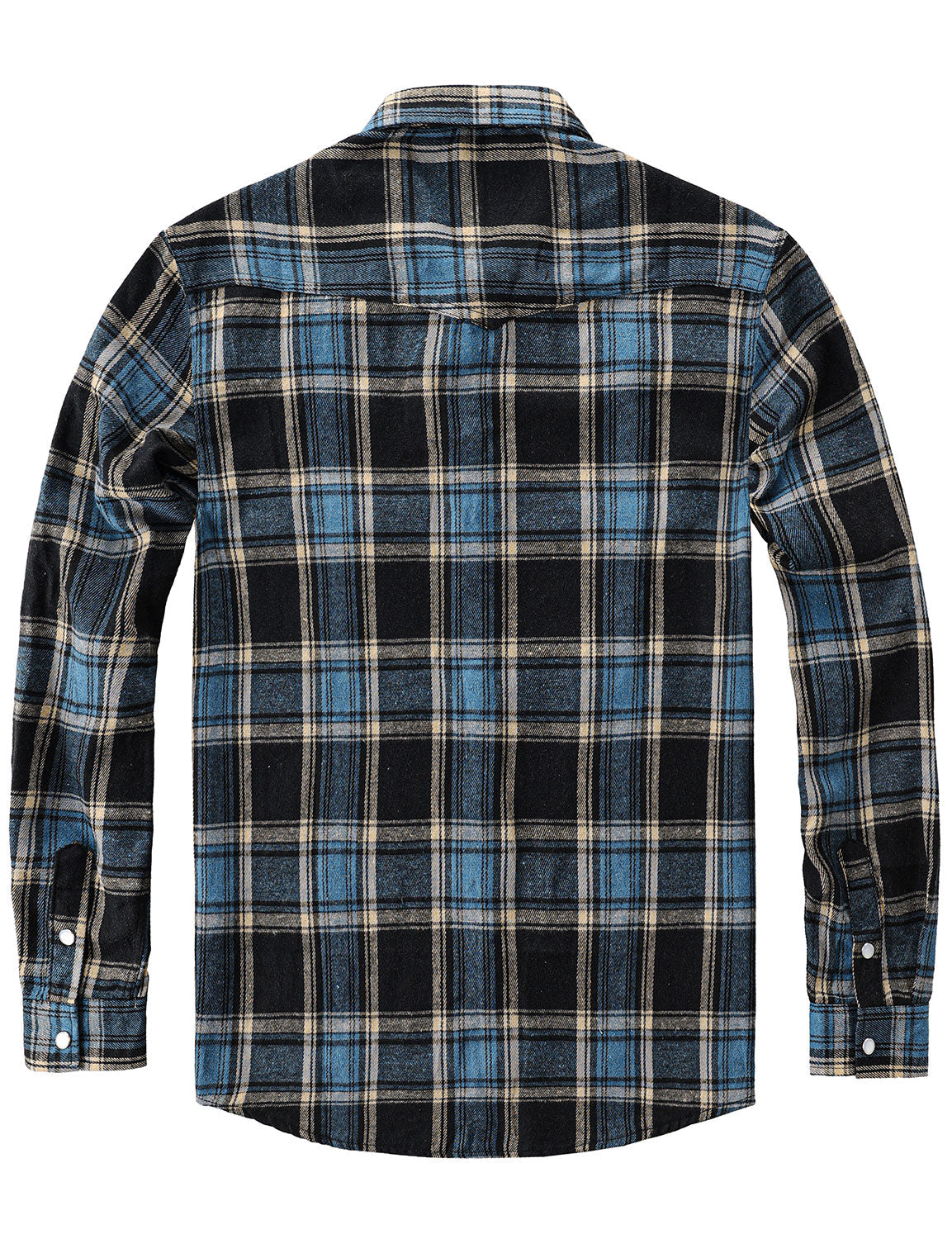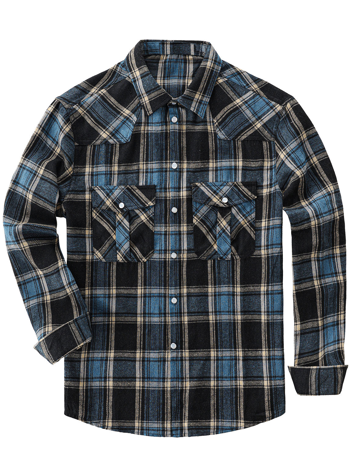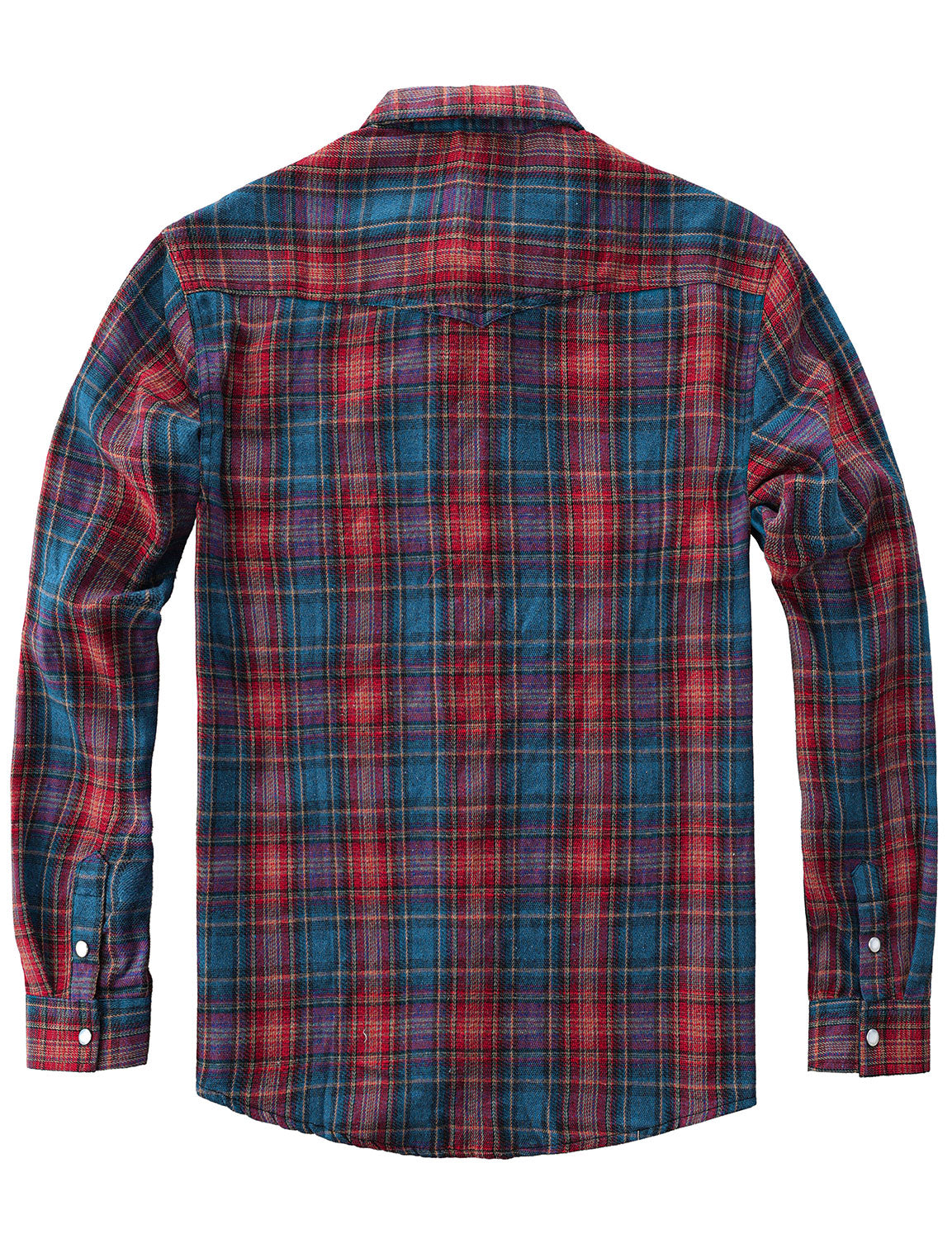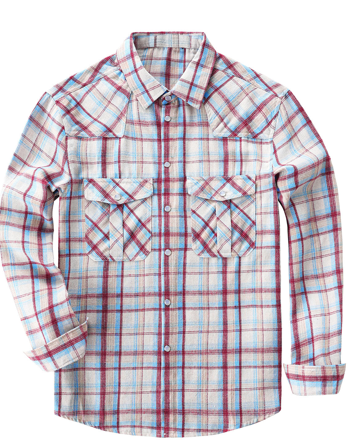 Men's Western Pearl Snap Plaid Lightweight Flannel Long Sleeve Shirt
