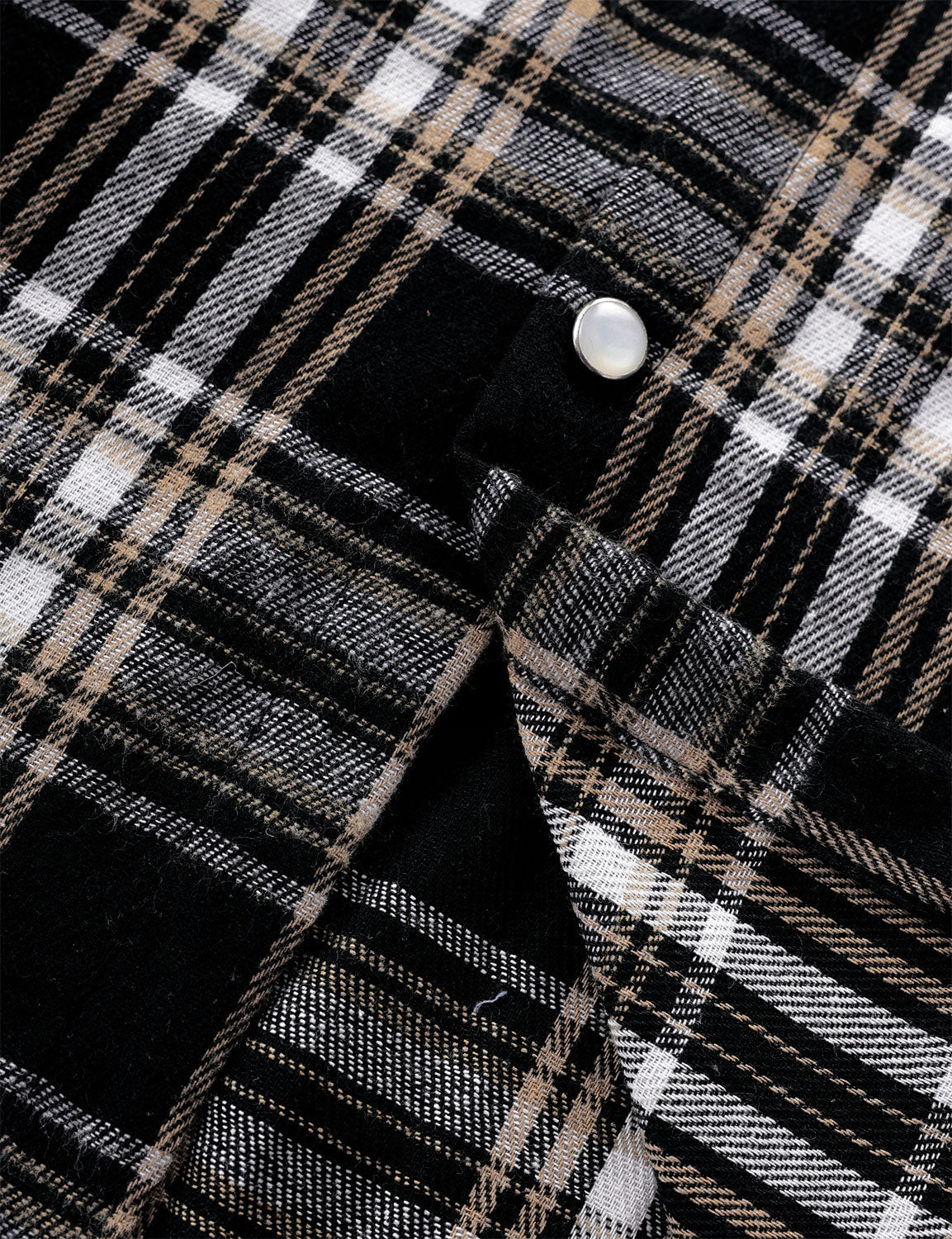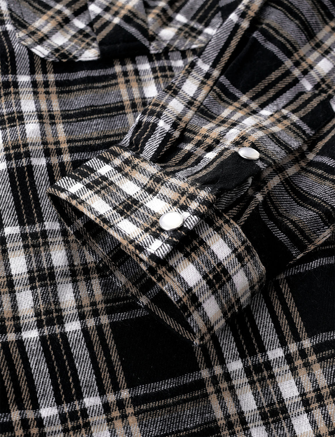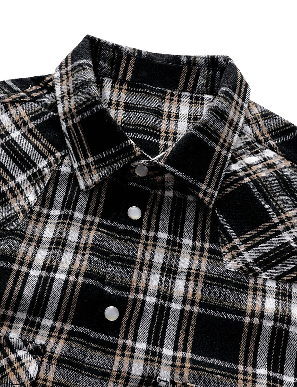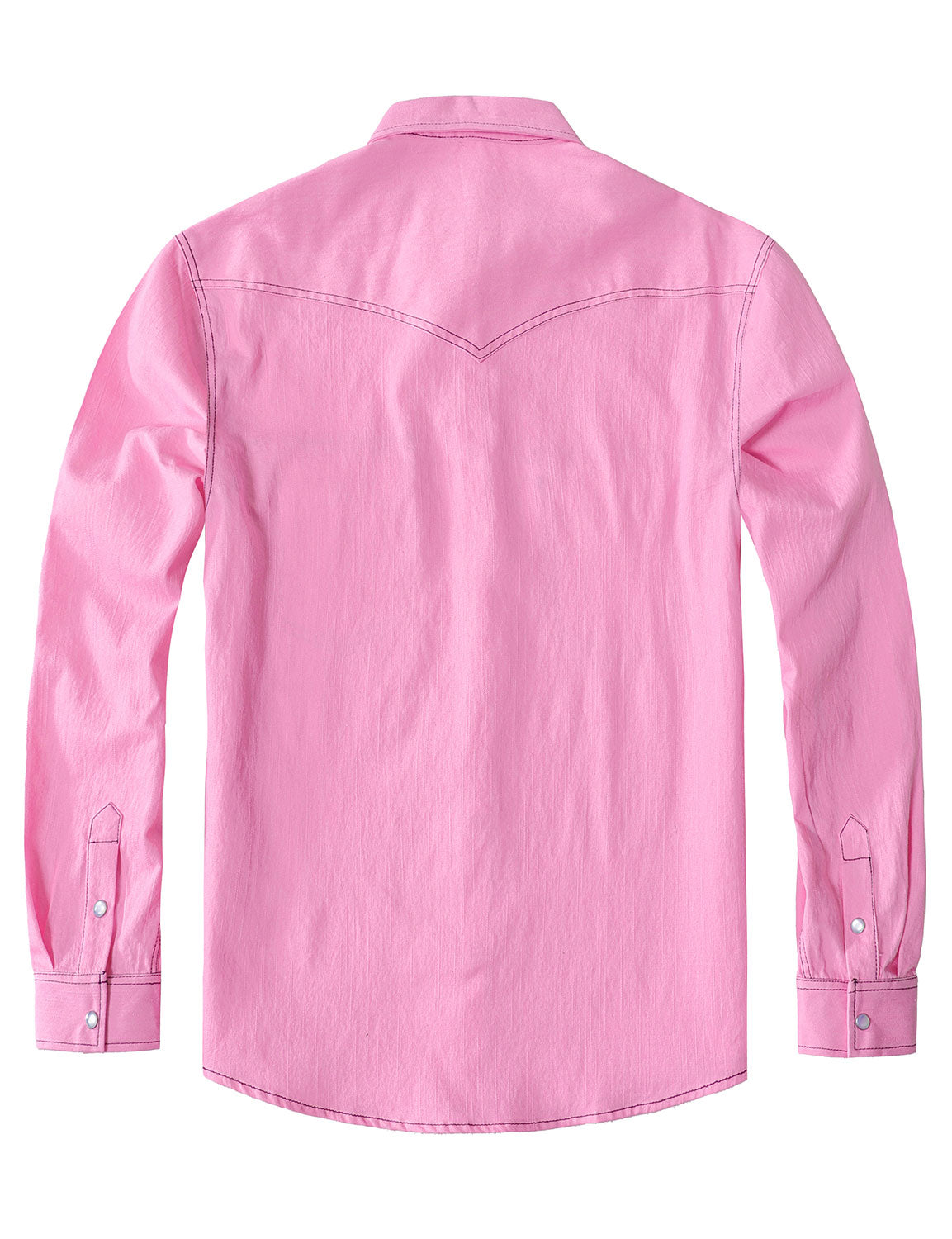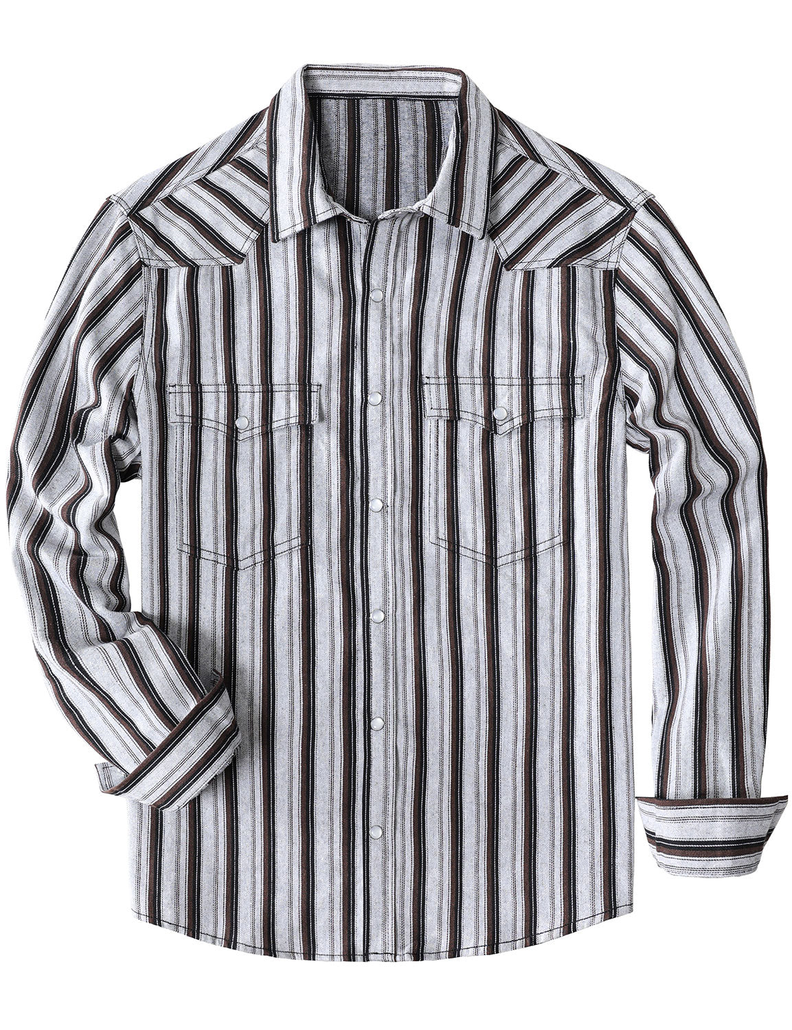 Men's Western Pearl Snap Plaid Lightweight Flannel Long Sleeve Shirt
