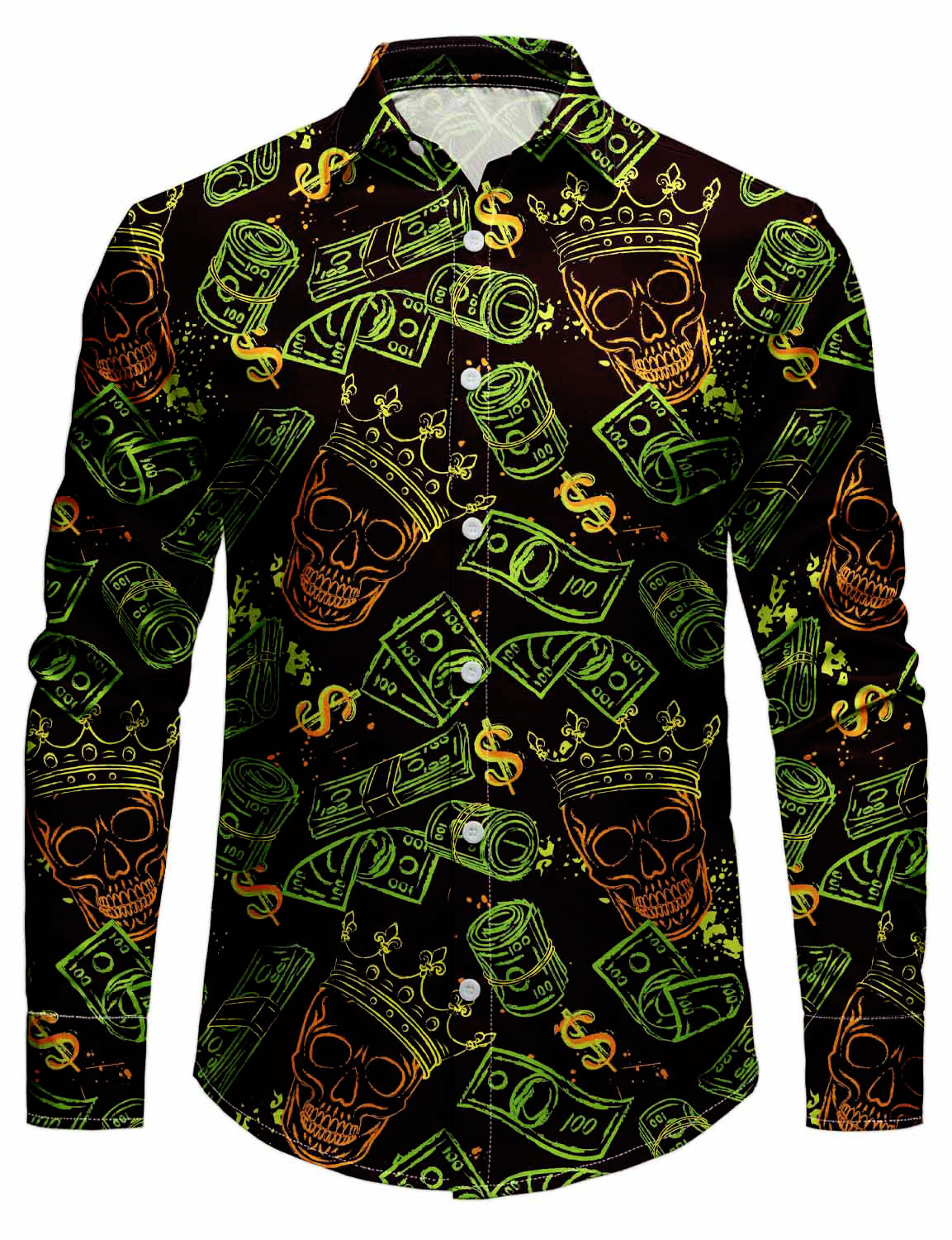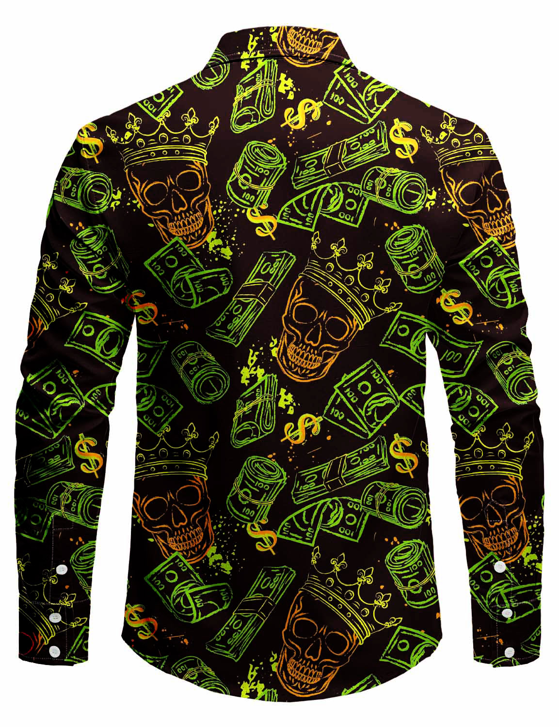 Men's Holiday Casual Cool Crown Skull Long Sleeve Shirt