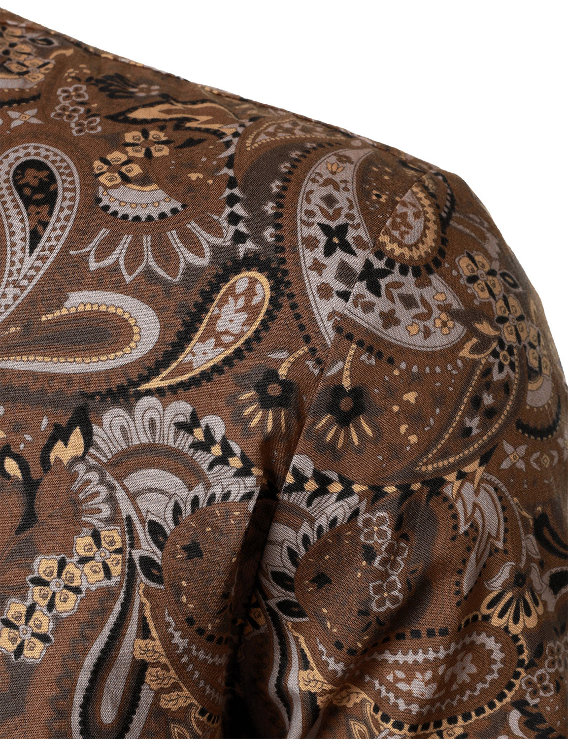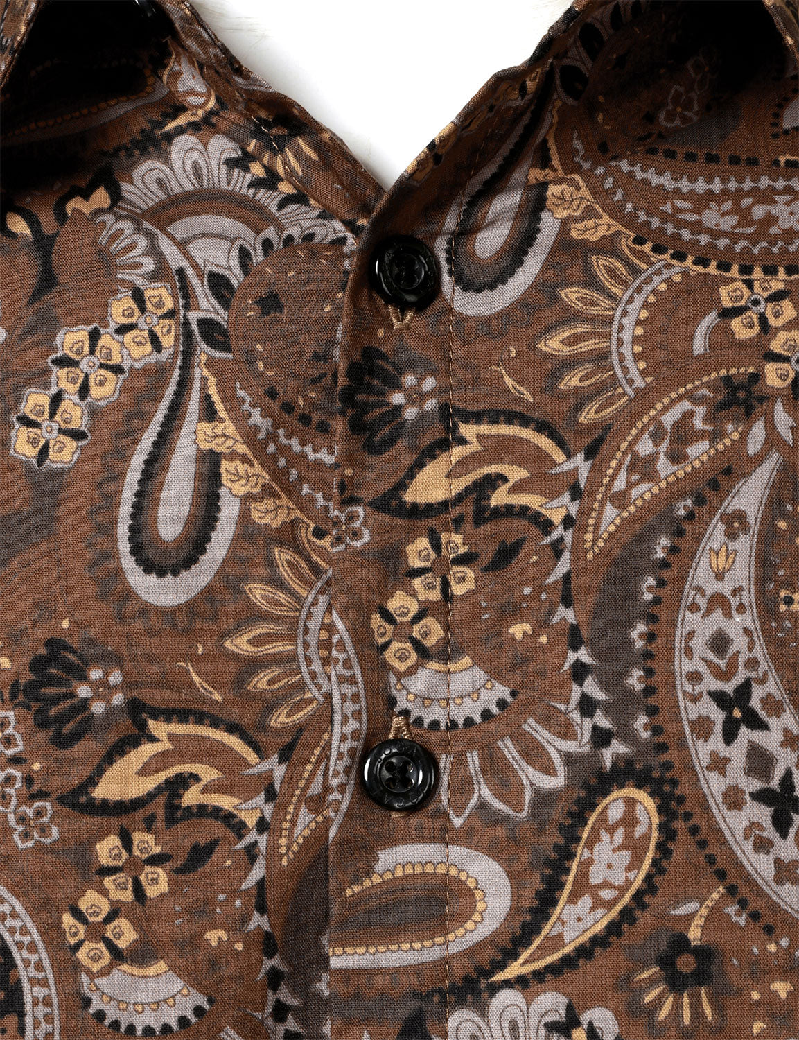 Men's Brown Retro Paisley Print Breathable Cotton Long Sleeve Shirt
