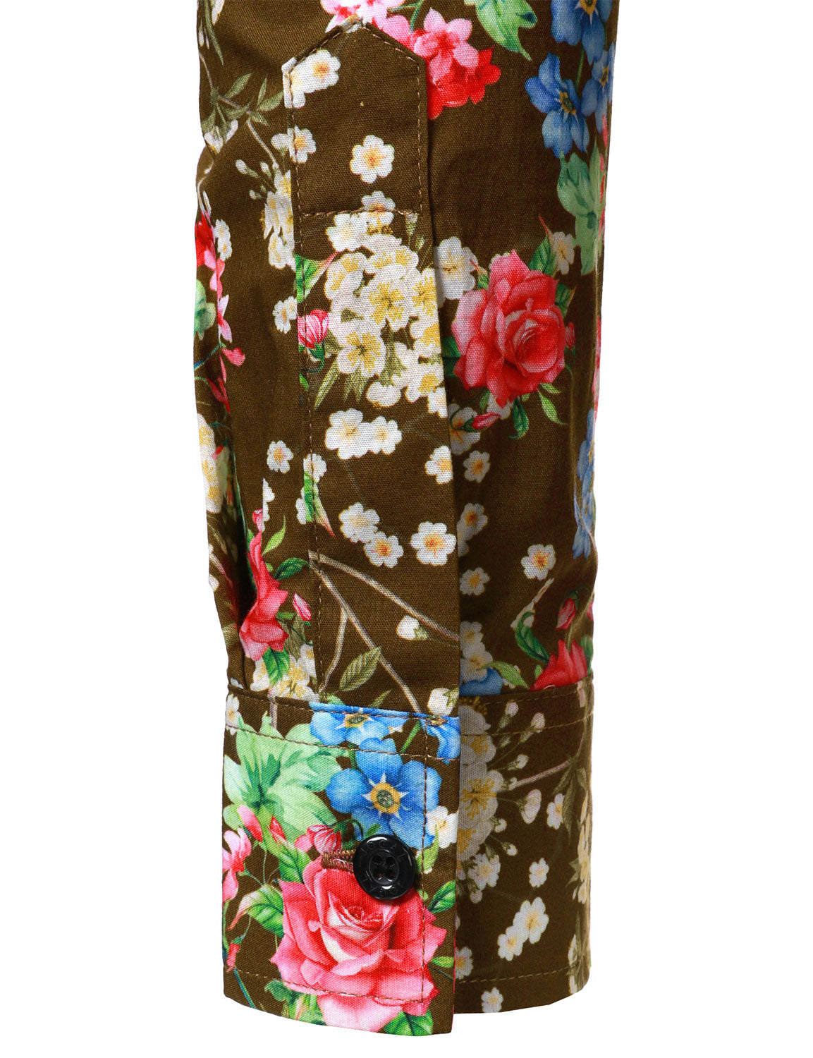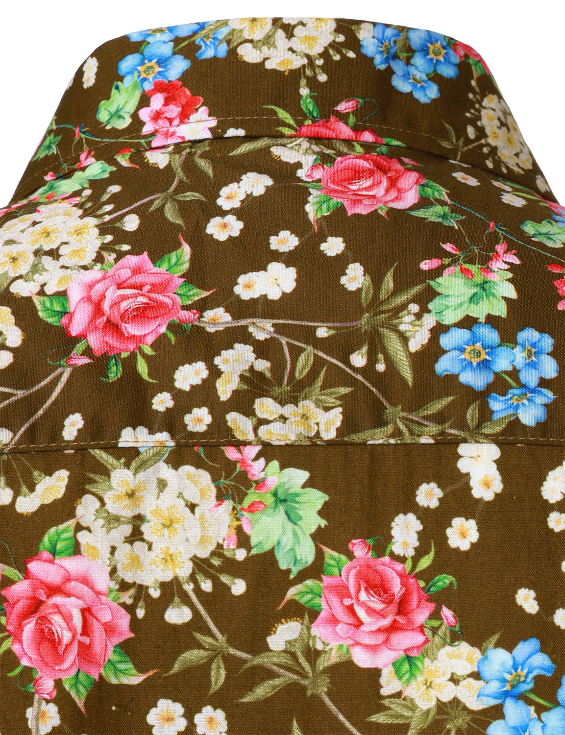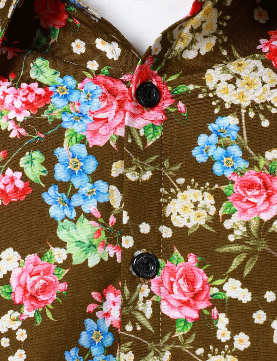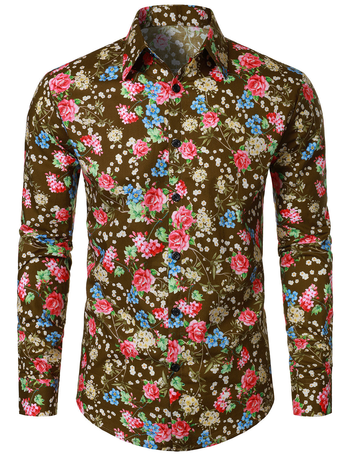 Men's 70s Floral Print Breathable Cotton Brown Long Sleeve Shirt