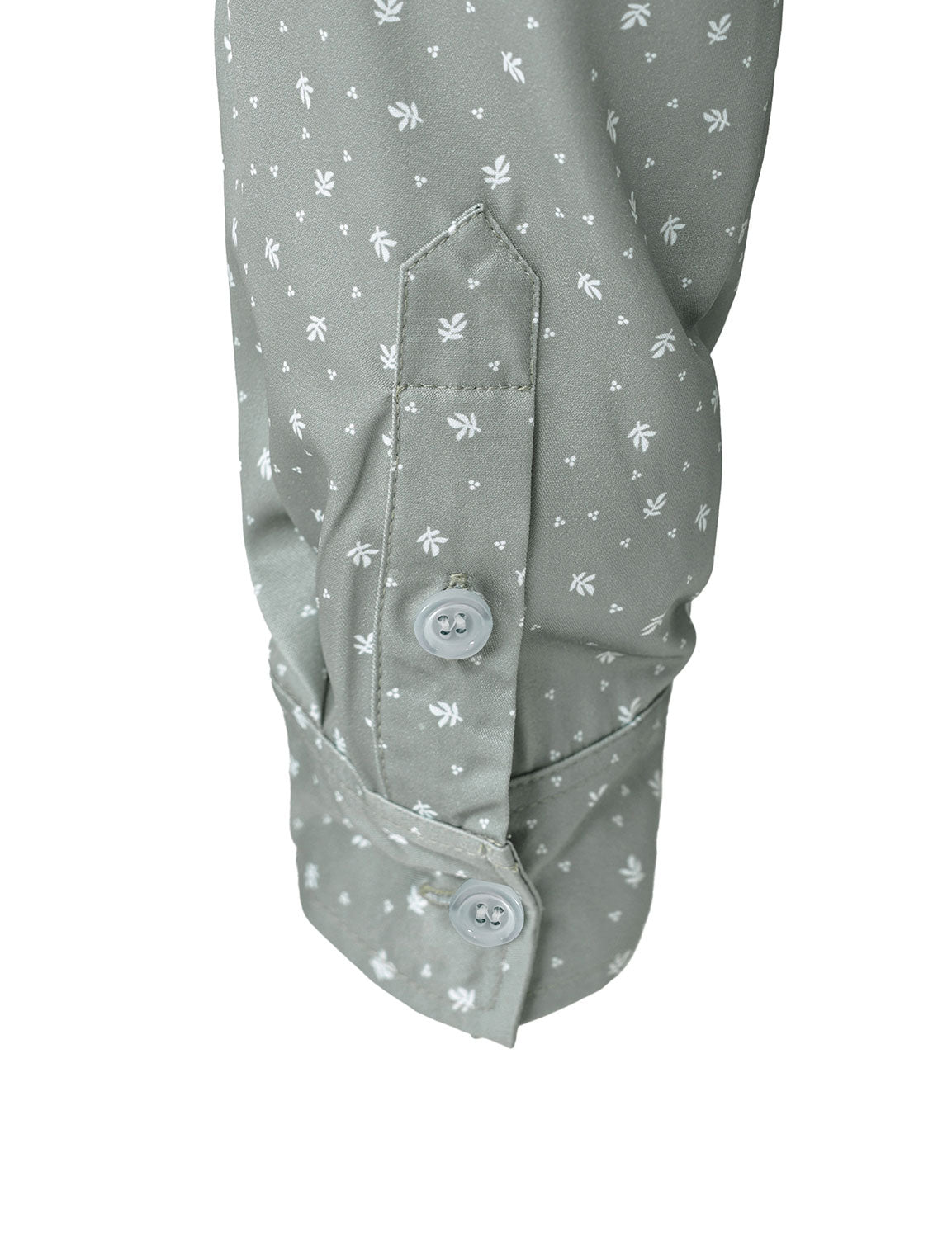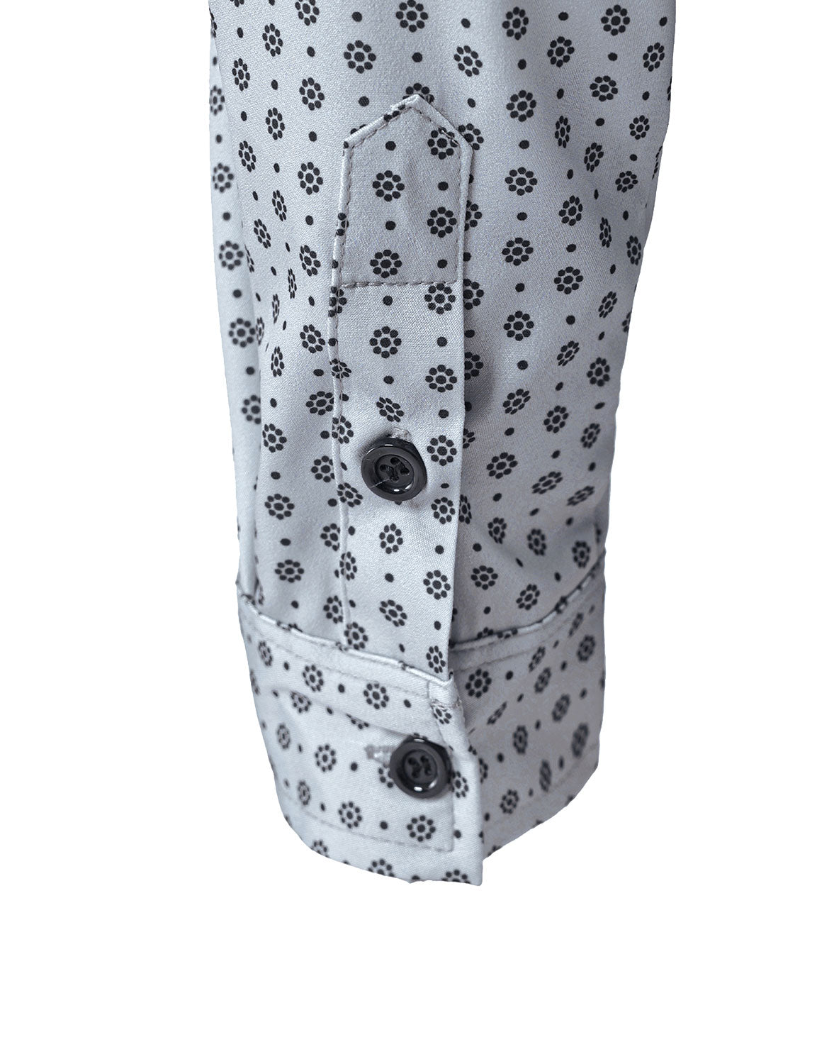 Men's White Breathable Cotton Floral Print Long Sleeve Shirt