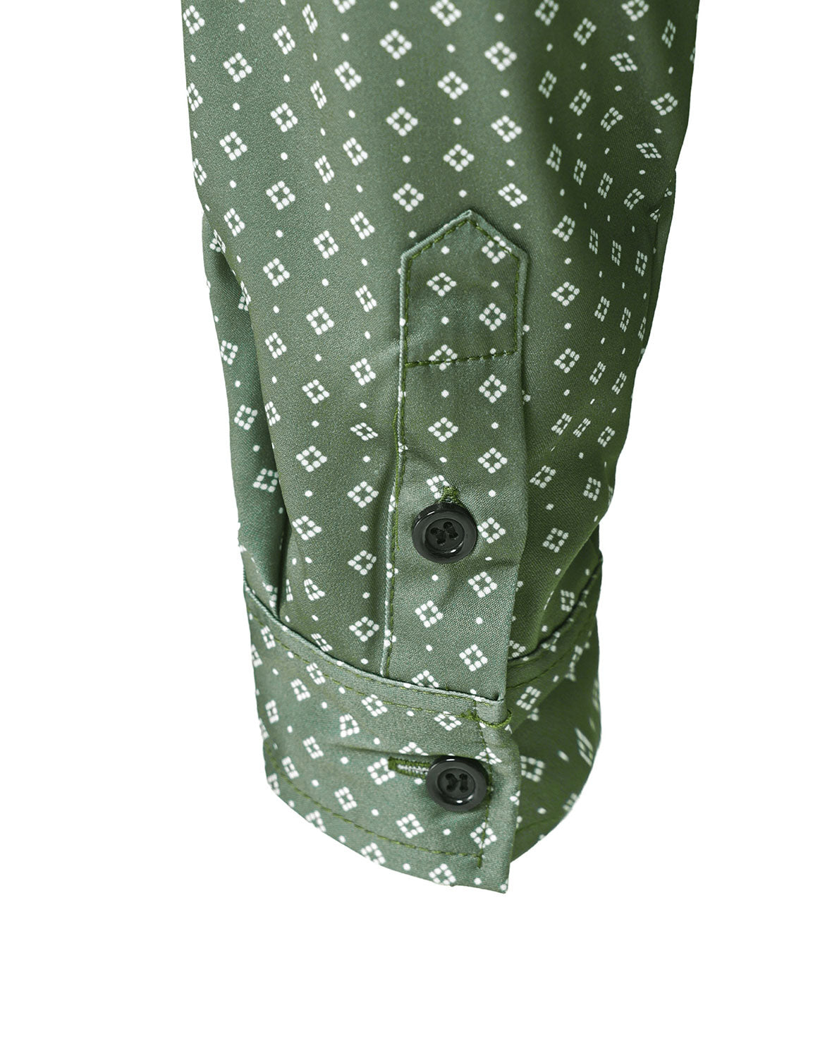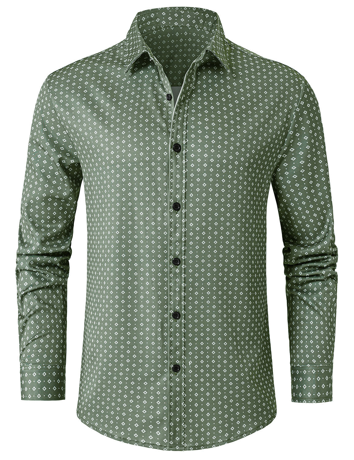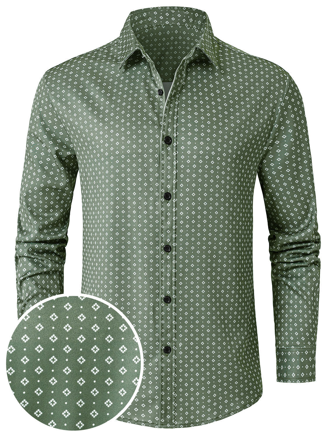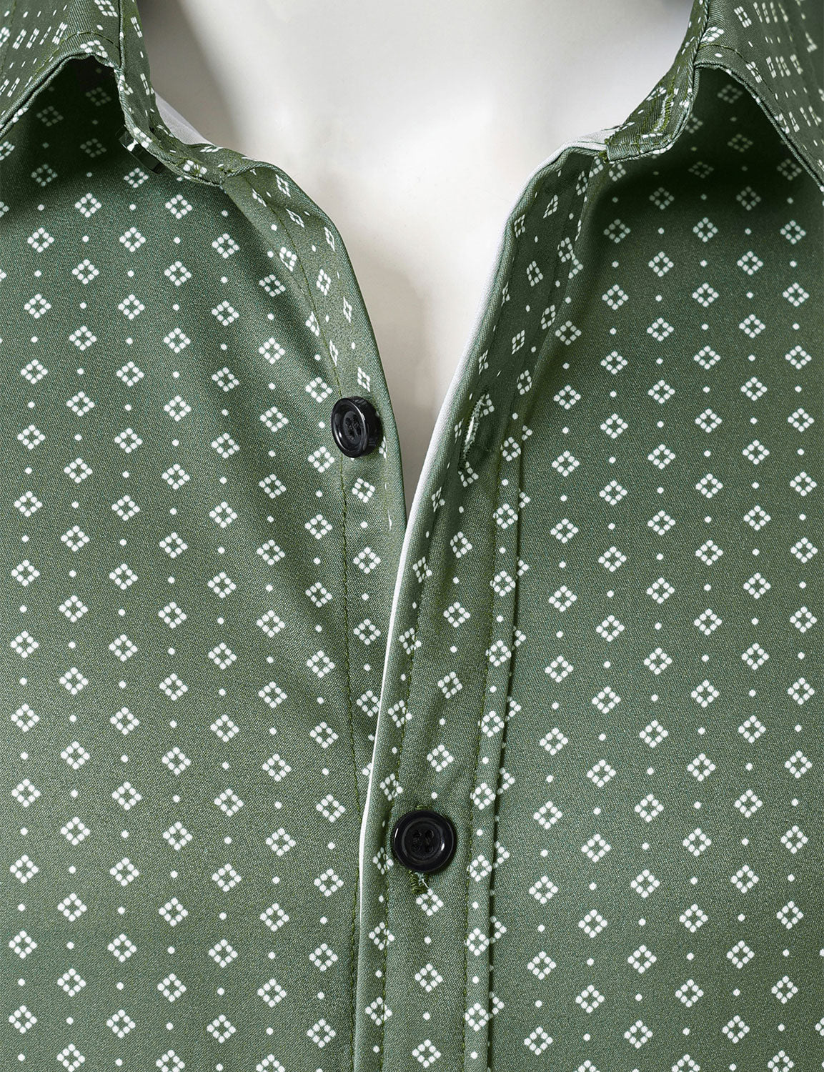 Men's Green Retro Geometric Print Long Sleeve Shirt