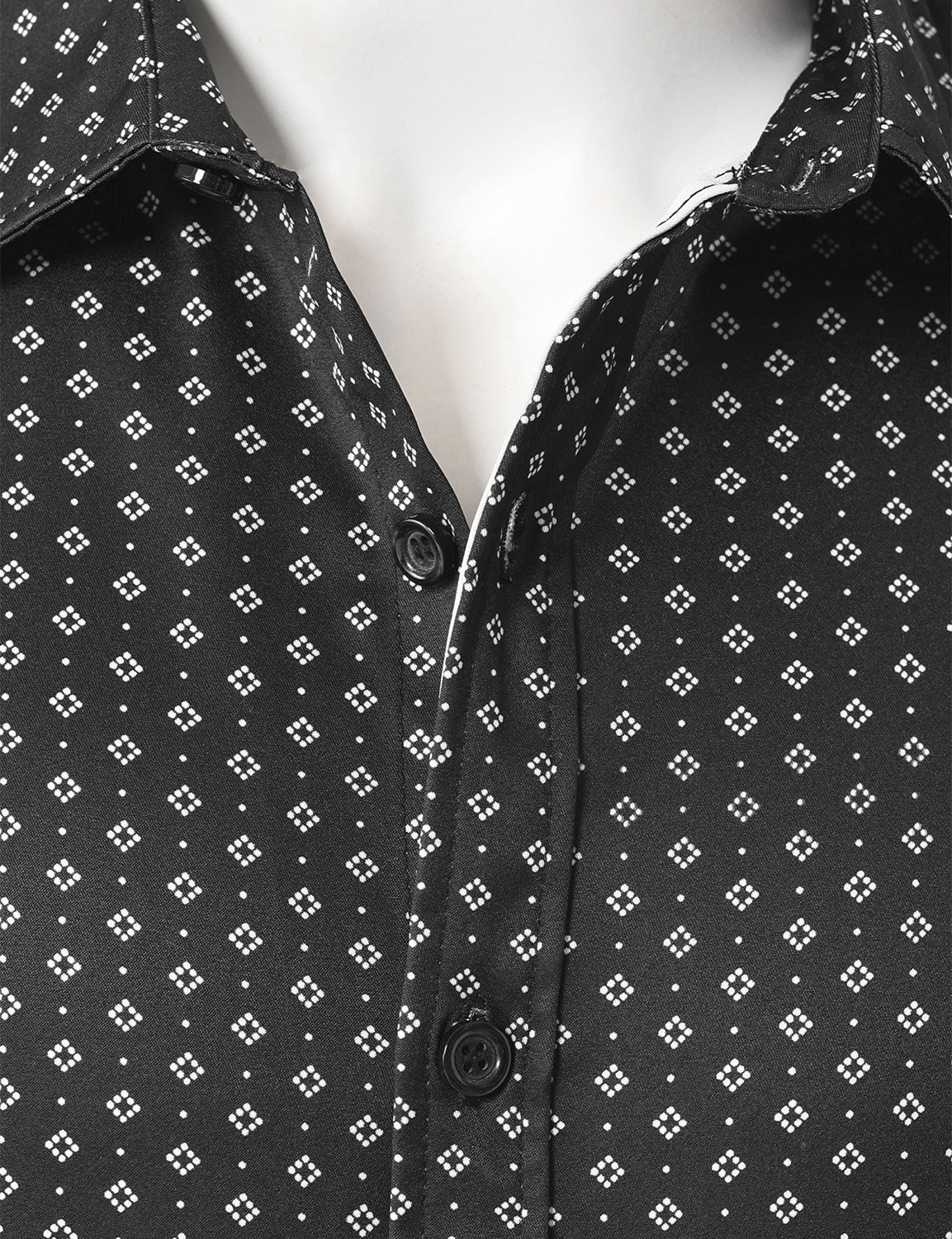 Men's Black Retro Geometric Print Long Sleeve Shirt