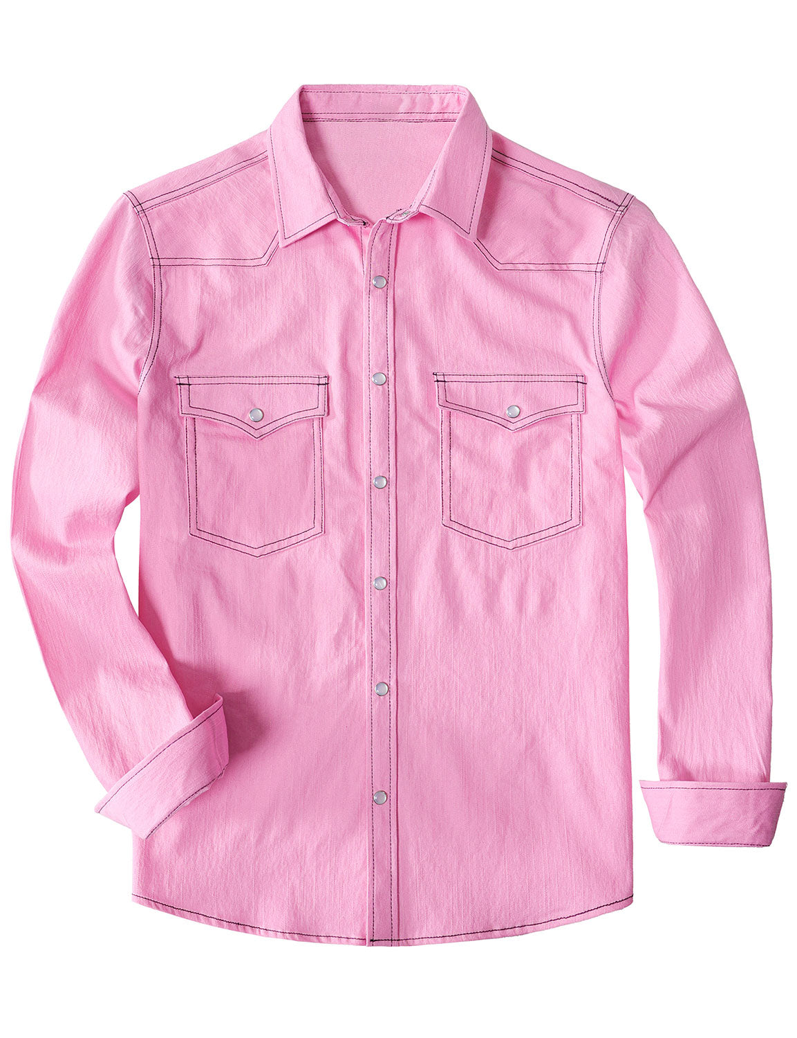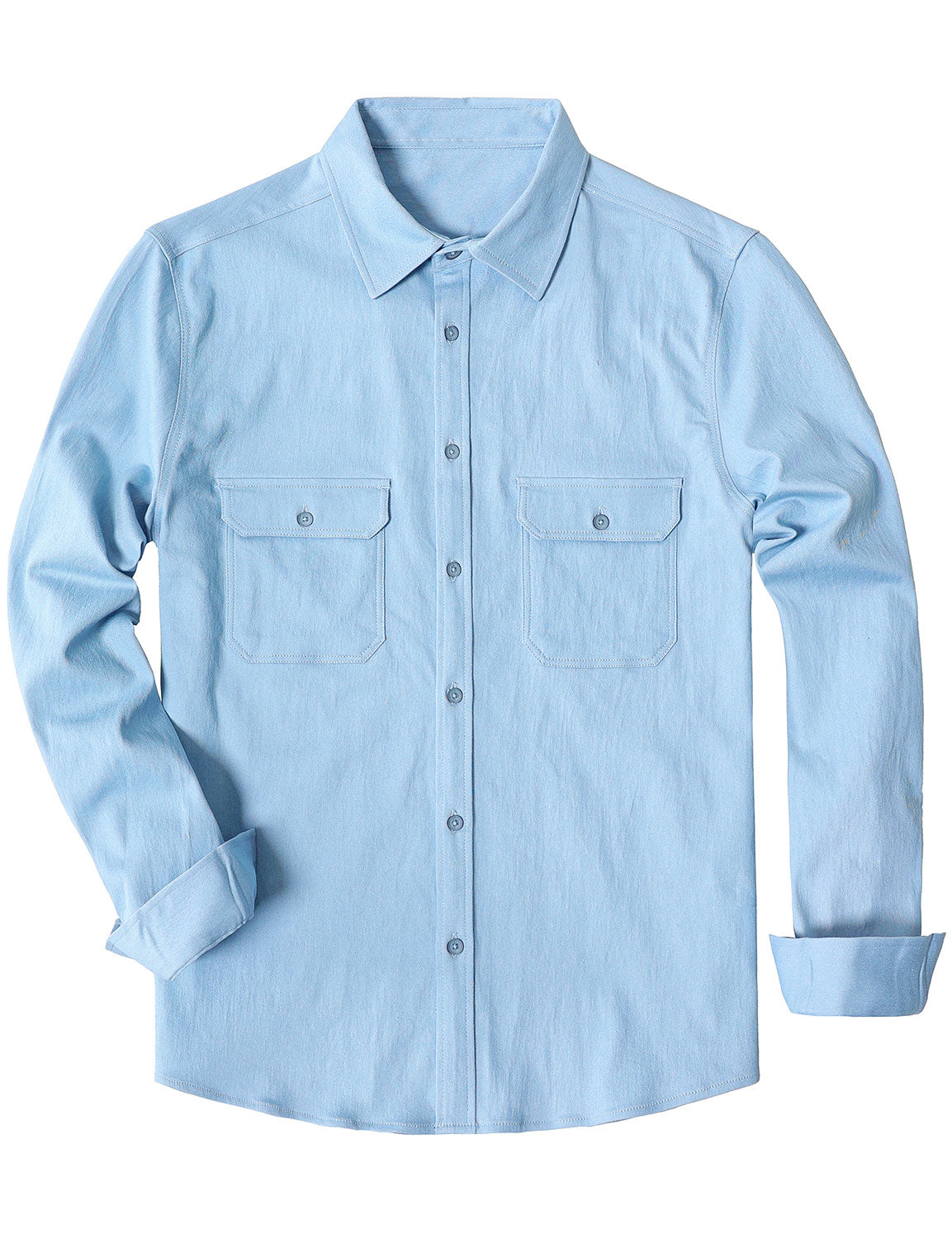 Men's Casual Pockets Long Sleeve Button Up Shirt