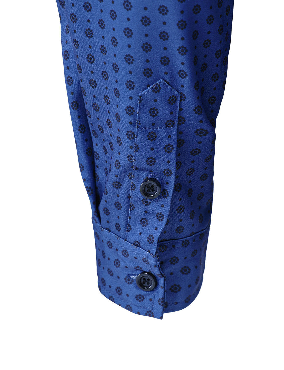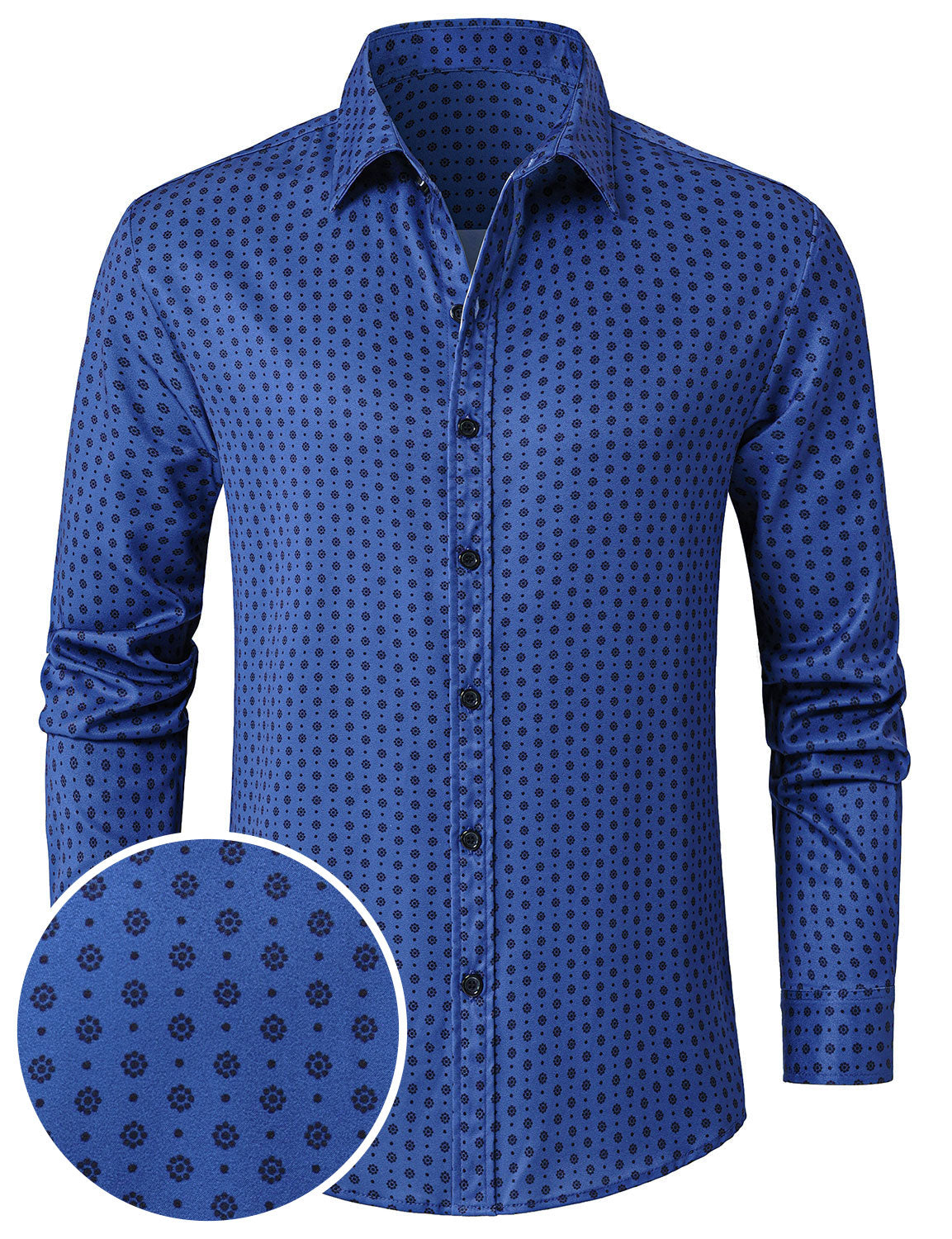 Men's Breathable Cotton 70s Floral Print Navy Blue Long Sleeve Shirt