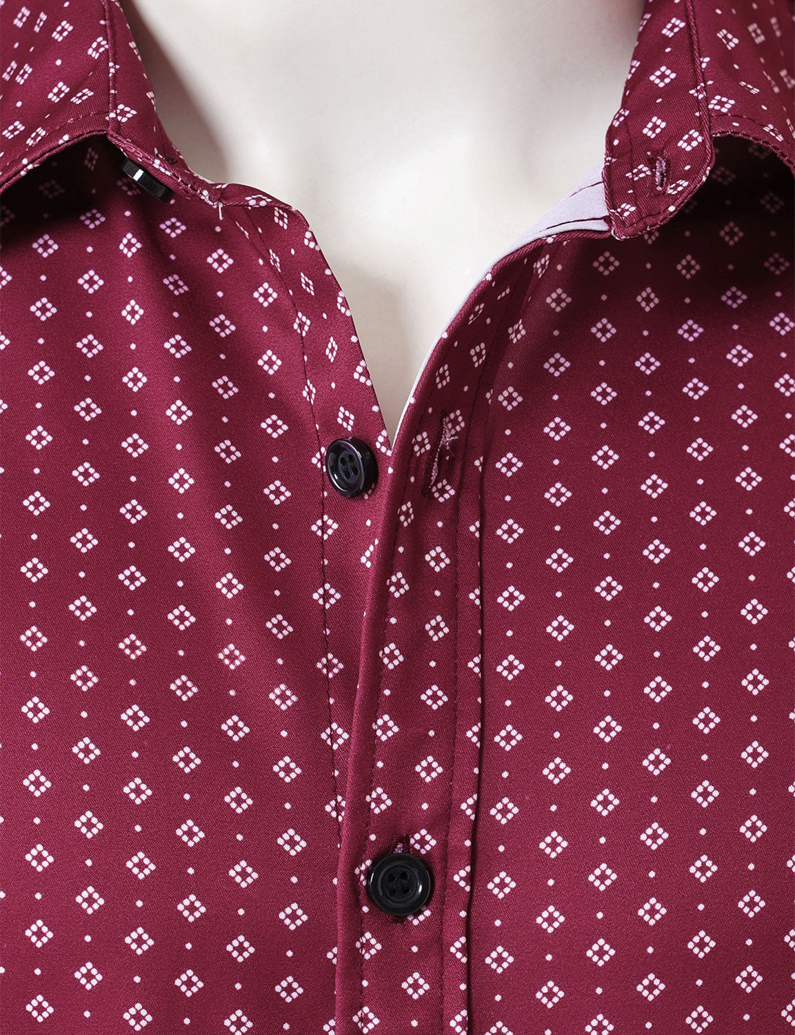 Men's Red Retro Geometric Print Long Sleeve Shirt