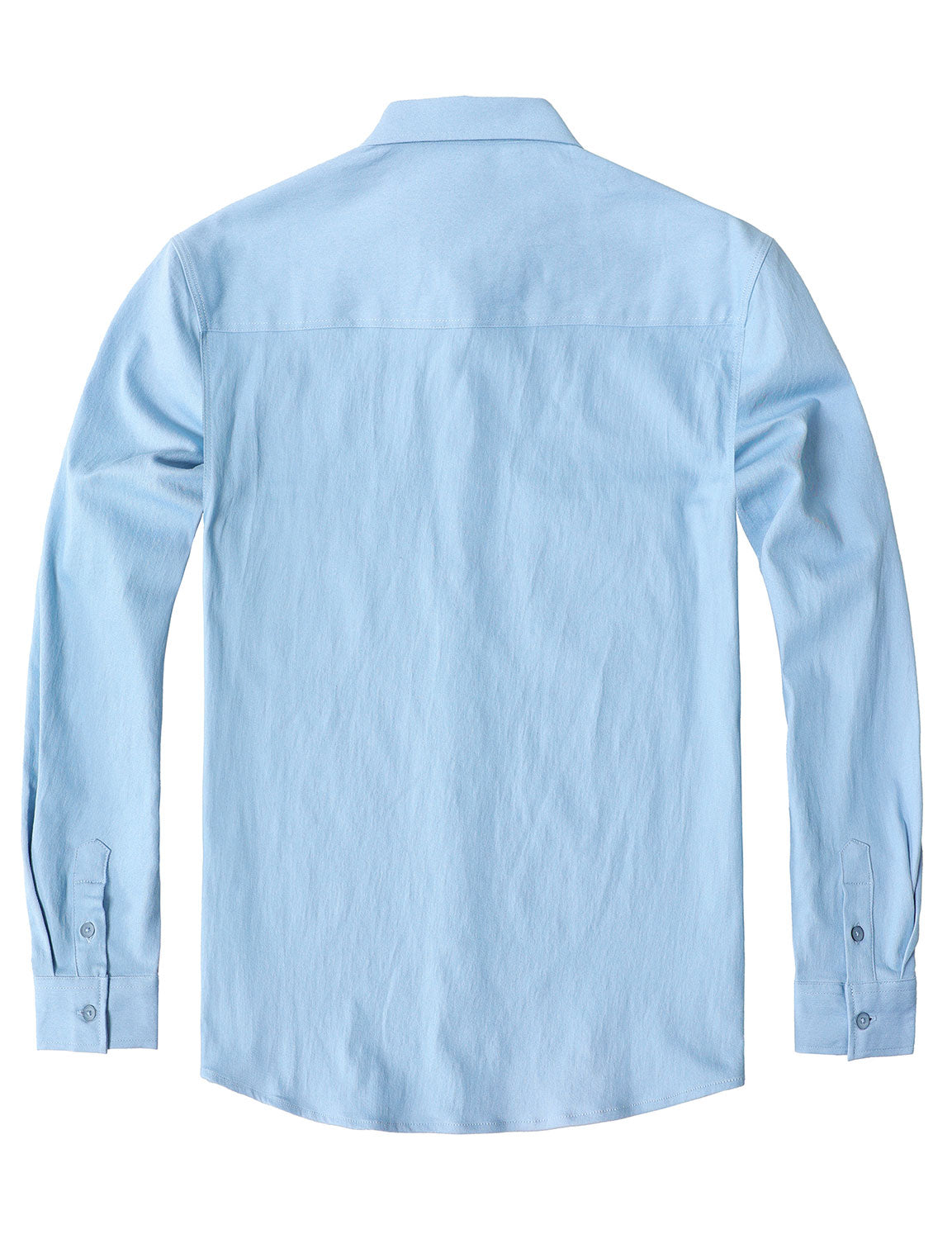 Men's Casual Breathable Pocket Long Sleeve Blue Striped Shirt