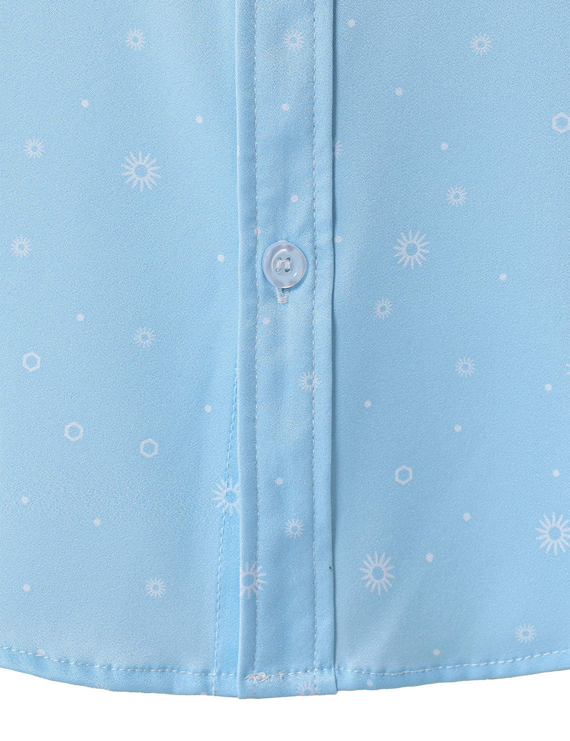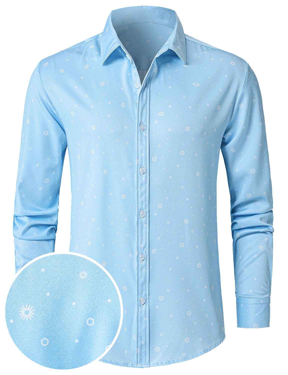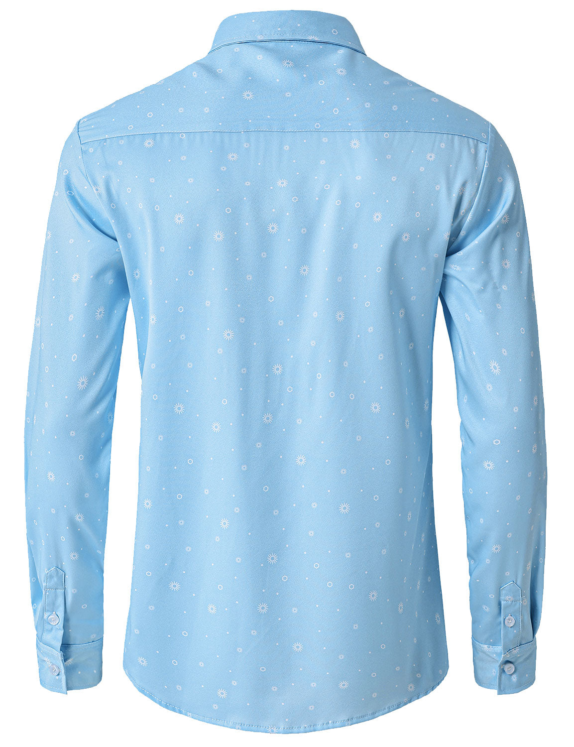 Men's Blue Cocktail Print Casual Long Sleeve Cotton Holiday Parties Shirt
