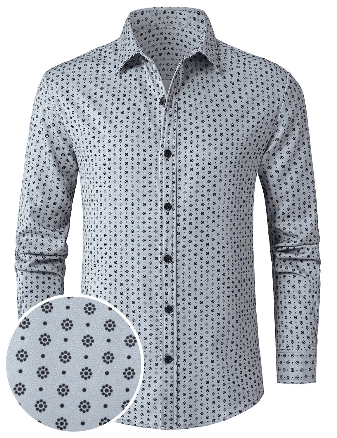 Men's 70s Breathable Cotton Long Sleeve Floral Print Shirt