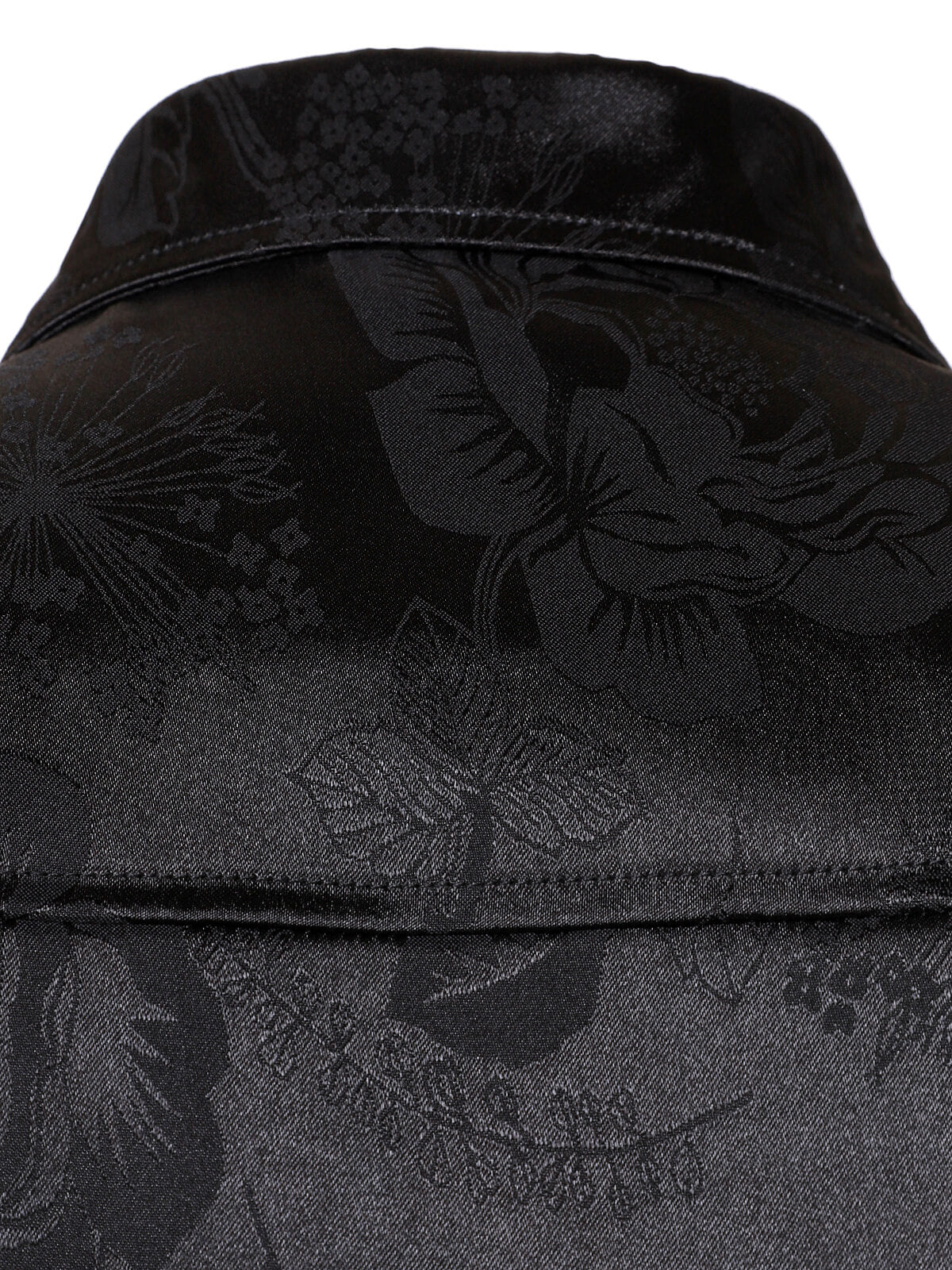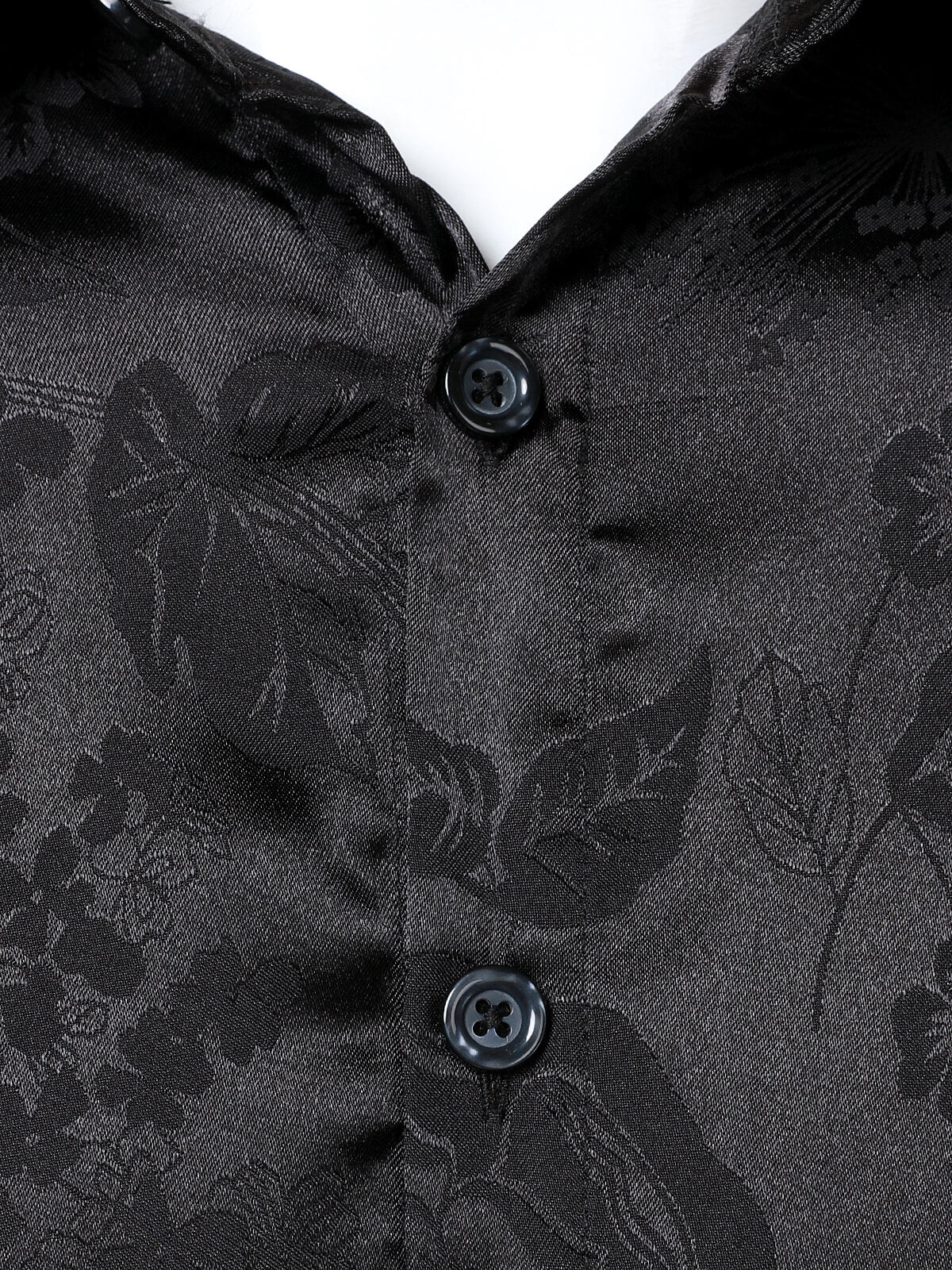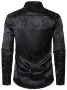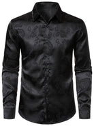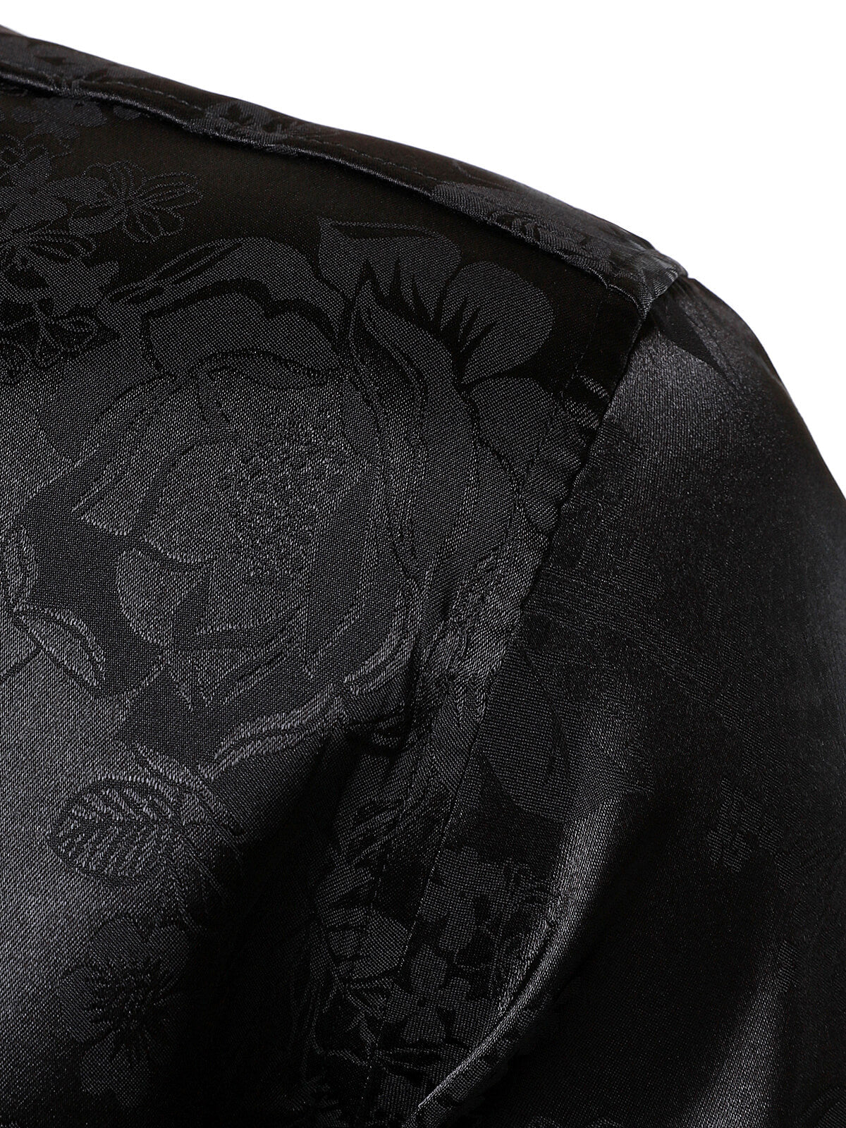 Men's Floral Jacquard Shiny Satin Black Long Sleeve Dress Shirt