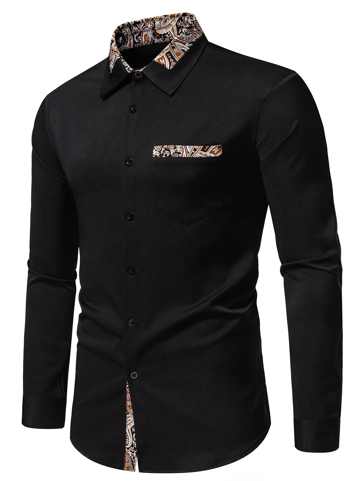 Men's Colorblock Paisley Print Button Up Long Sleeve Shirt