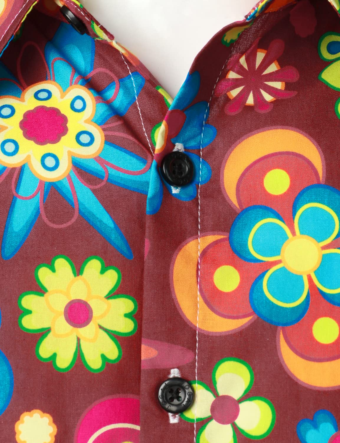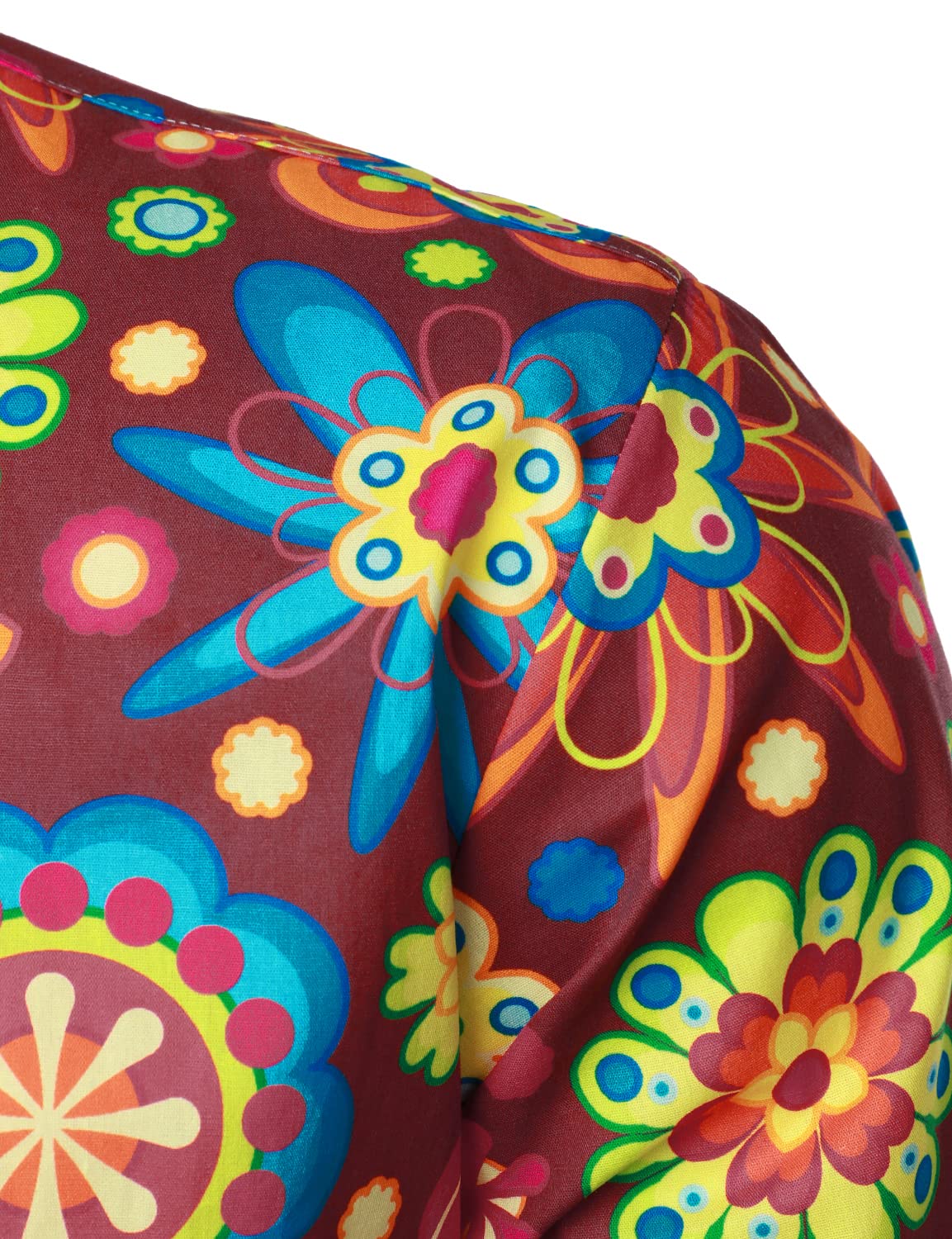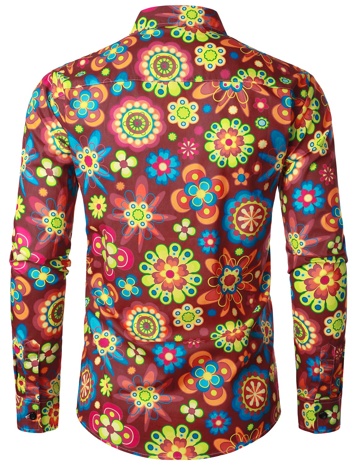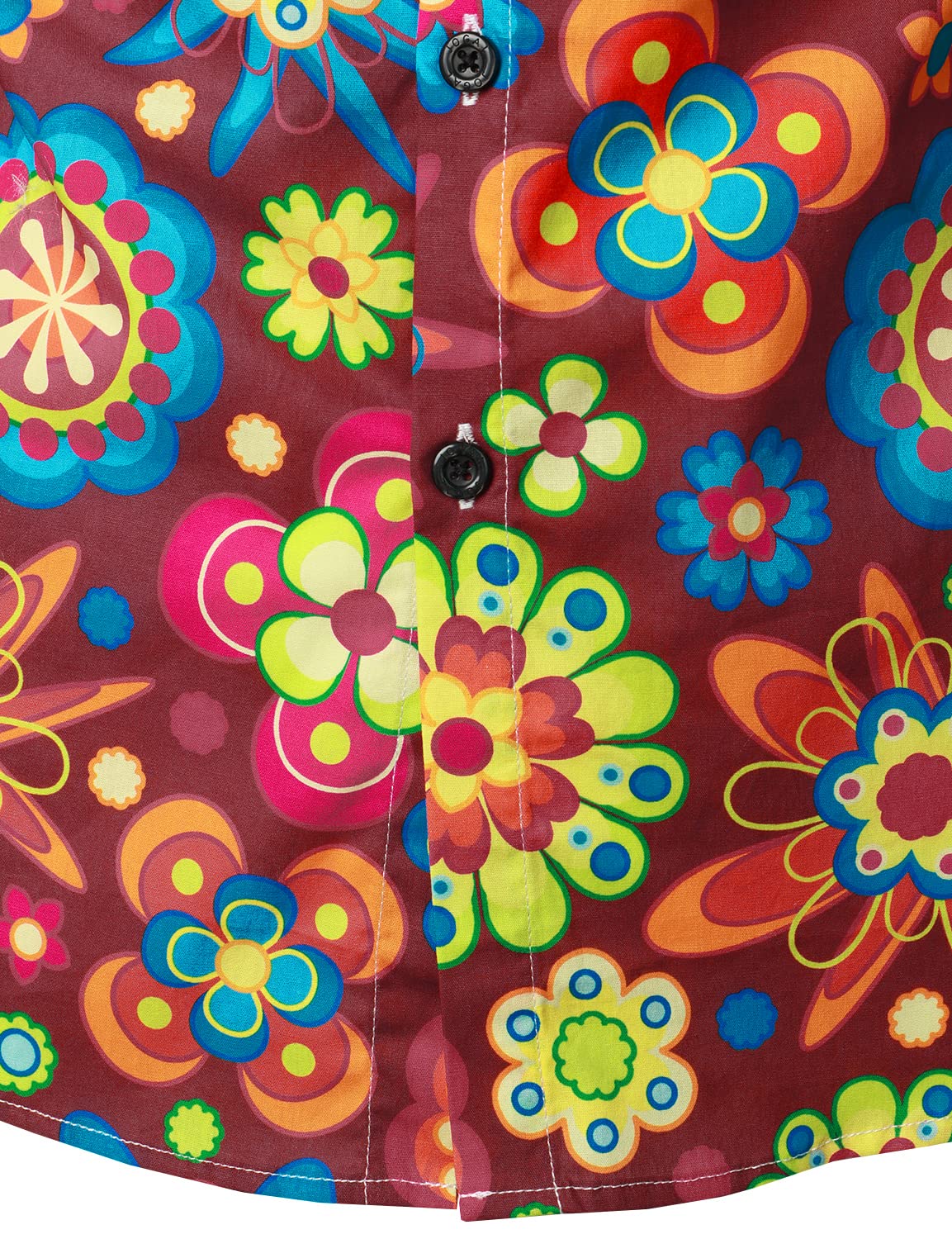 Men's Floral Cotton Party Flower Disco Button Up Long Sleeve Shirt