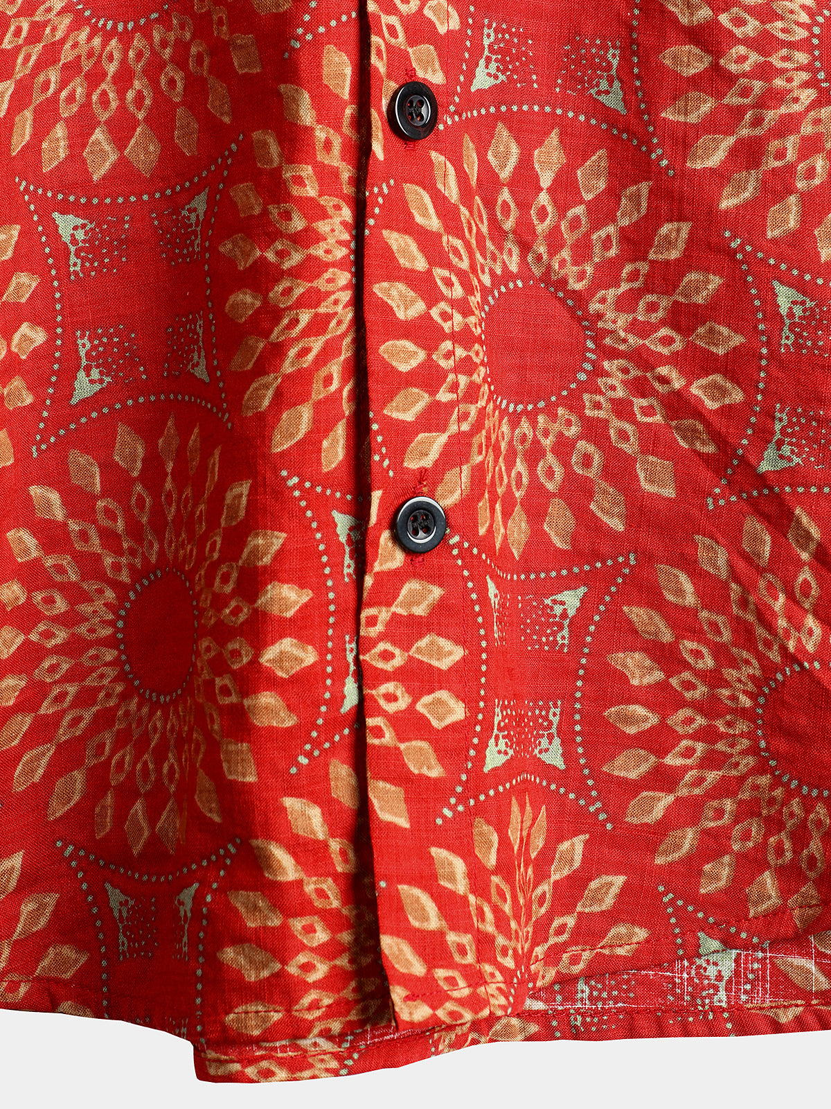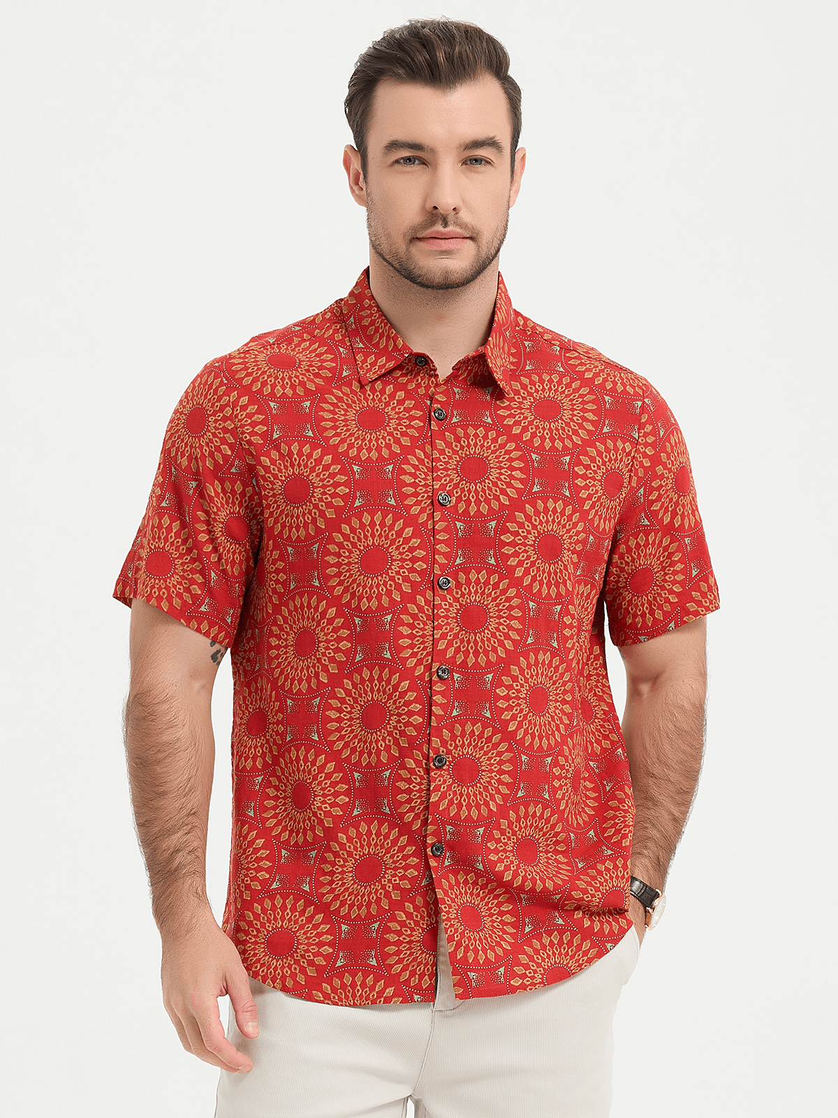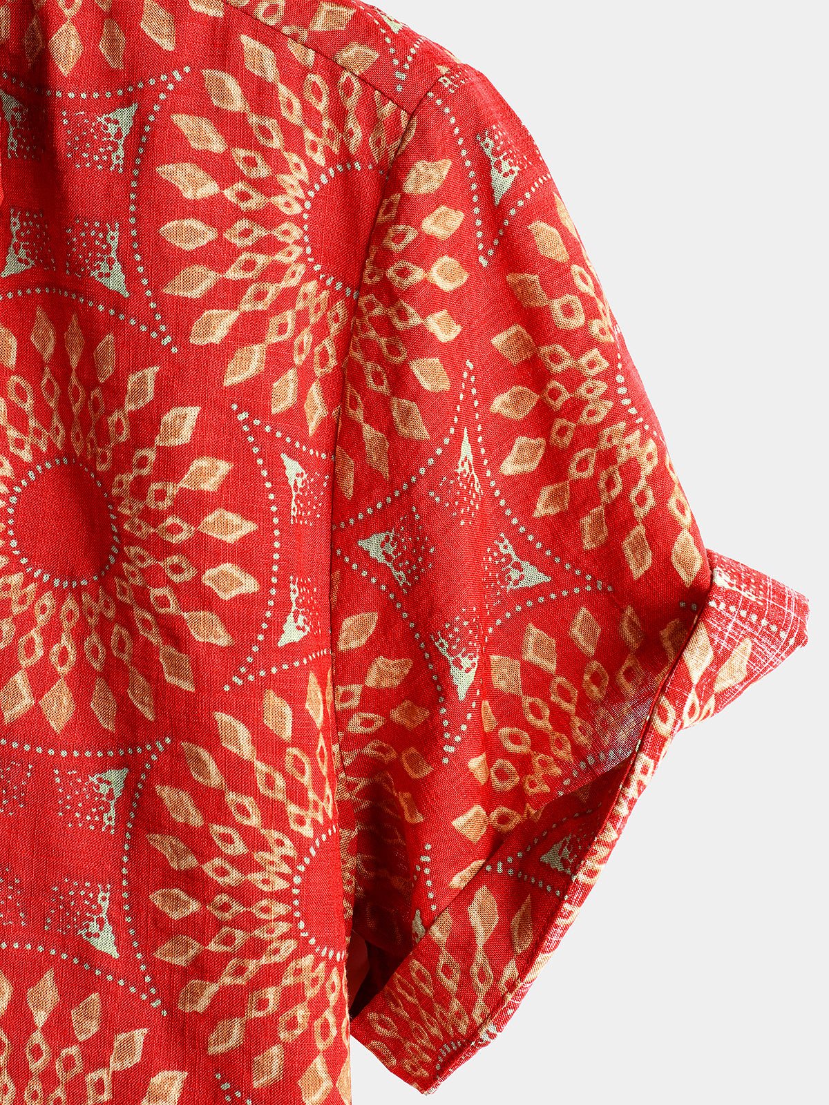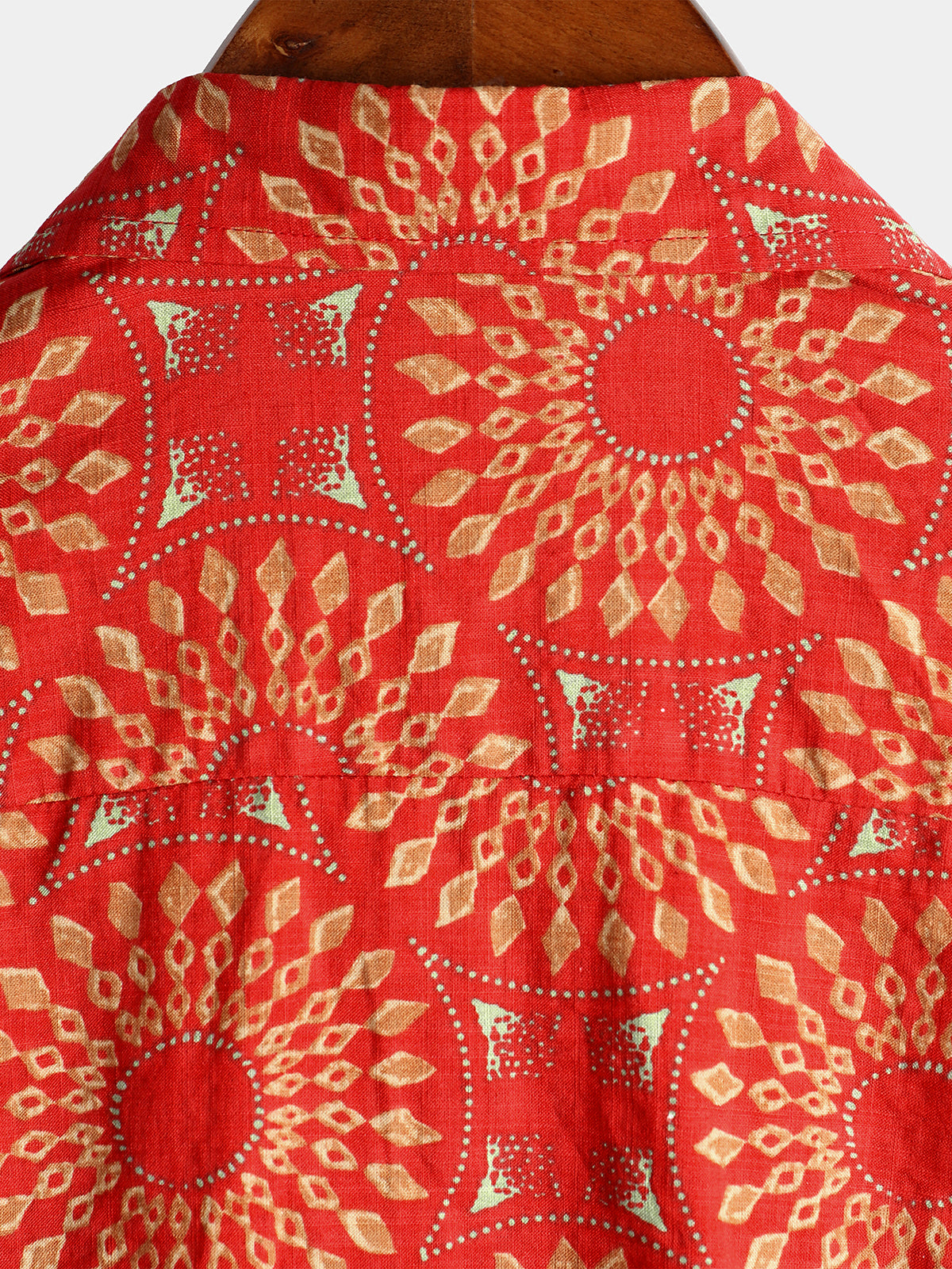 Men's Red Flower Tropical Hawaii Cotton Short Sleeve Shirt