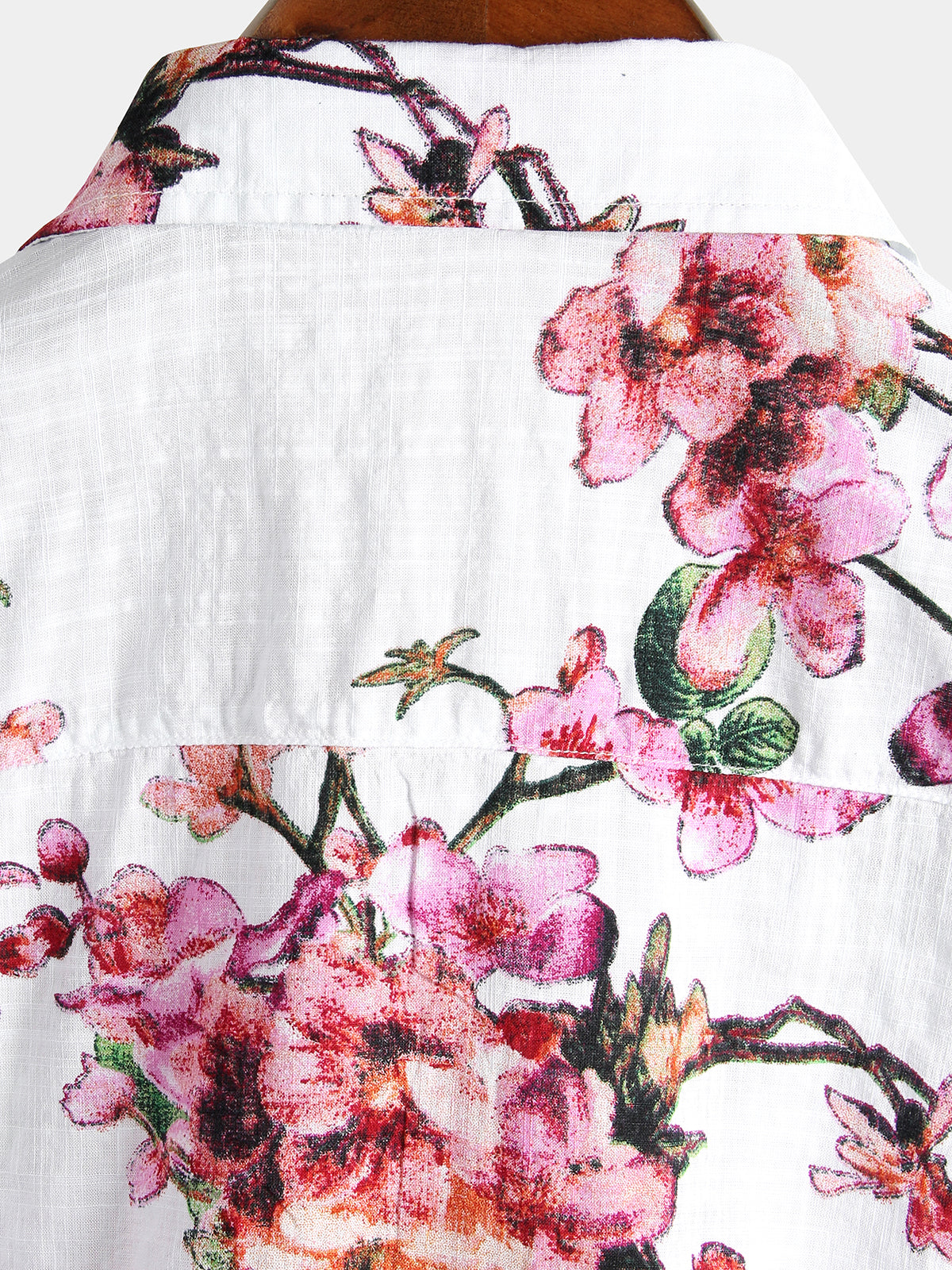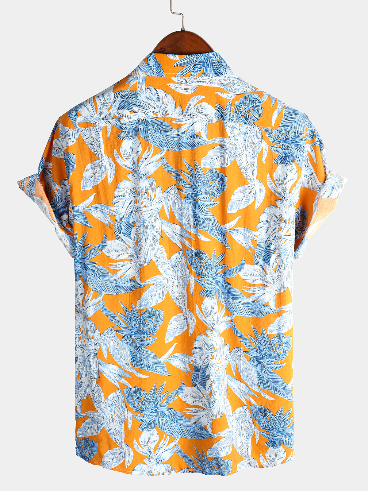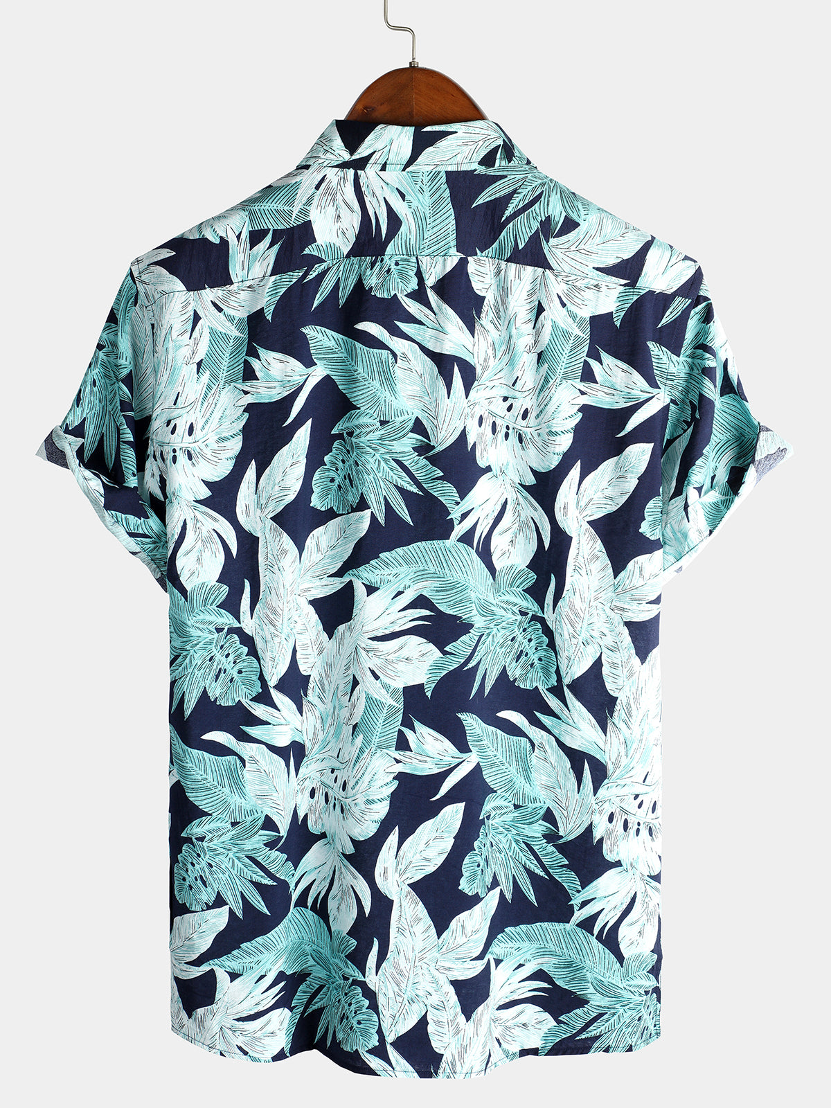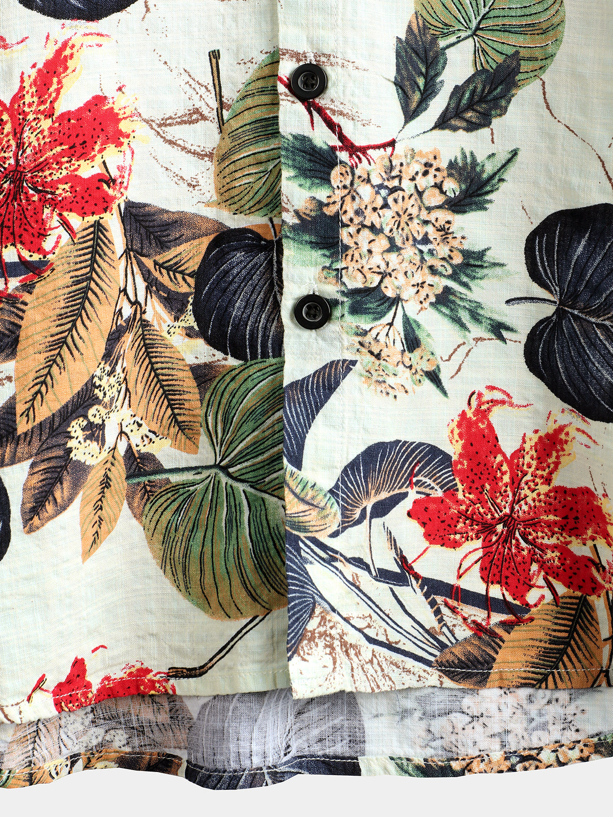Men's Flower Tropical Hawaii Cotton Short Sleeve Shirt