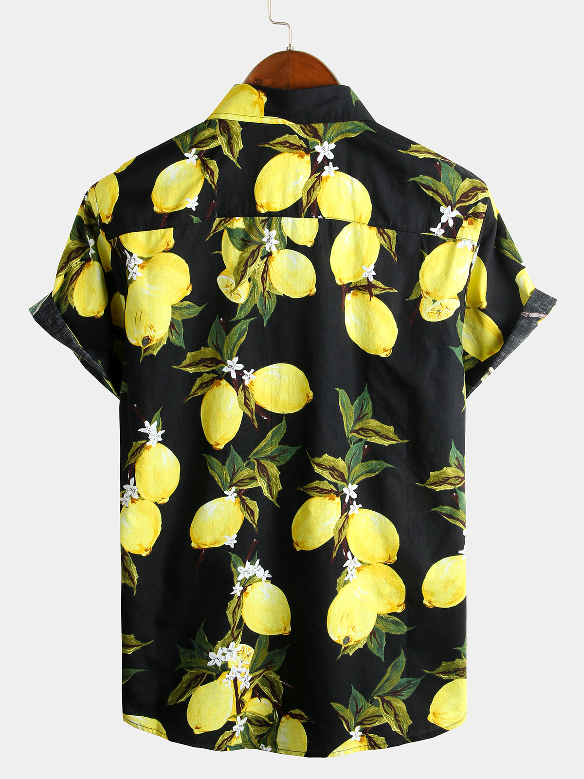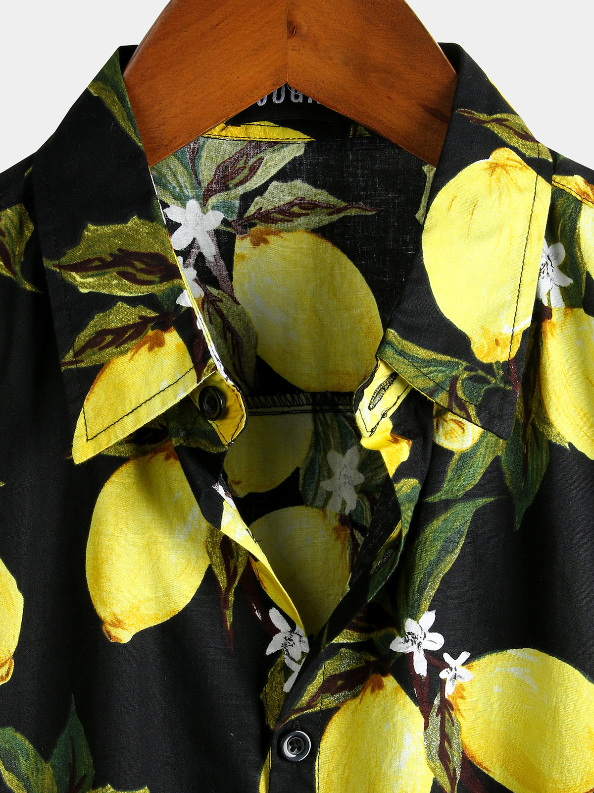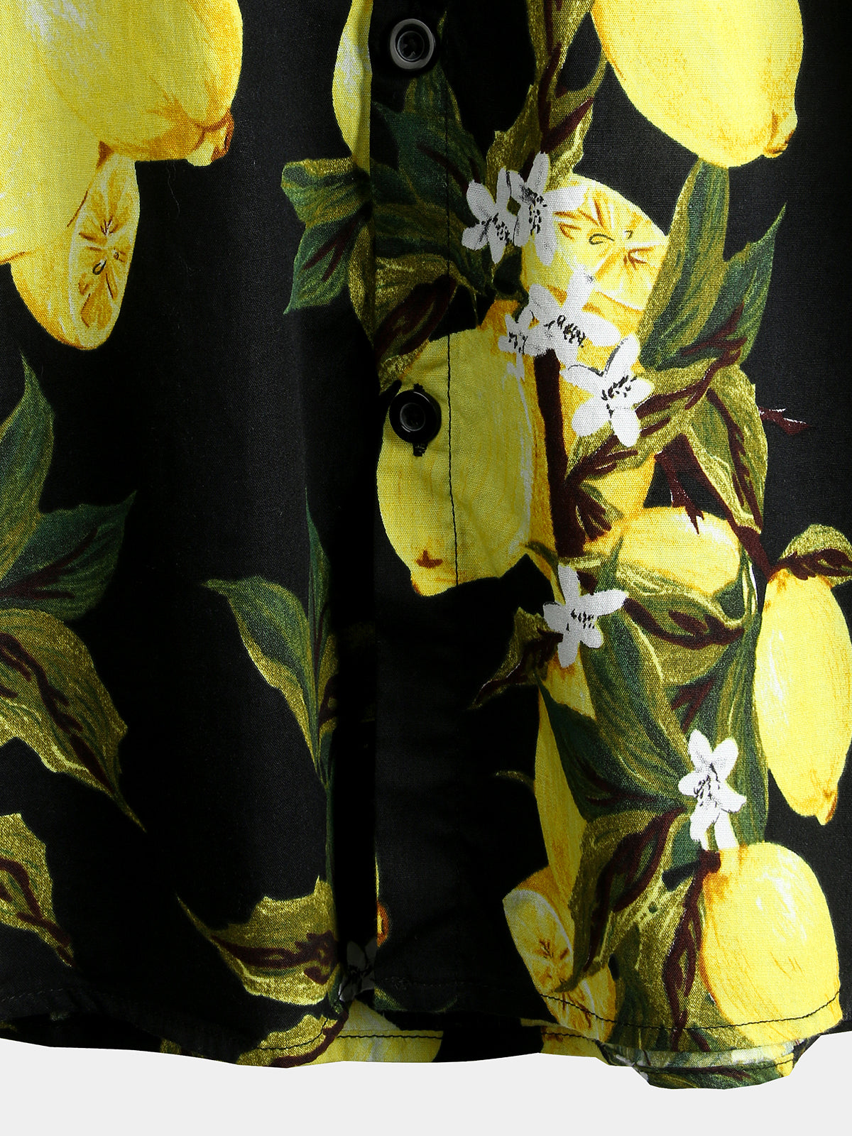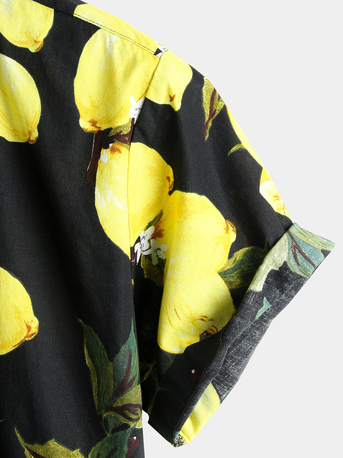 Men's Yellow Lemon Print Short Sleeve Hawaiian Shirt
