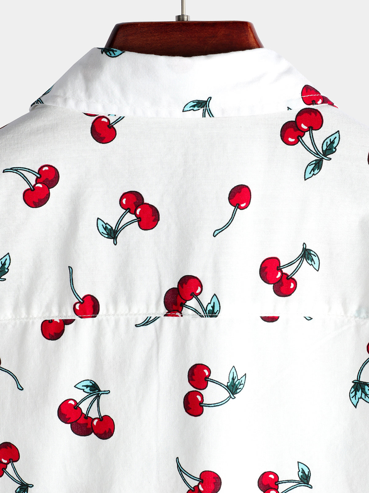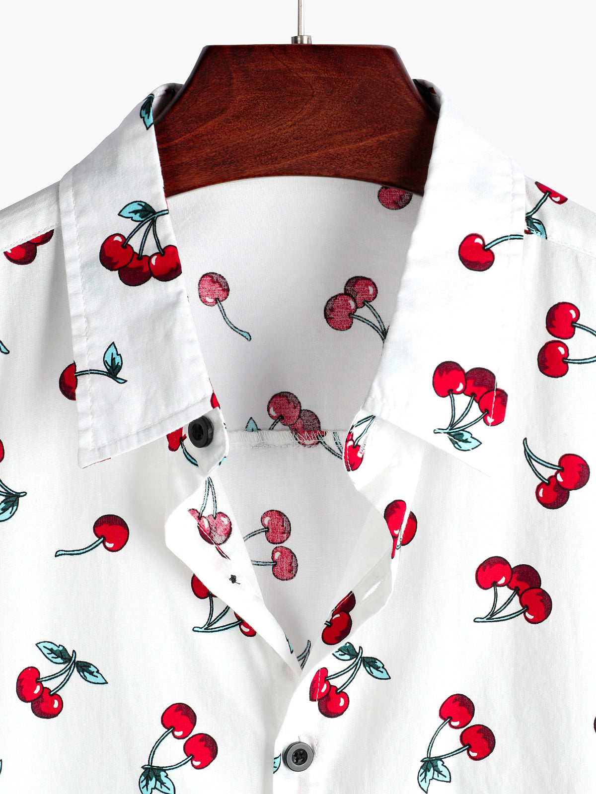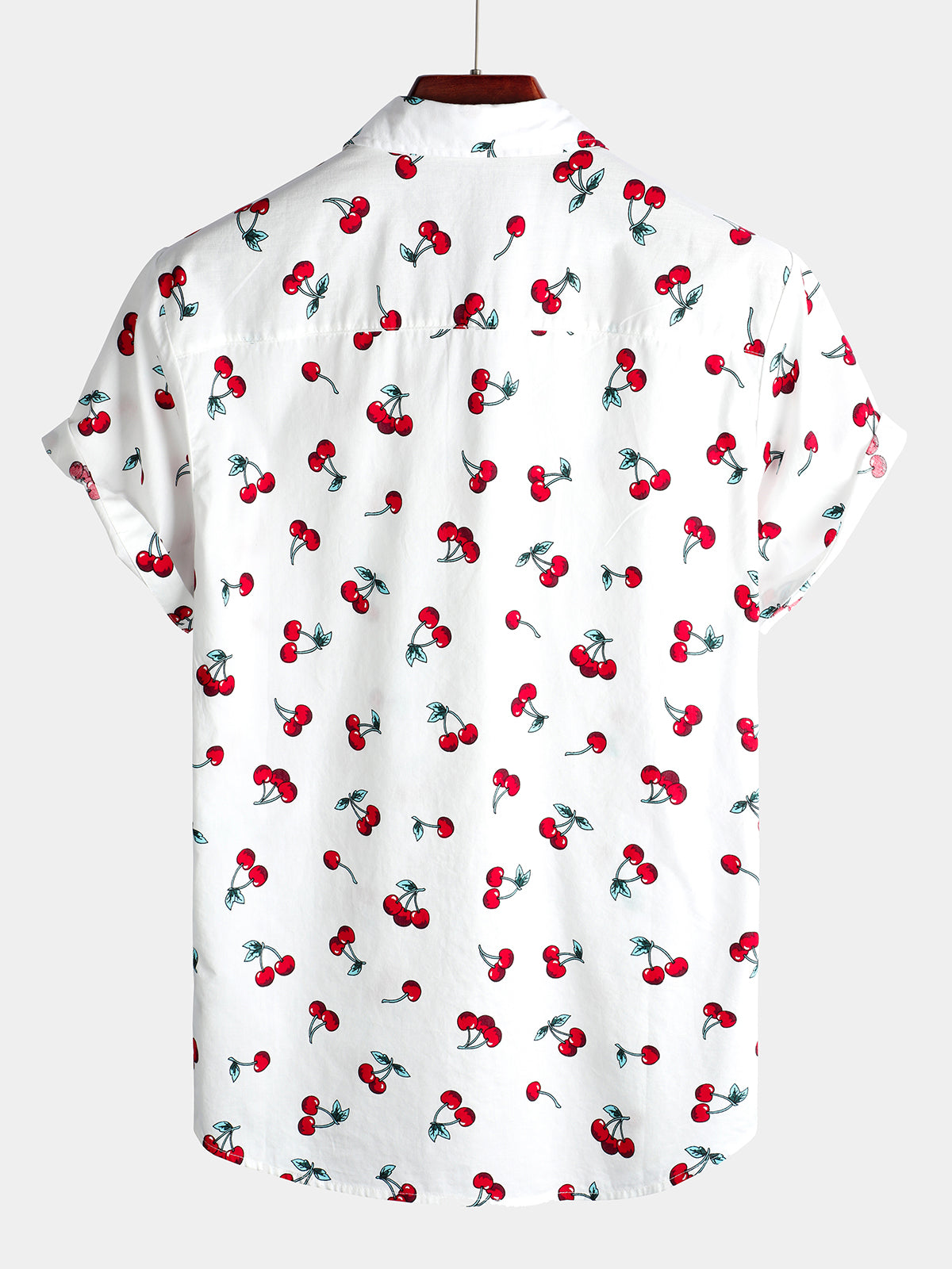 Men's Pineapple Floral Tropical Fruit Cotton Button Up Summer Beach Hawaiian Shirt