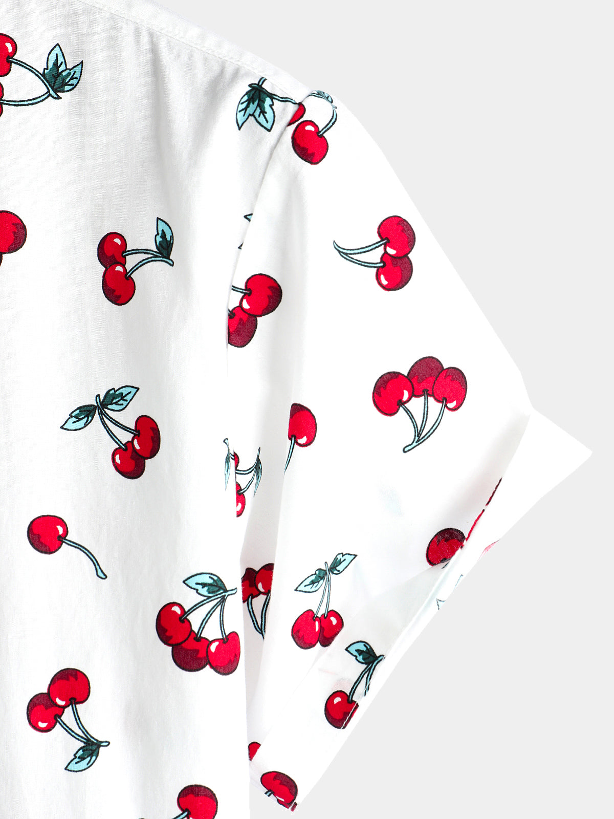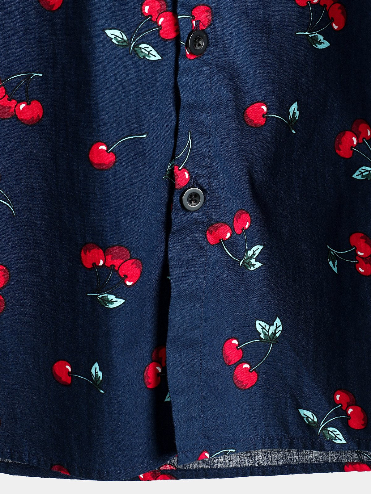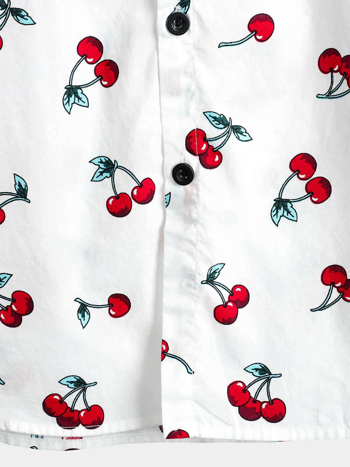 Men's Pineapple Floral Tropical Fruit Cotton Button Up Summer Beach Hawaiian Shirt