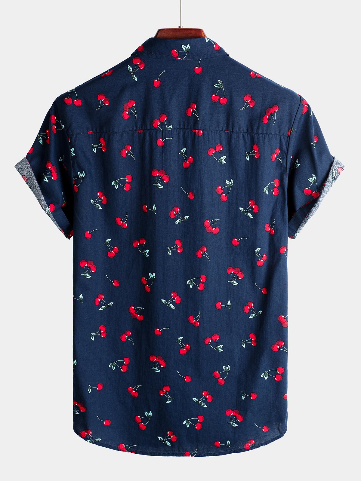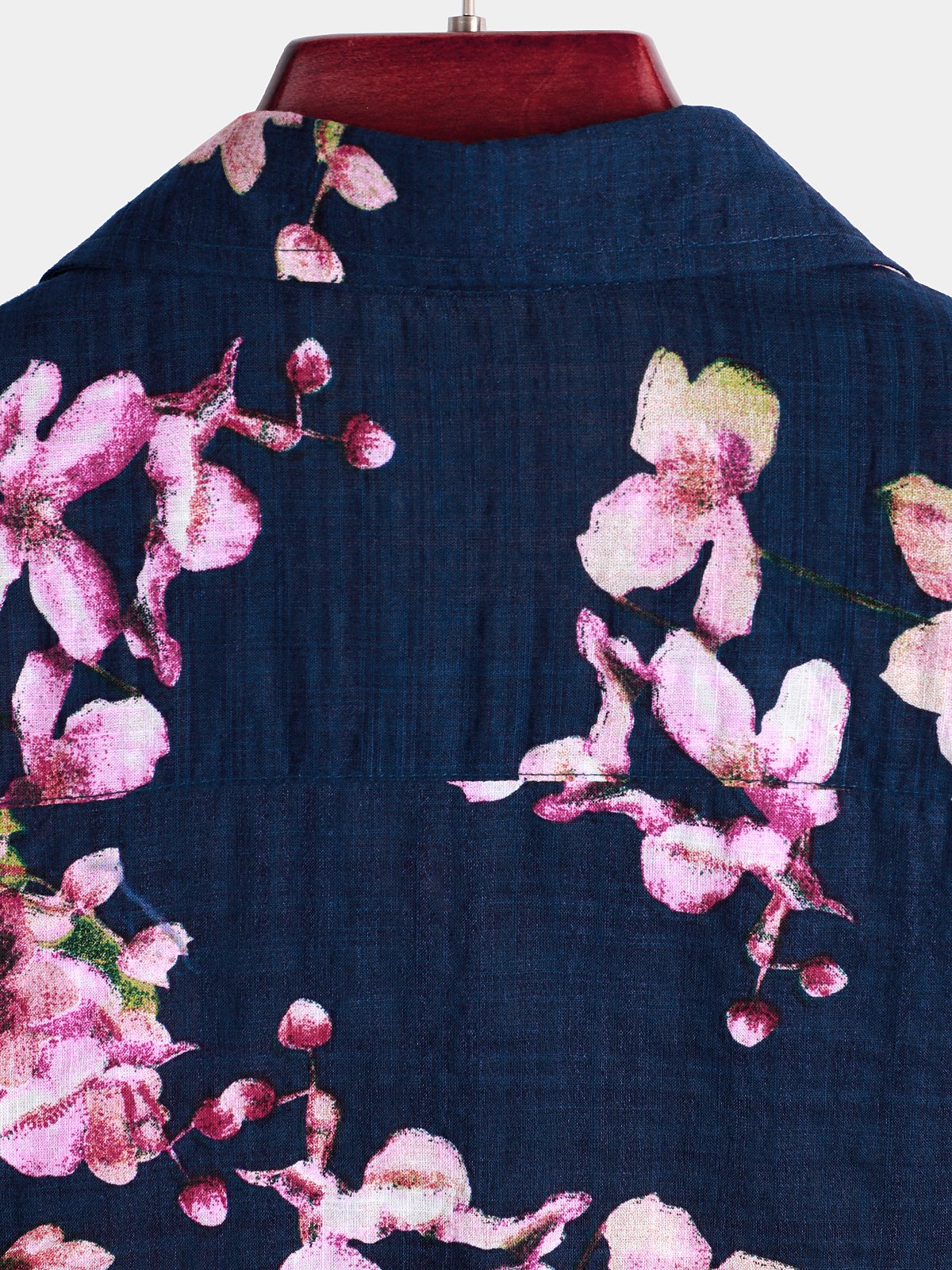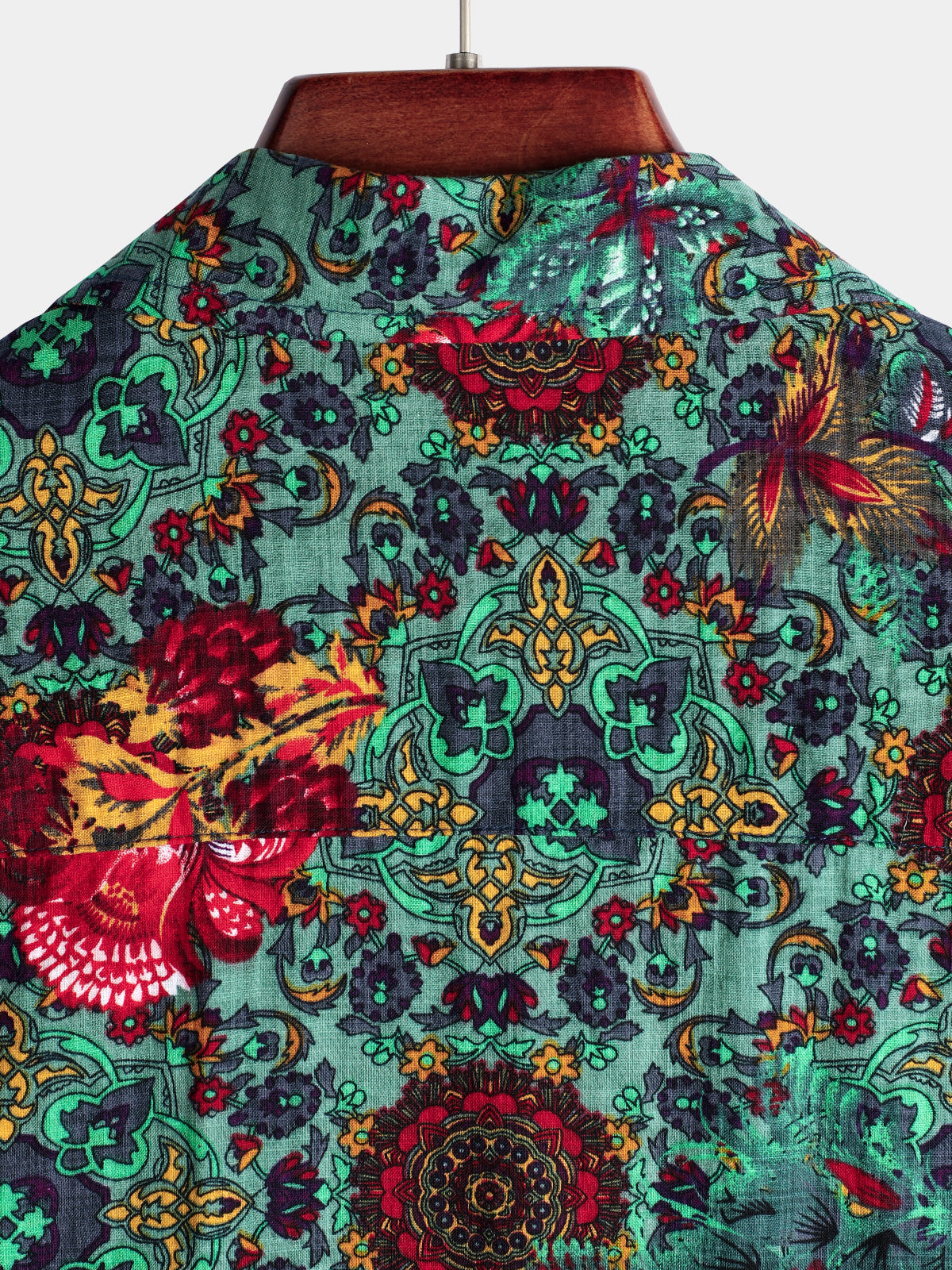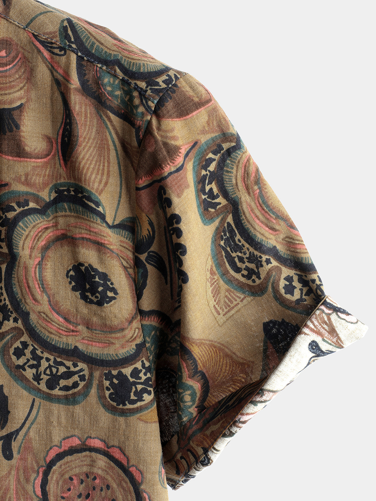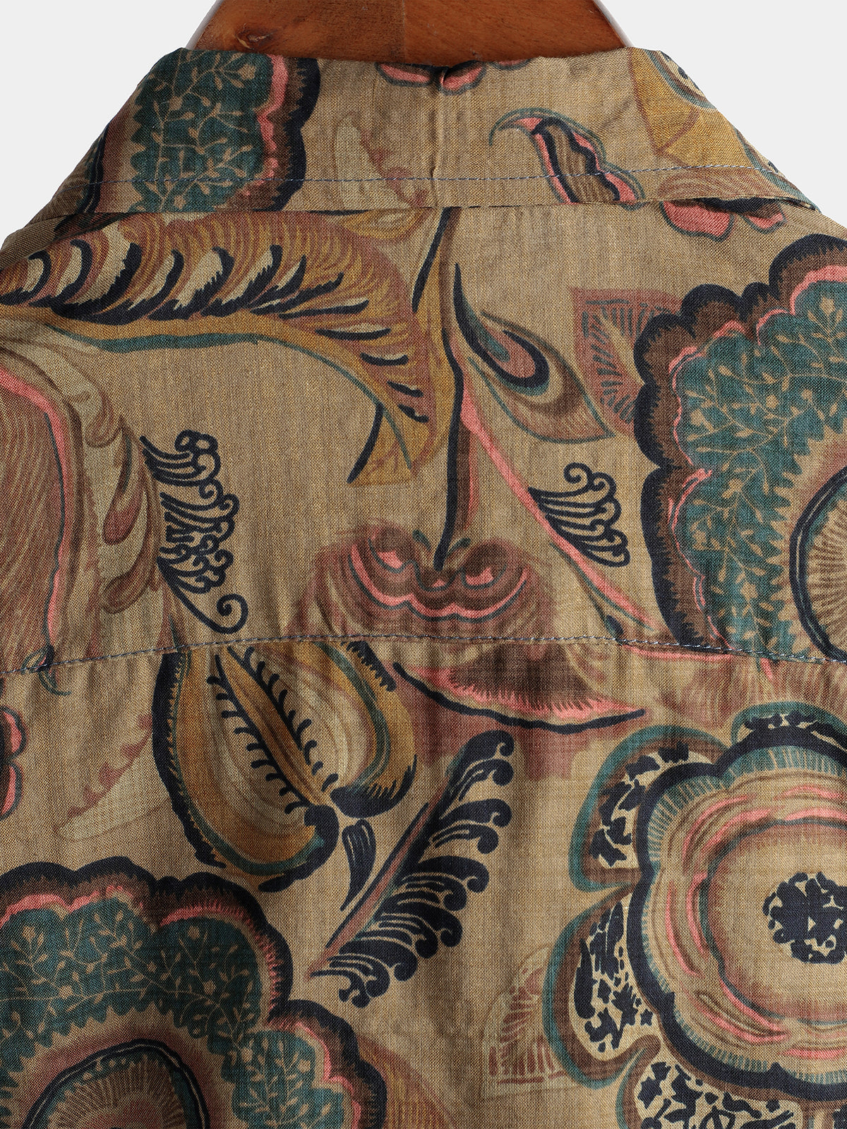 Men's Vintage Flower Print Cotton Short Sleeve Shirt