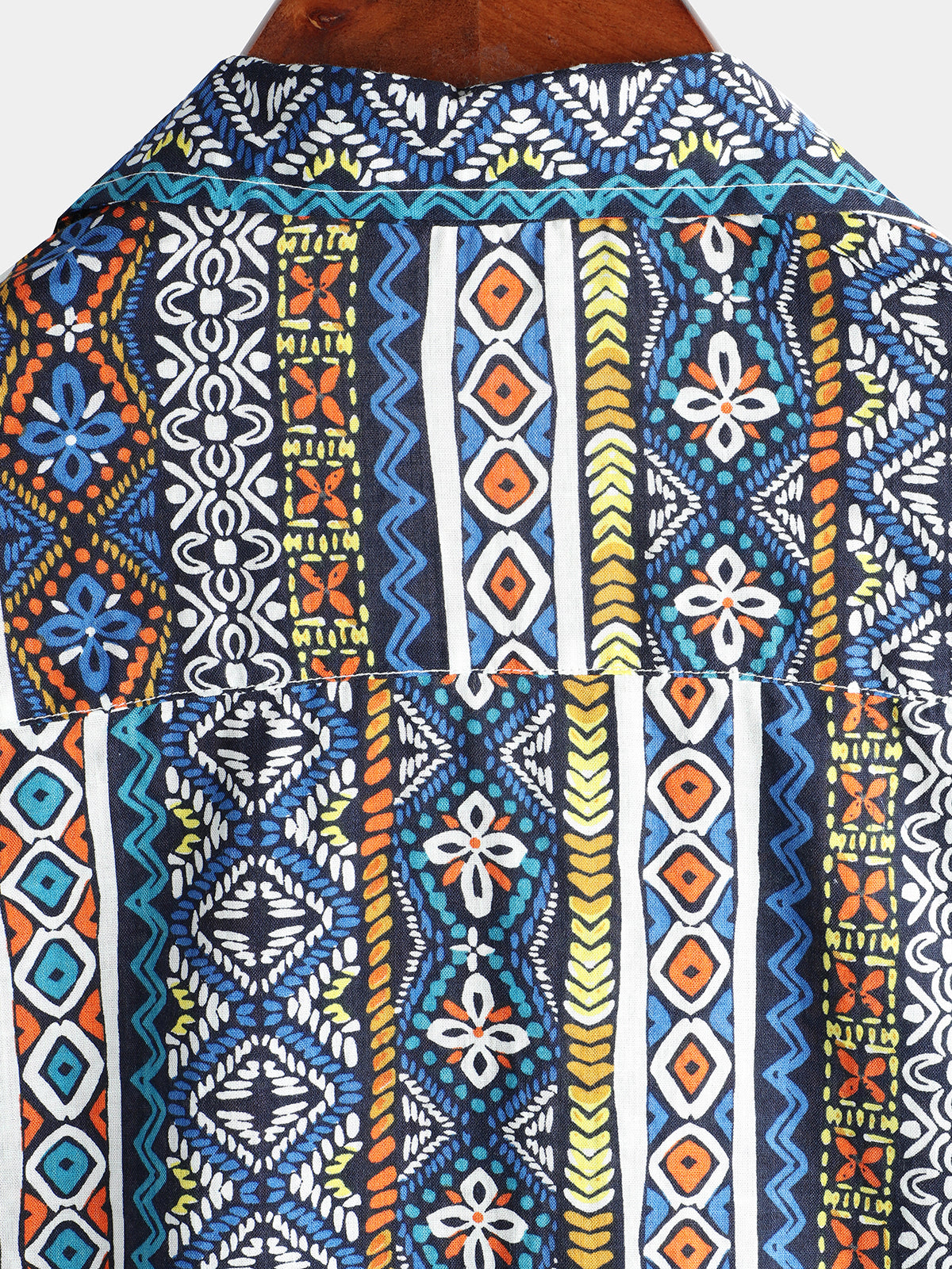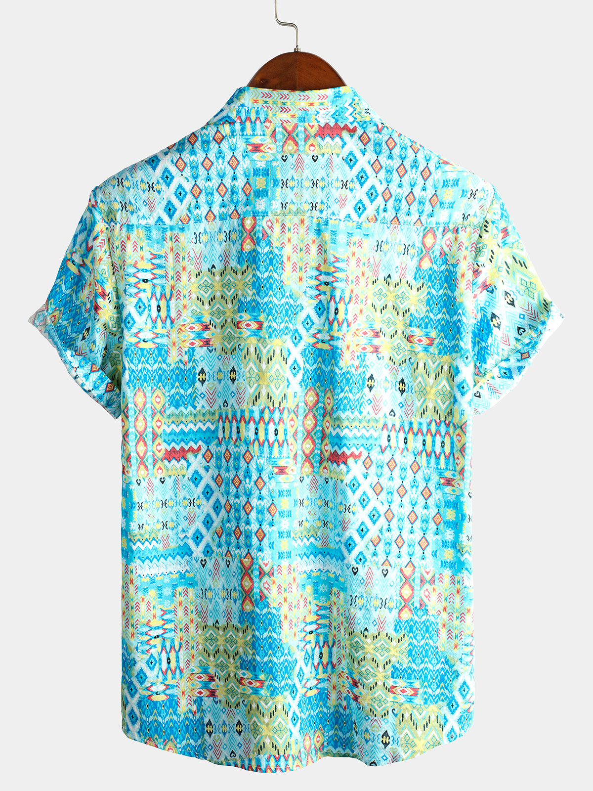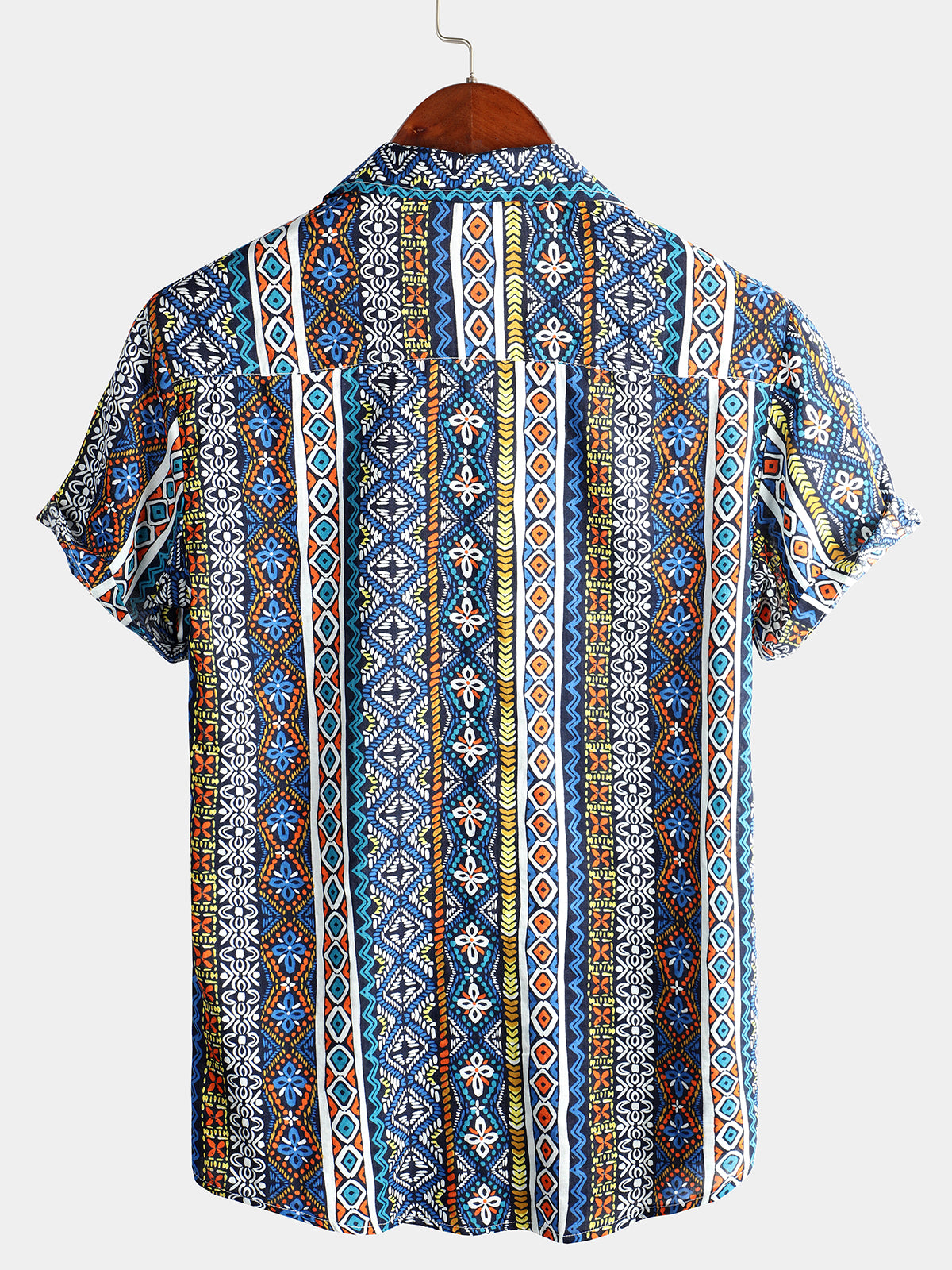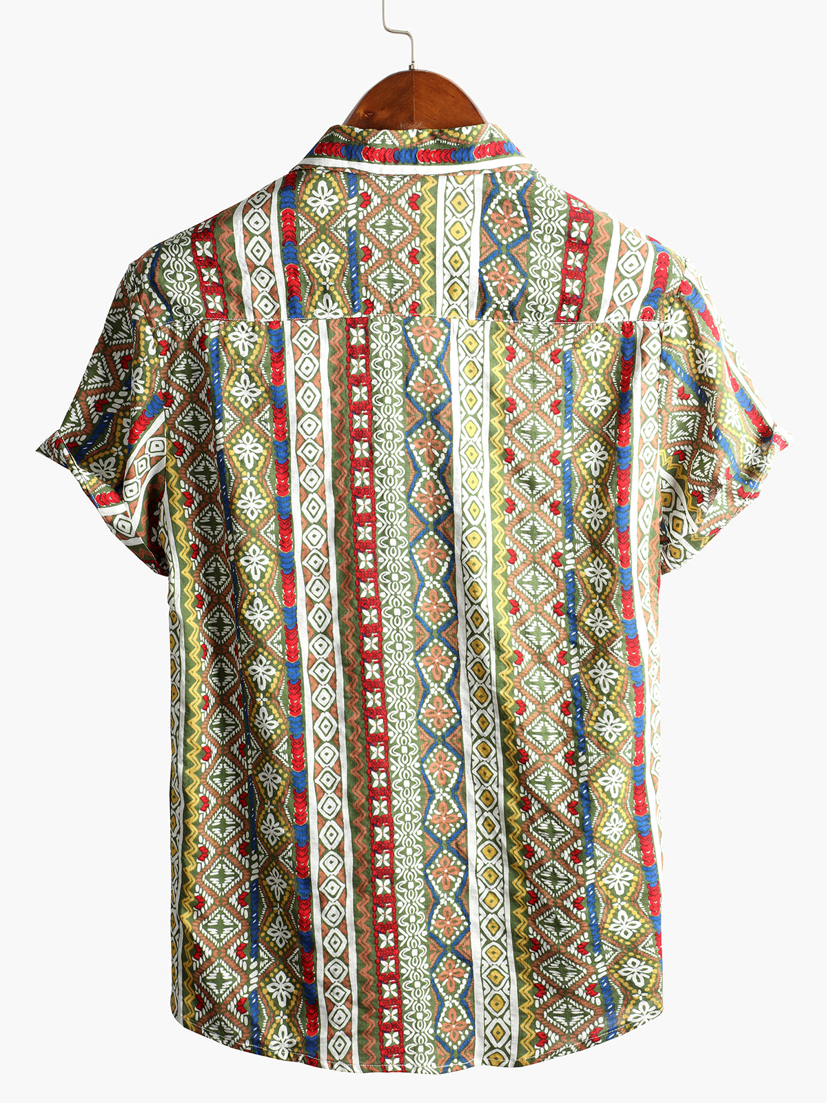 Men's Vintage Short Sleeve Cotton Boho 70s Leisure Button Up Hawaiian Shirt
