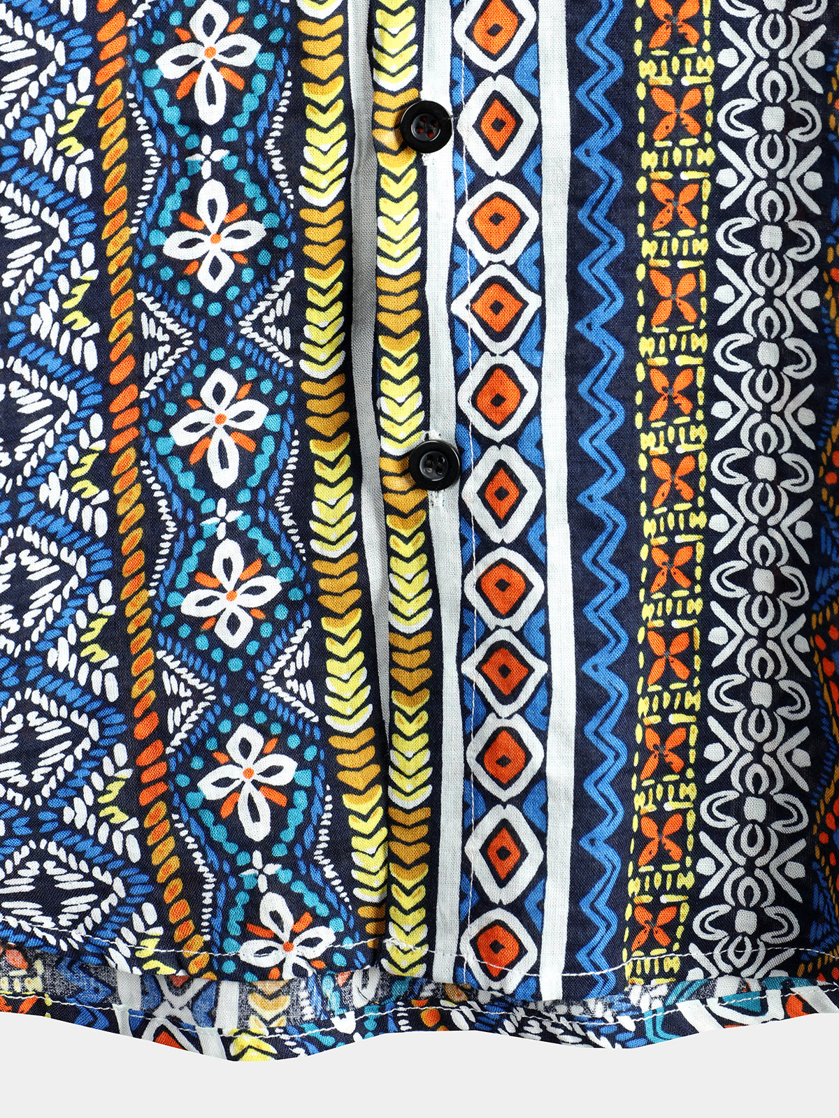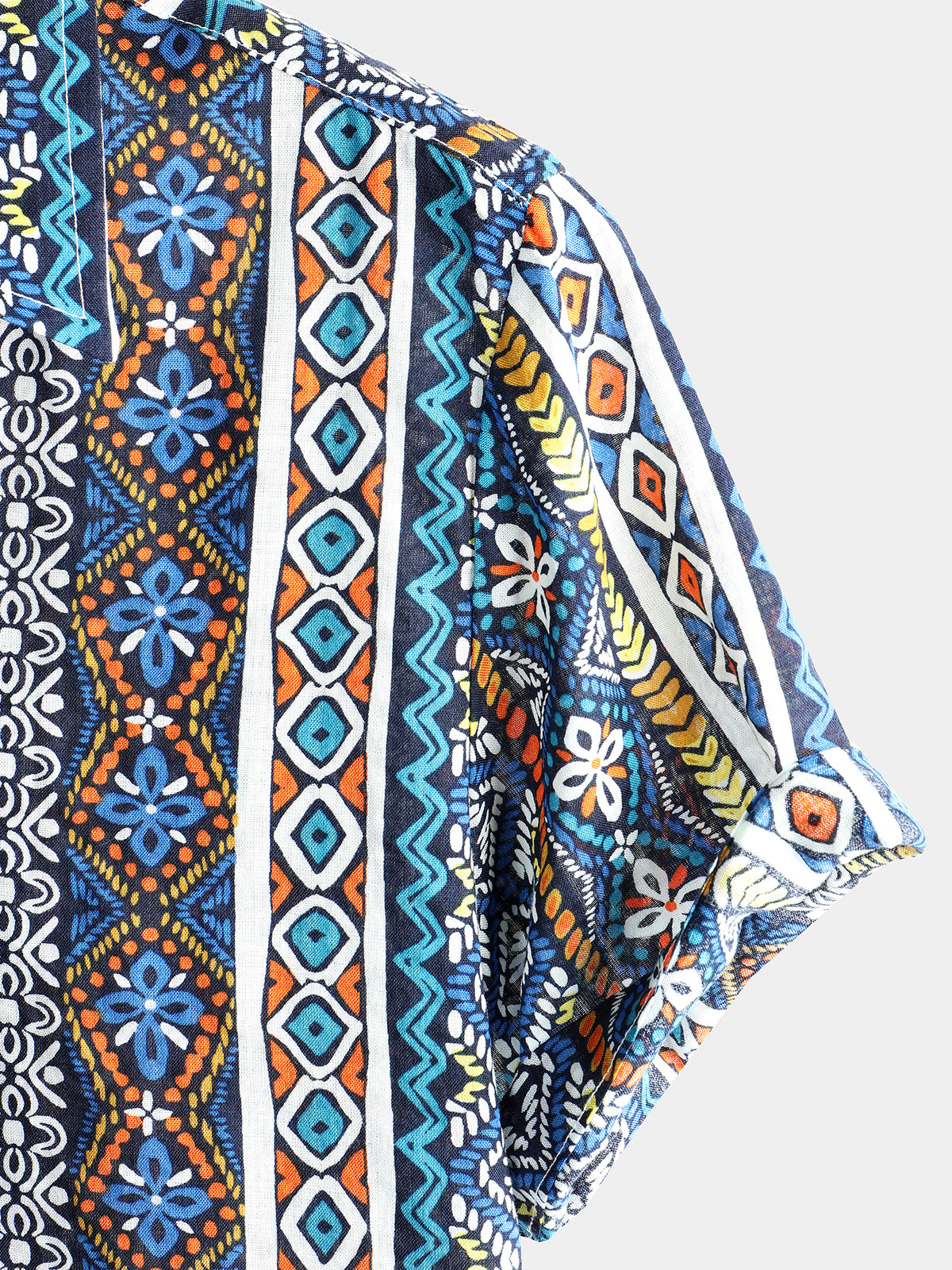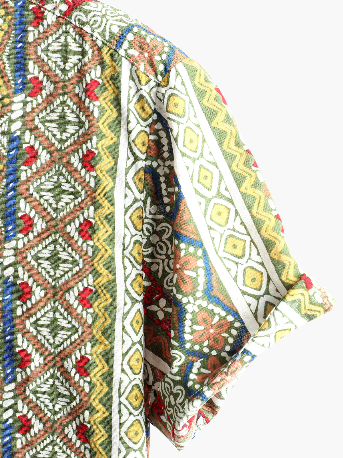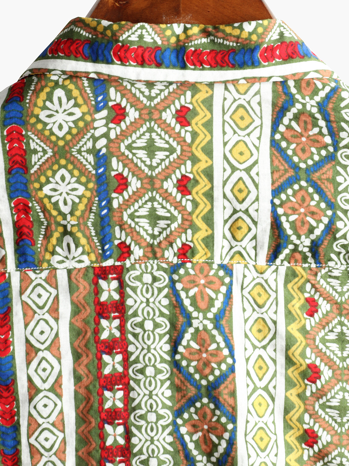 Men's Vintage Short Sleeve Cotton Boho 70s Leisure Button Up Hawaiian Shirt