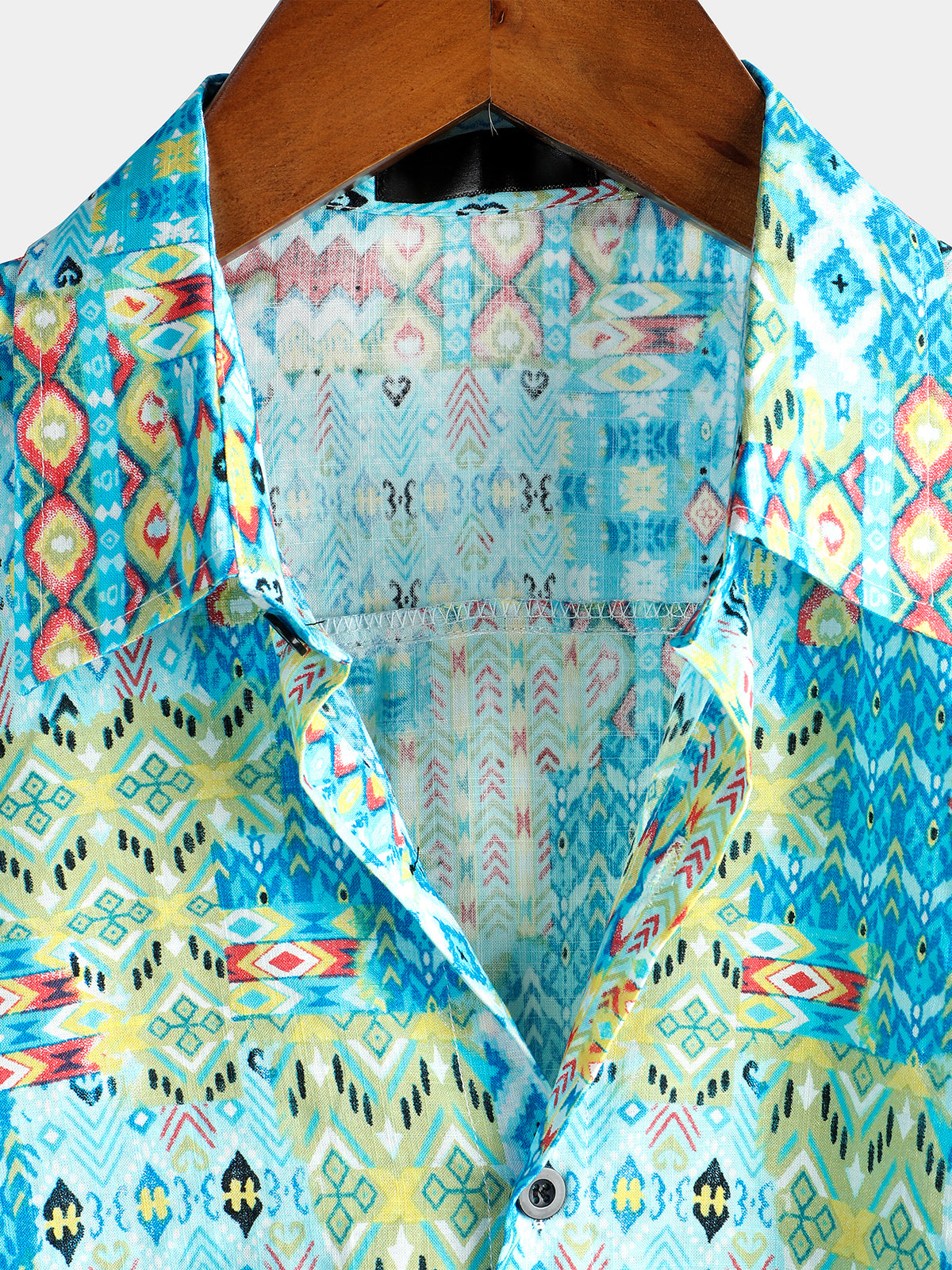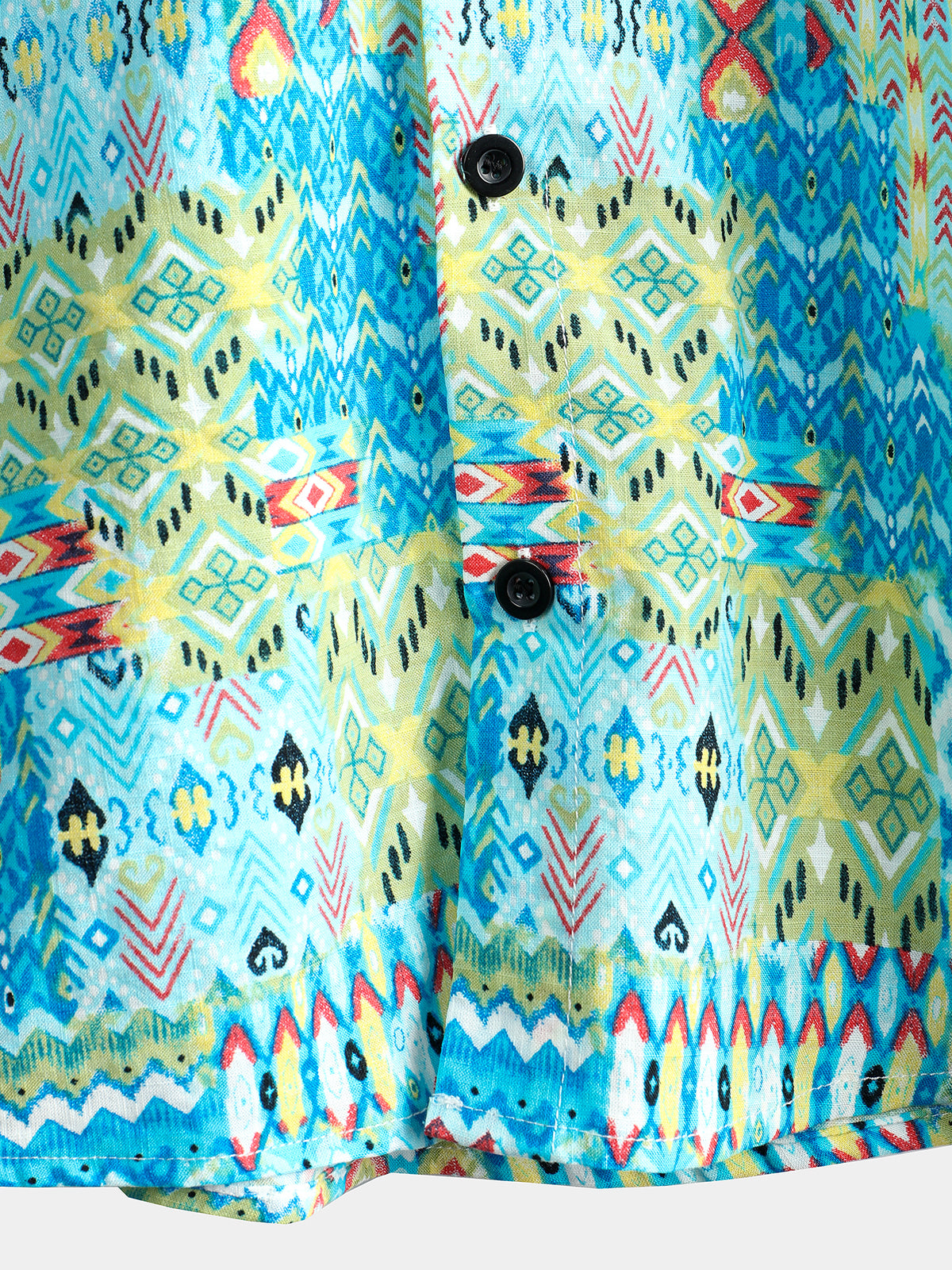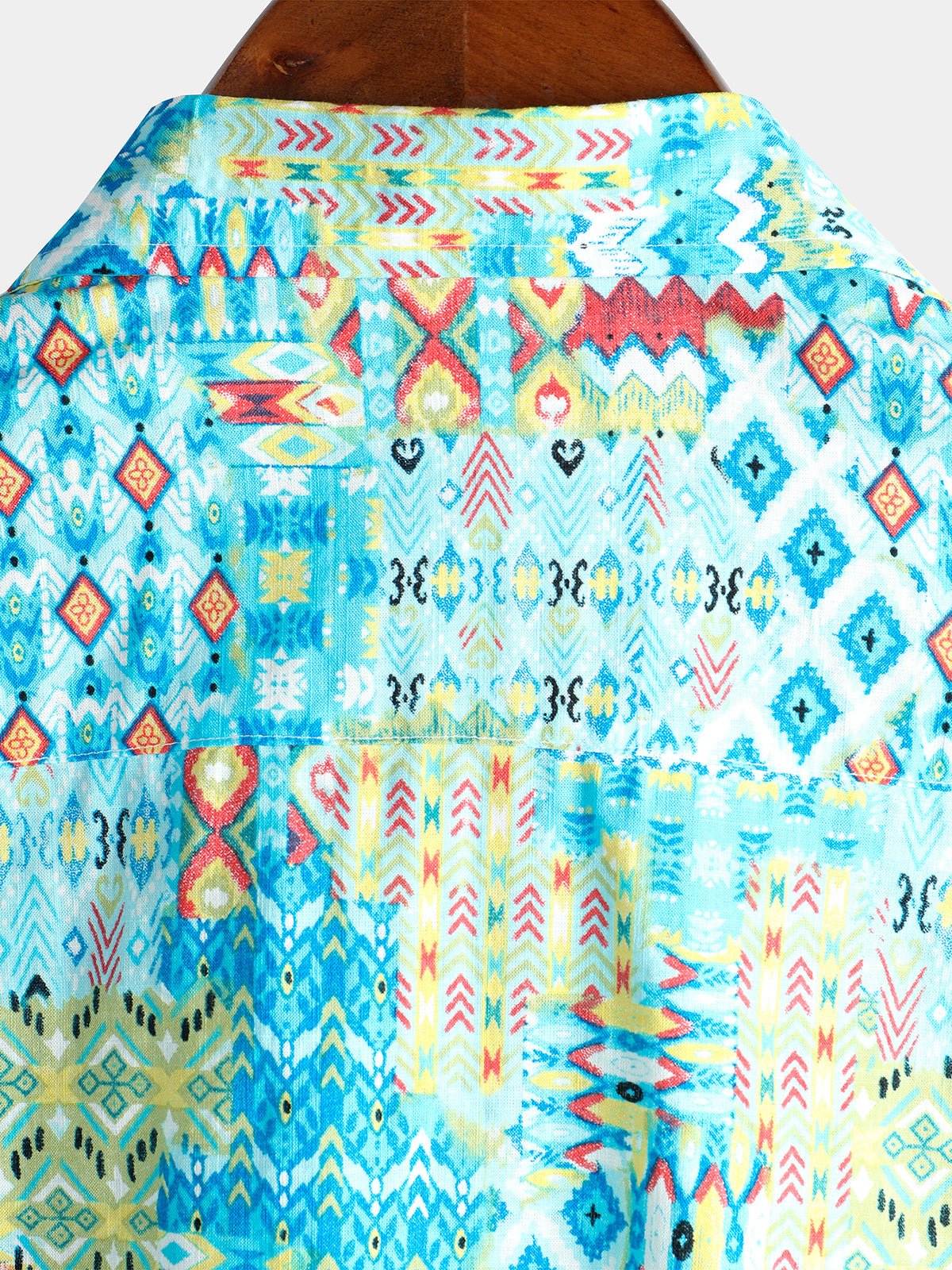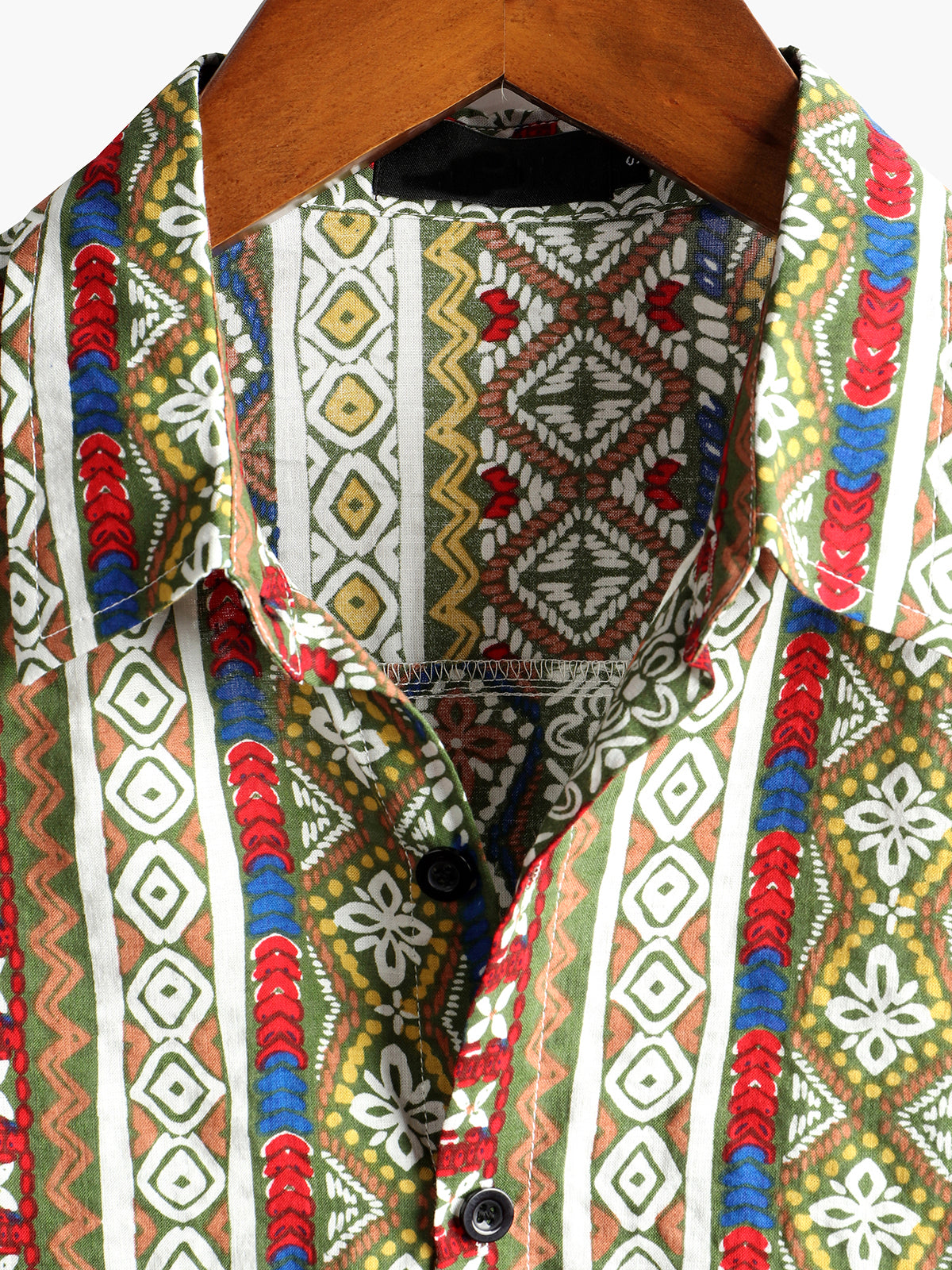 Men's Vintage Short Sleeve Cotton Boho 70s Leisure Button Up Hawaiian Shirt
