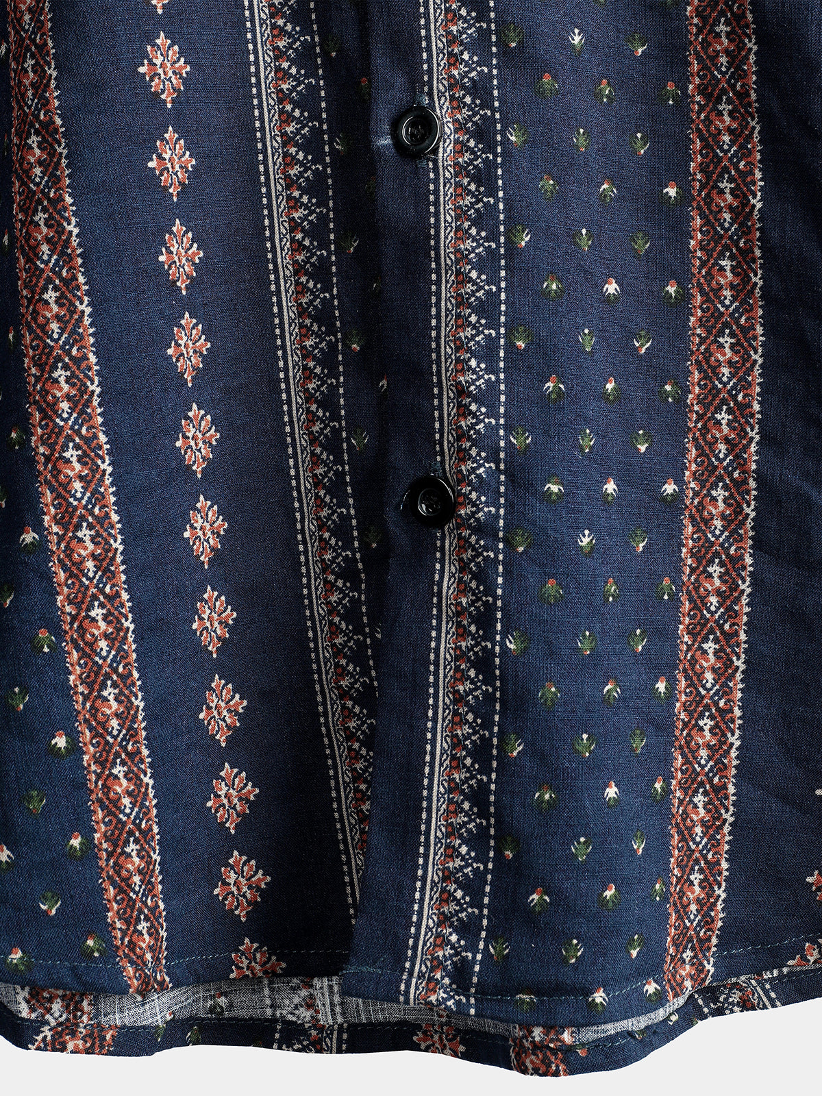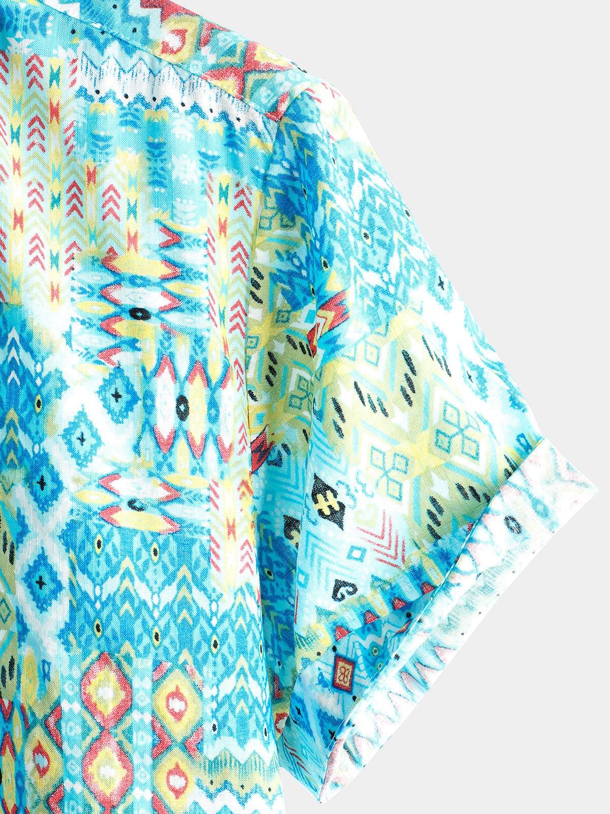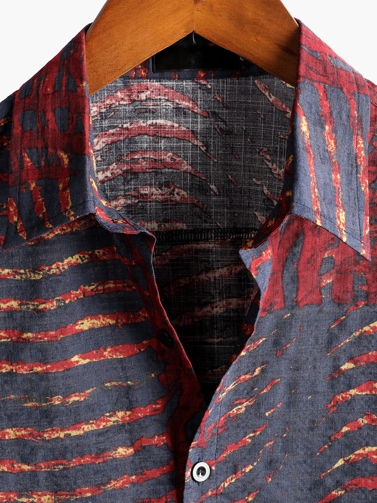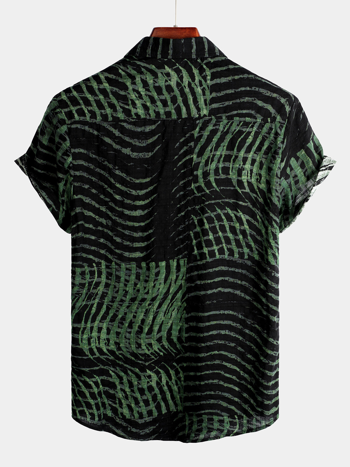 Men's Vintage Short Sleeve Cotton Boho 70s Leisure Button Up Hawaiian Shirt