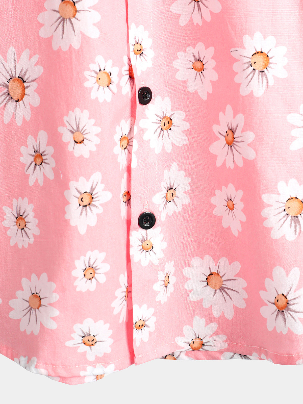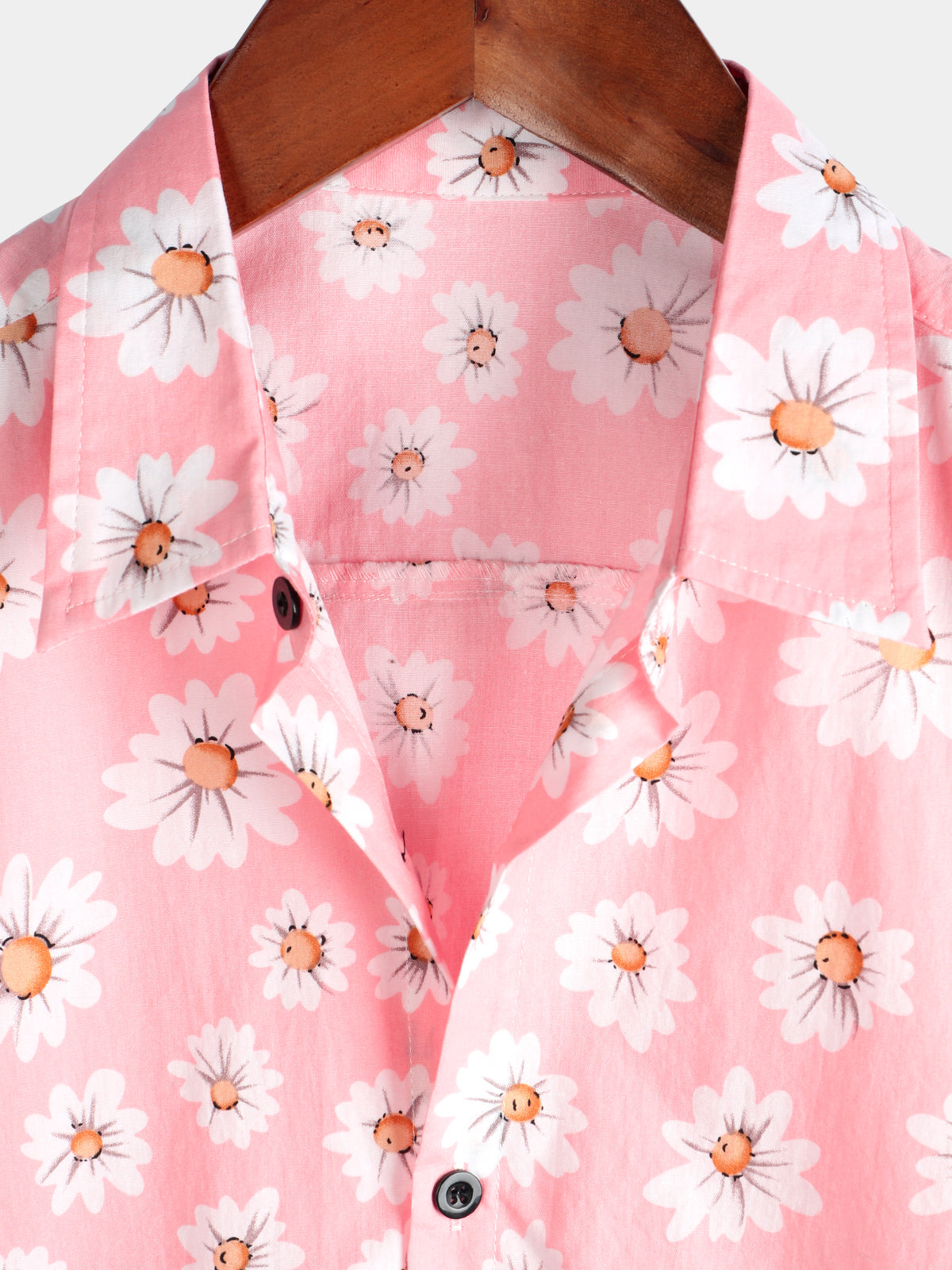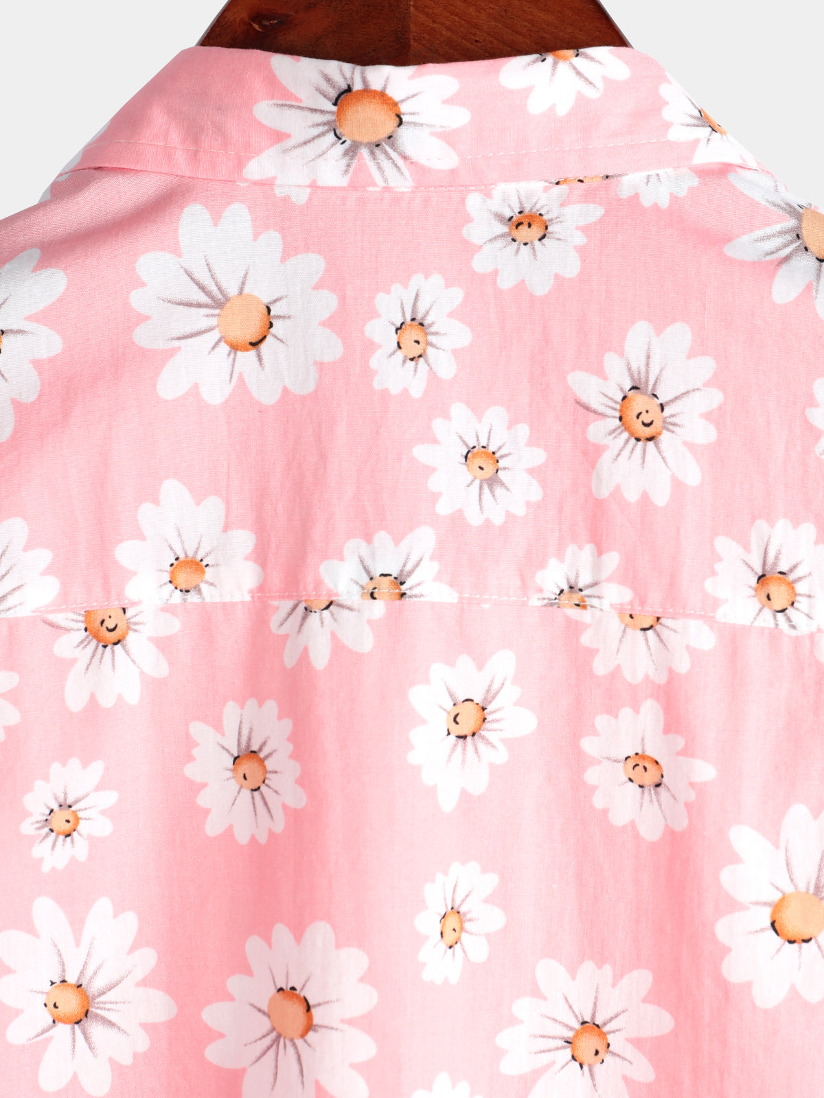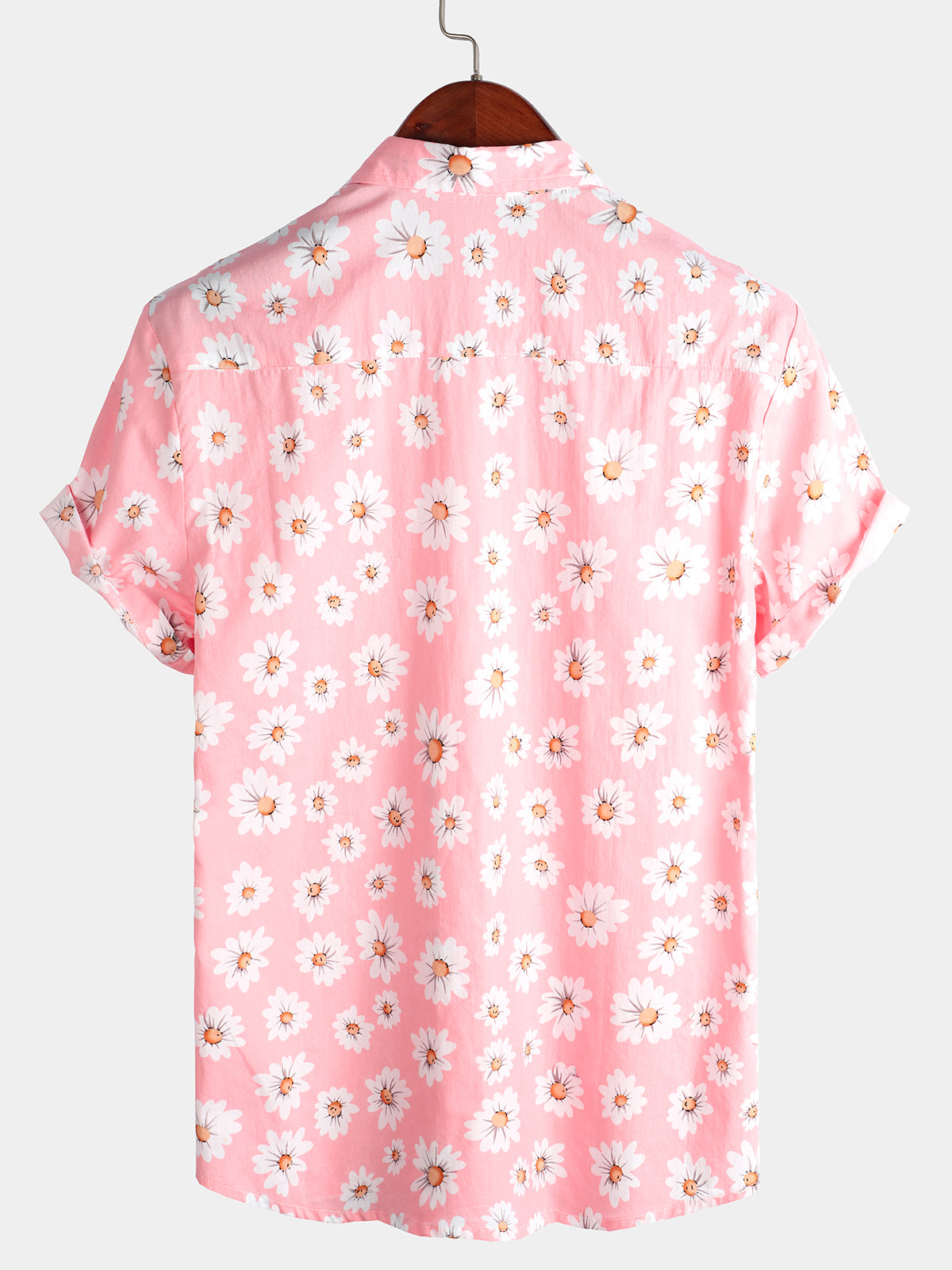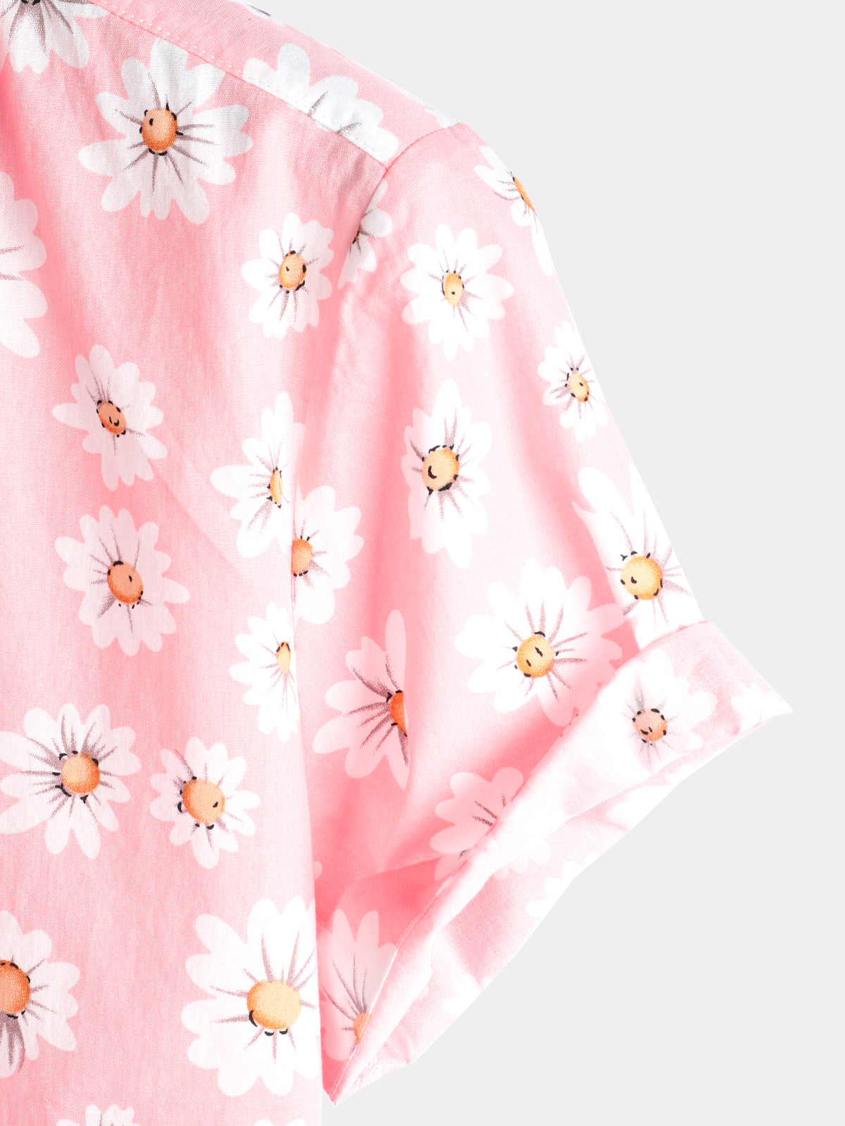 Men's Pink Daisy Hawaiian Short Sleeve Shirt