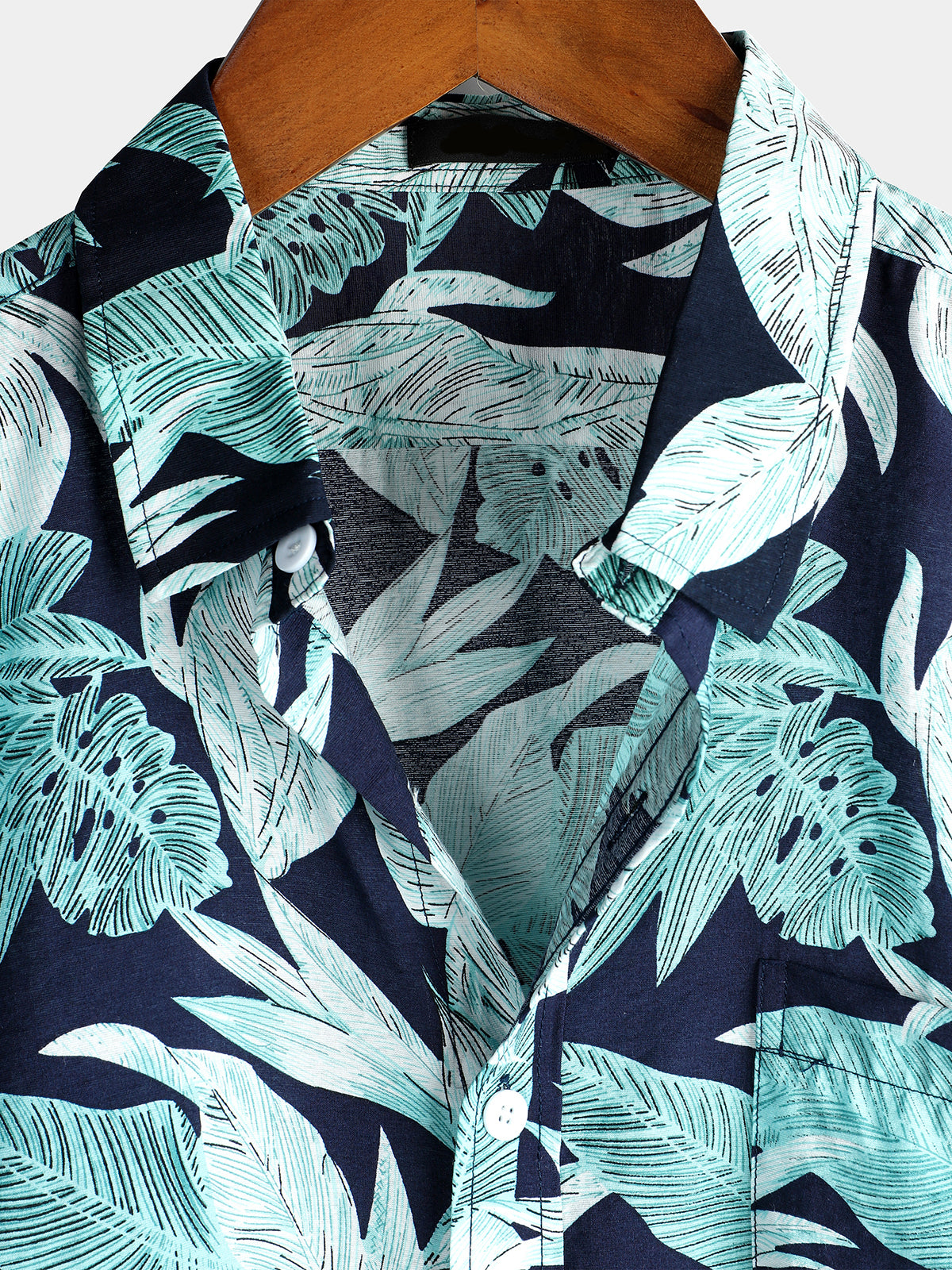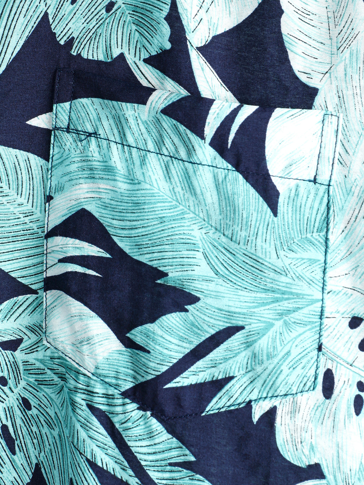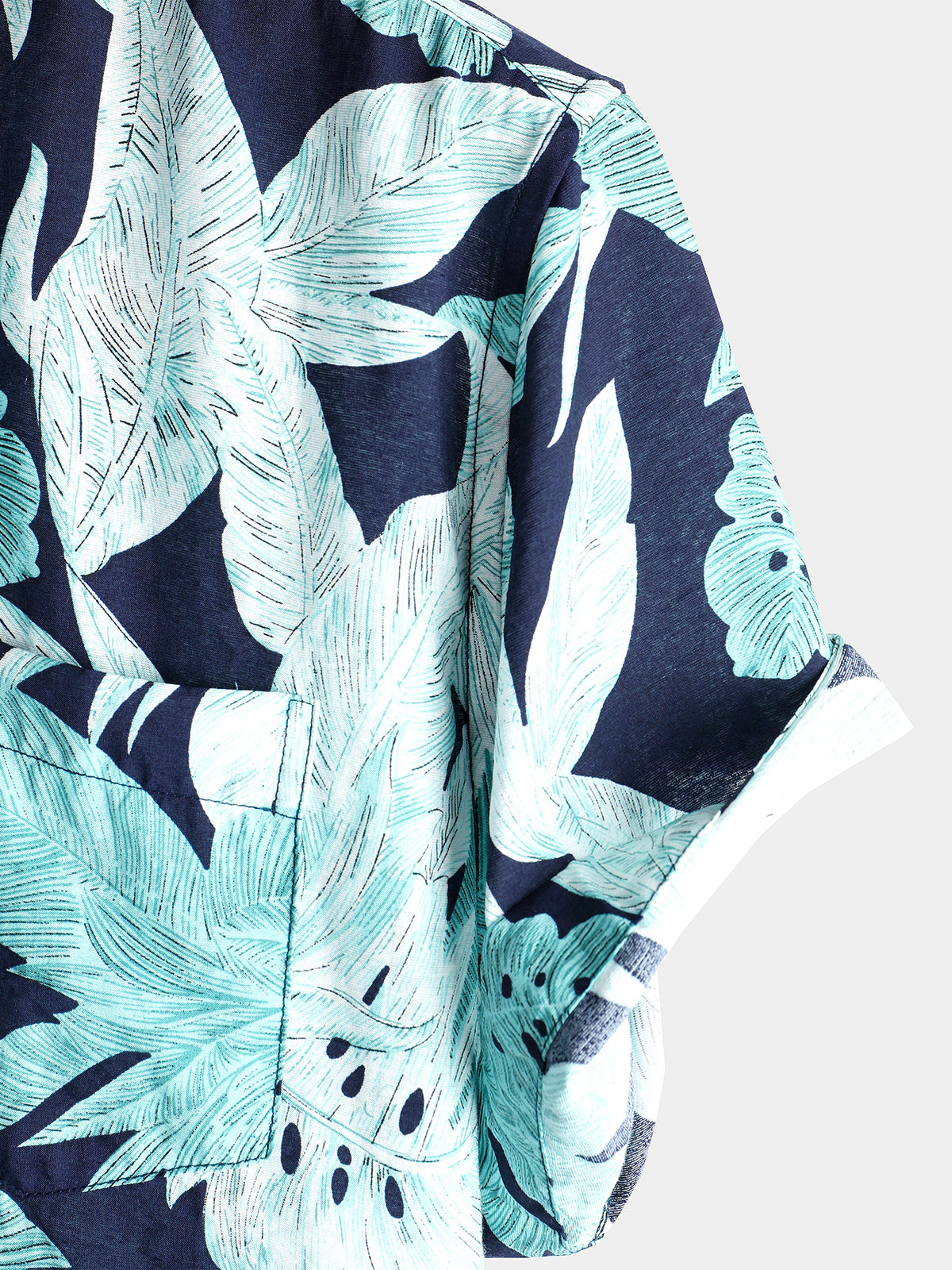 Men's Tropical Leaf Print Pocket Short Sleeve Shirt
