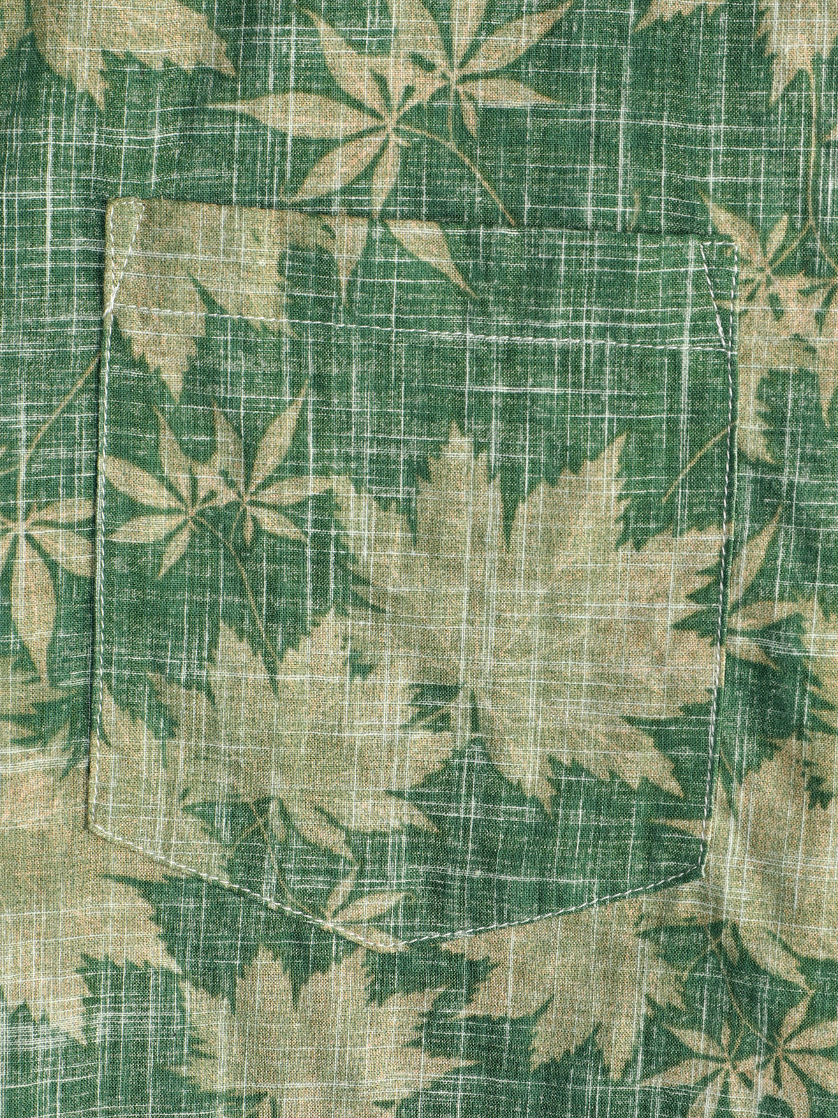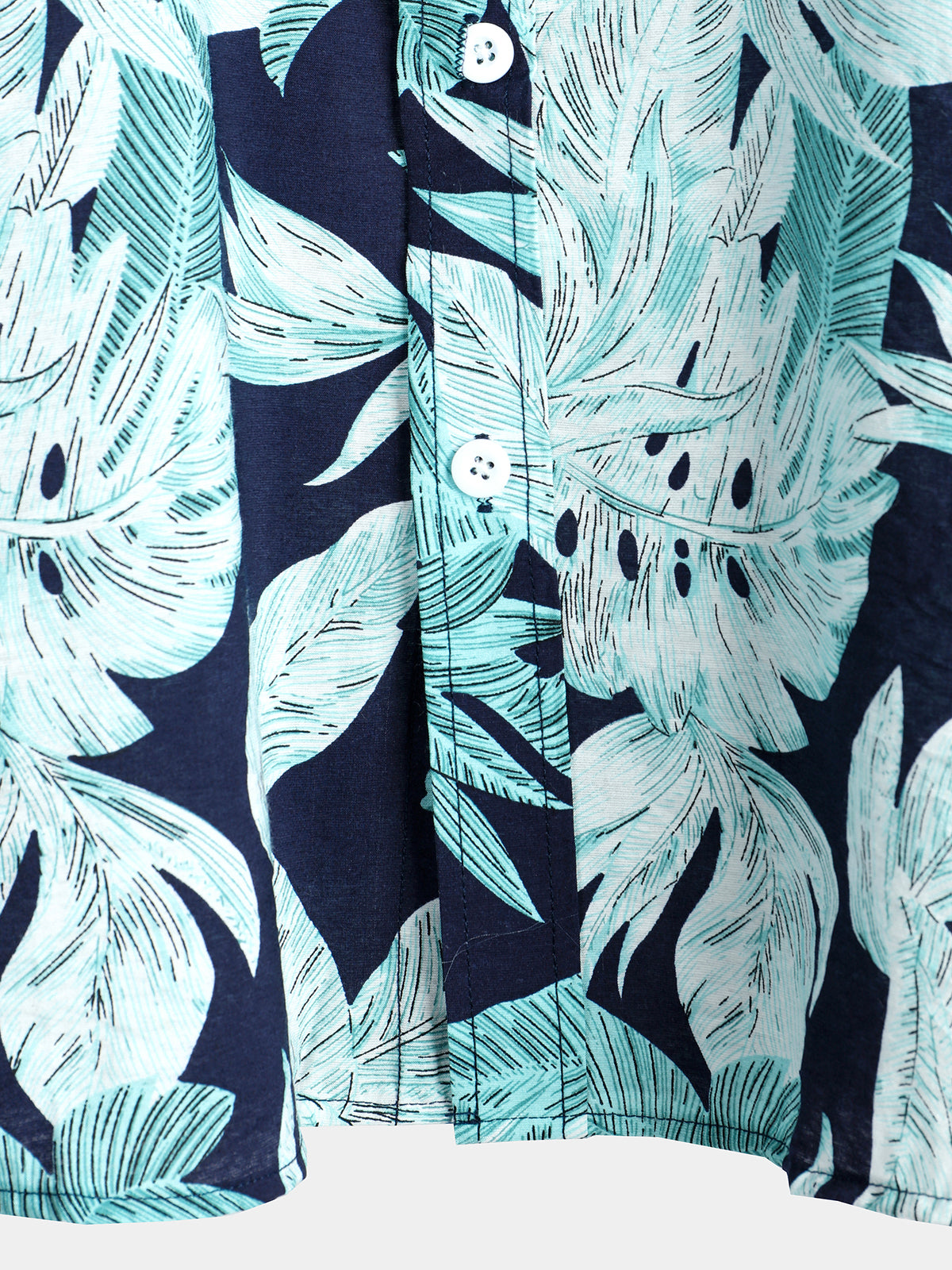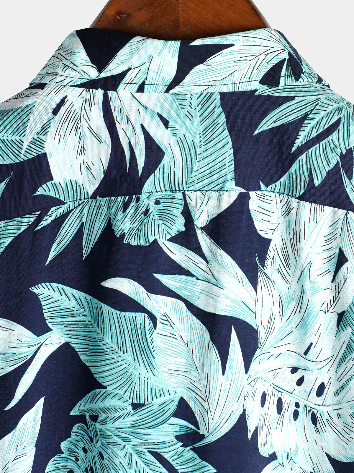 Men's Tropical Leaf Print Pocket Short Sleeve Shirt