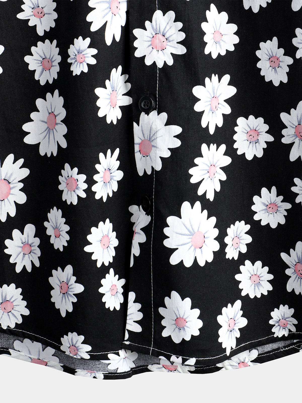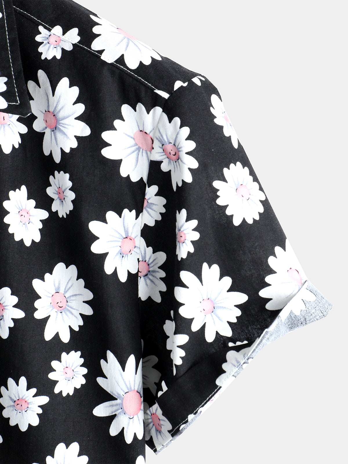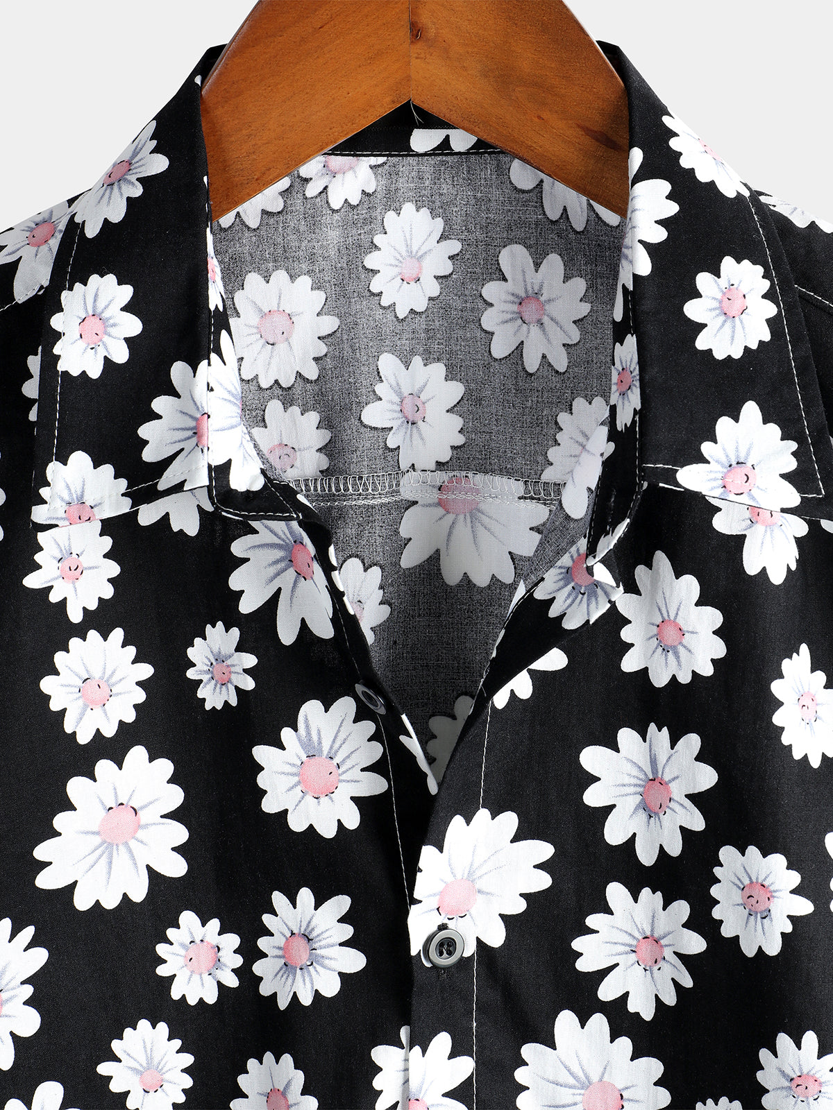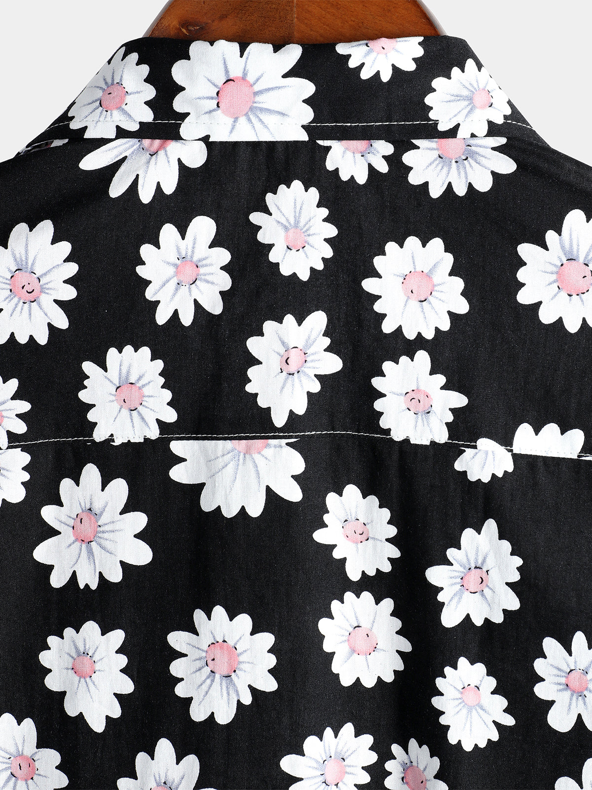 Men's Black Daisy Hawaiian Short Sleeve Shirt