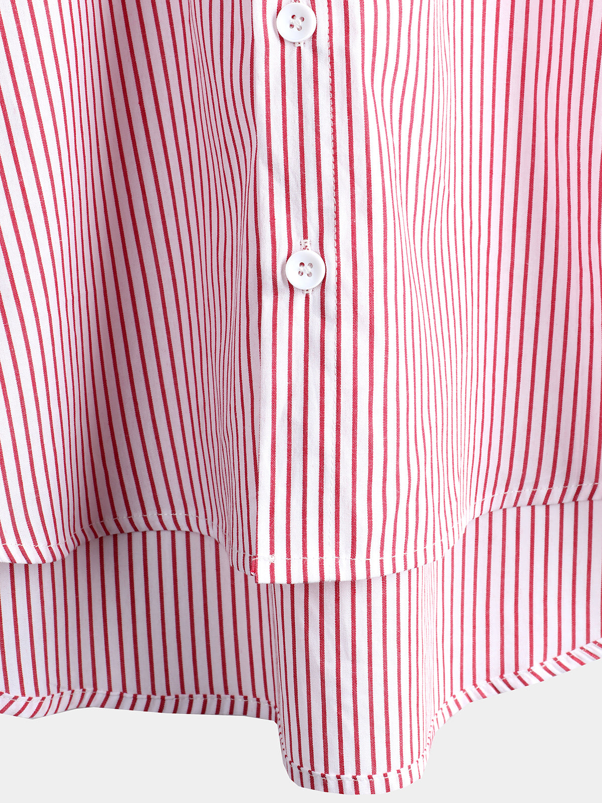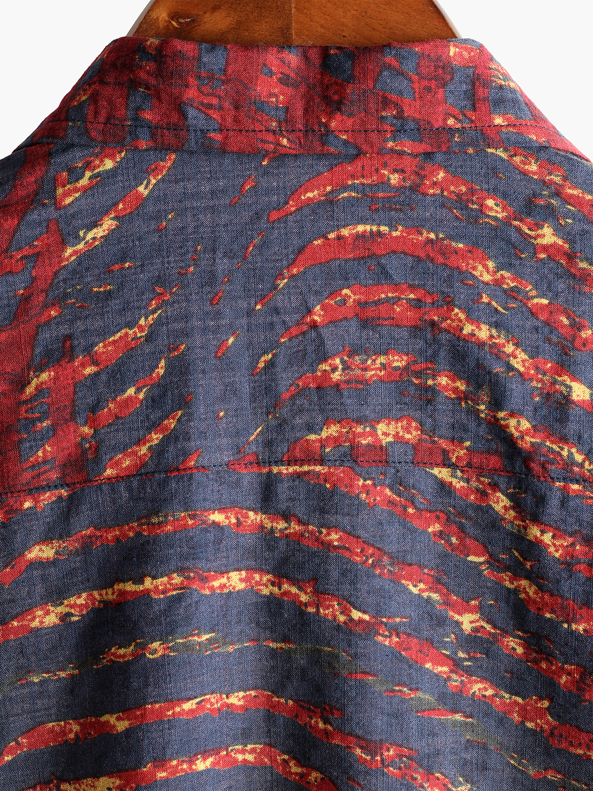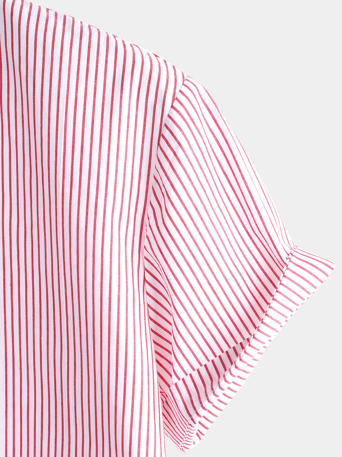 Men's Cotton Striped Stand Collar Short Sleeve Shirt