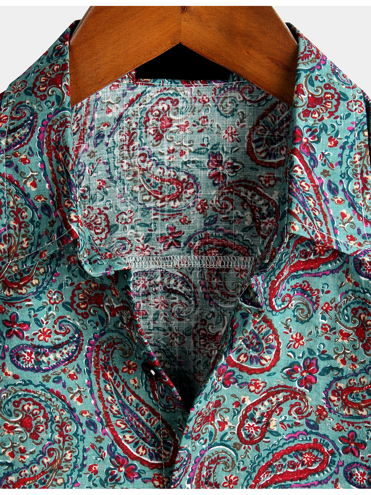 Men's Paisley Cotton Short Sleeve Button Up Vintage Shirt