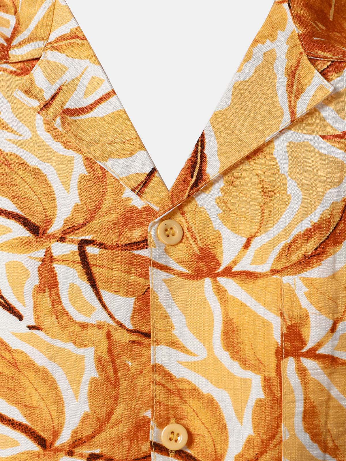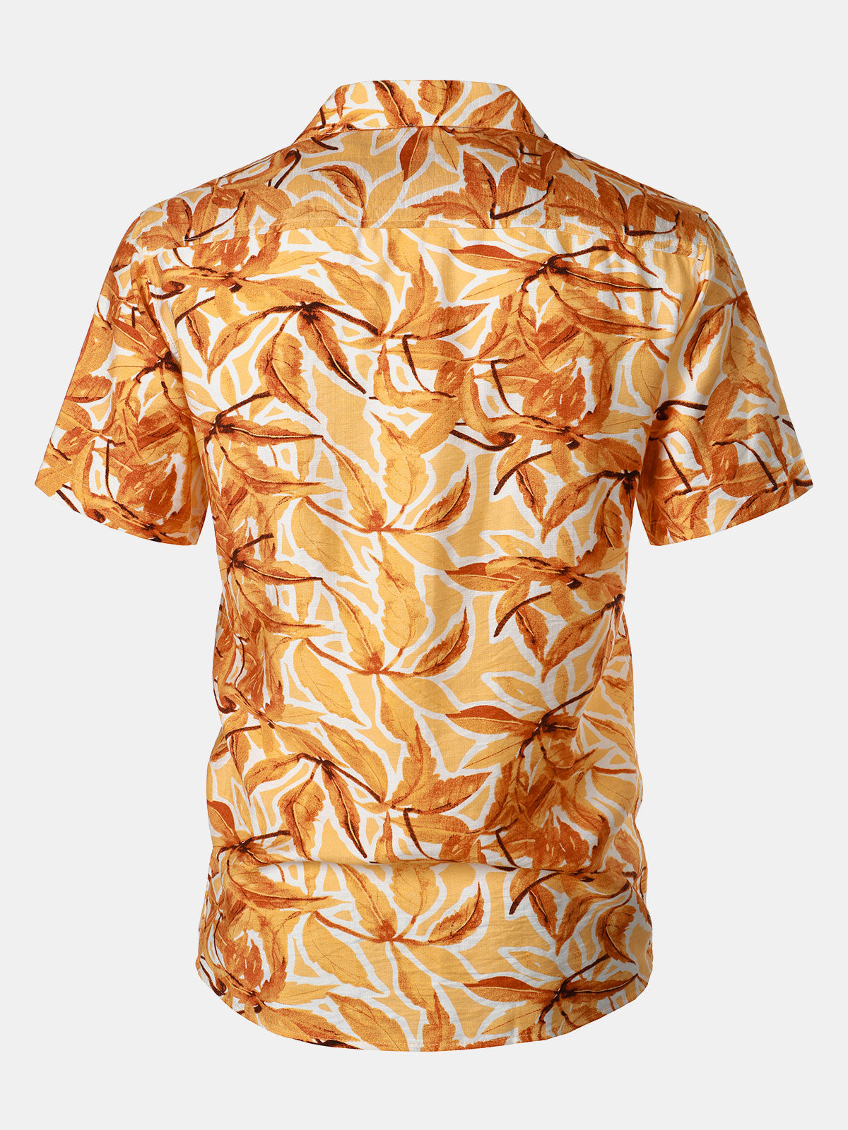 Men's Yellow Tropical Print Pocket Hawaiian Short Sleeve Shirt