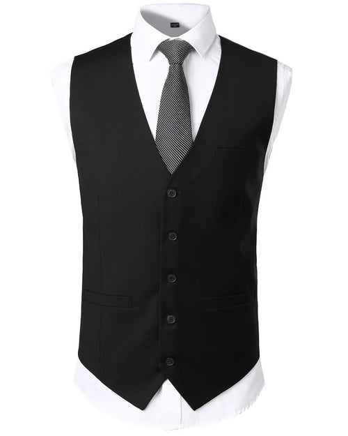 Mens V-Neck Formal Suit Vest Slim Fit Dress Vest Wedding Waistcoat for Tuxedo
