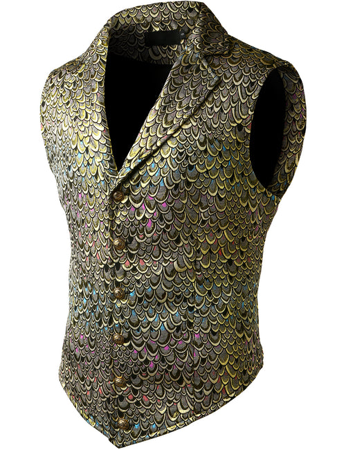 Men's Victorian Waistcoat Shiny Suit Vest Steampunk Gothic Golden Waistcoat