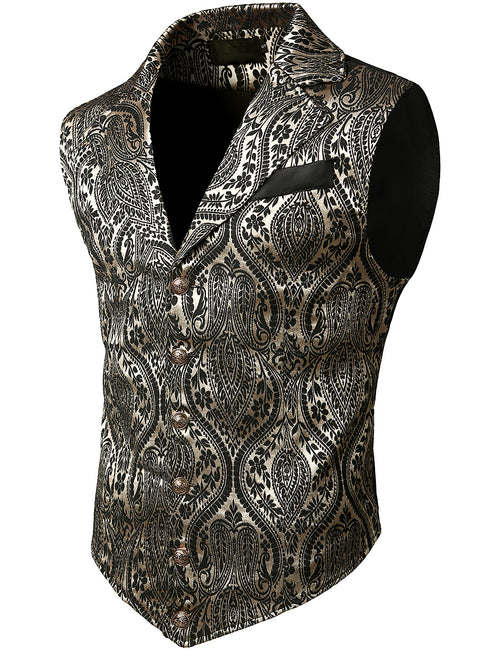 Men's Victorian Suit Vest Vintage Paisley Steampunk Gothic Black Waistcoat