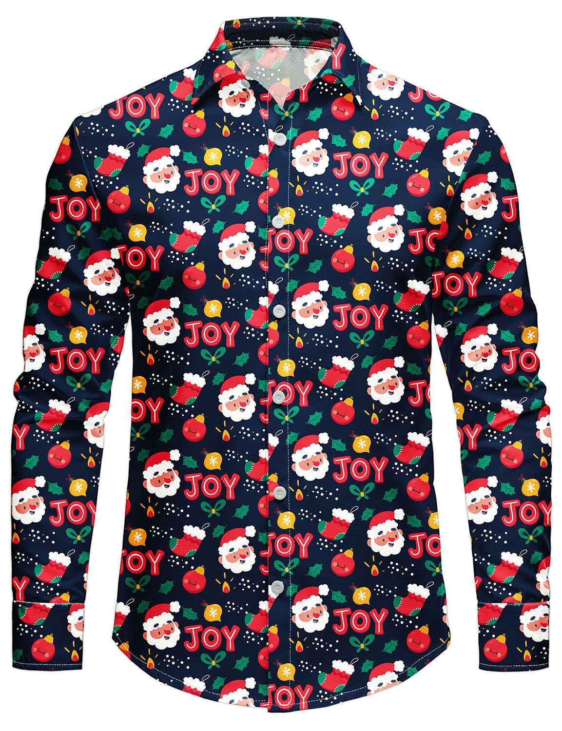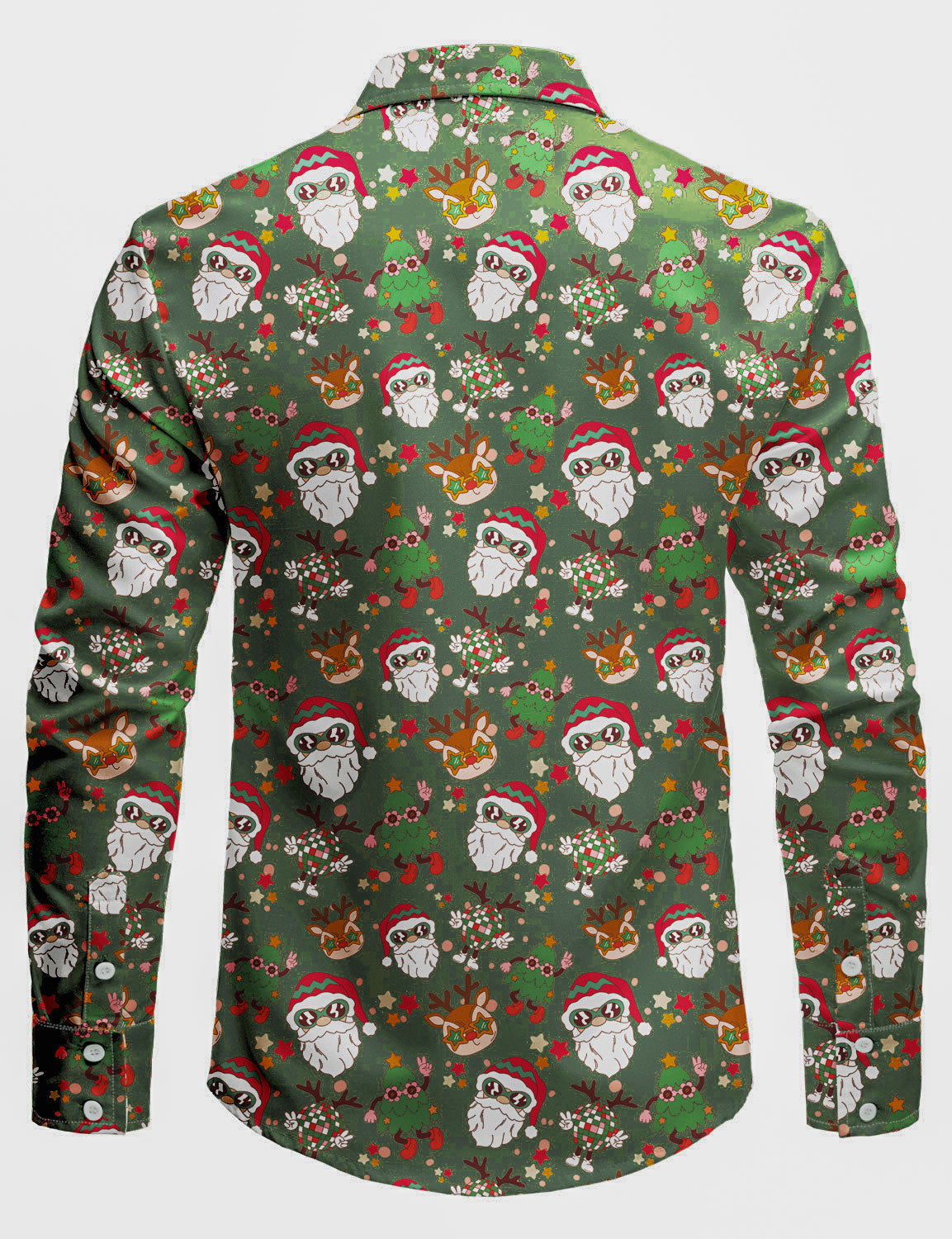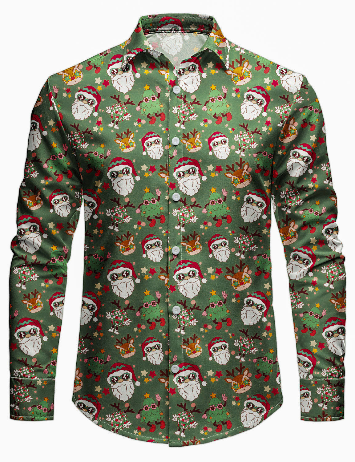 Men's Christmas Cute Santa Claus Printed Holiday Long Sleeve Shirt