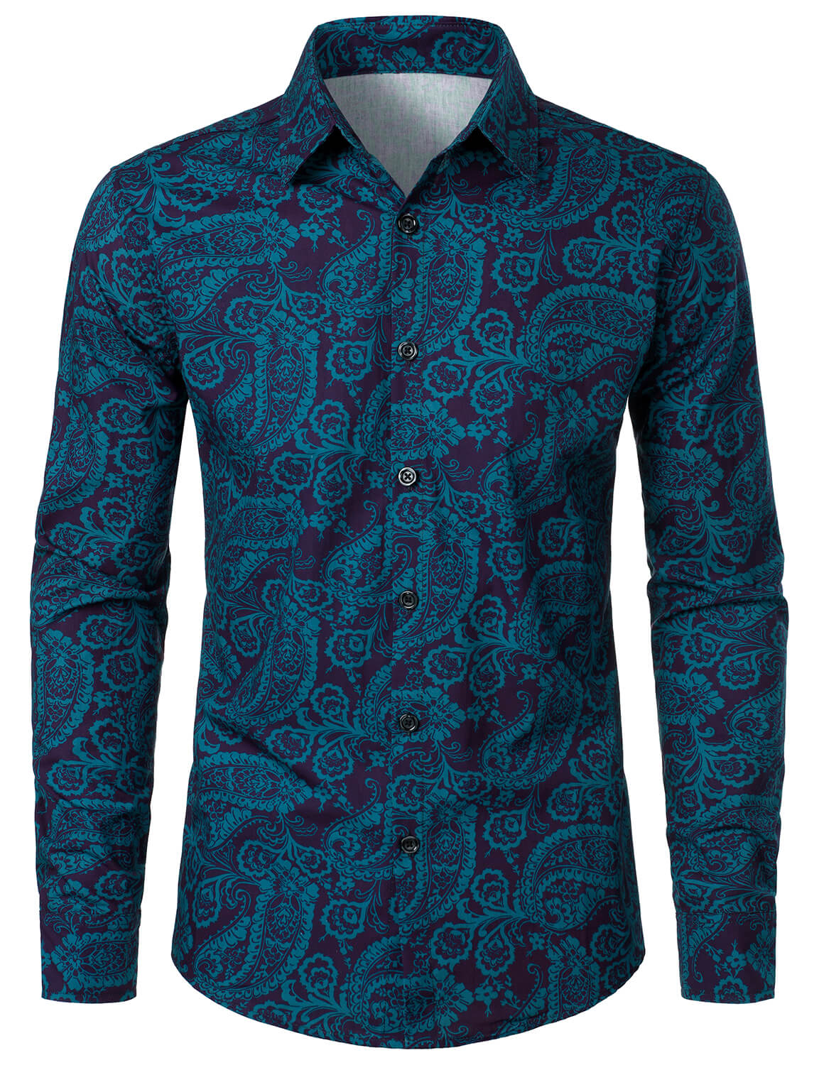 Men's Paisley Print Button Up Cotton Casual Long Sleeve Shirt