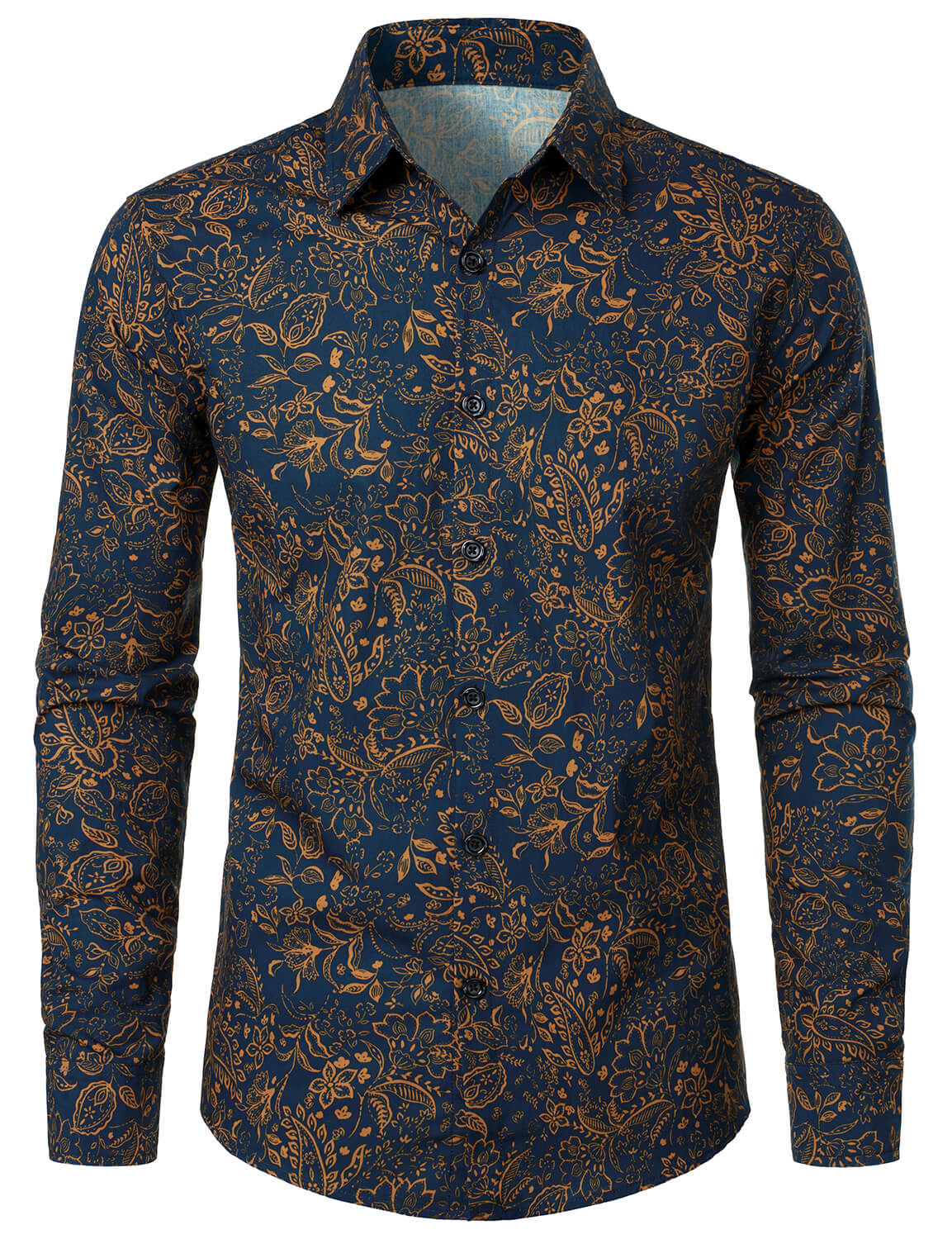 Men's Paisley Floral Vintage Long Sleeve Shirt