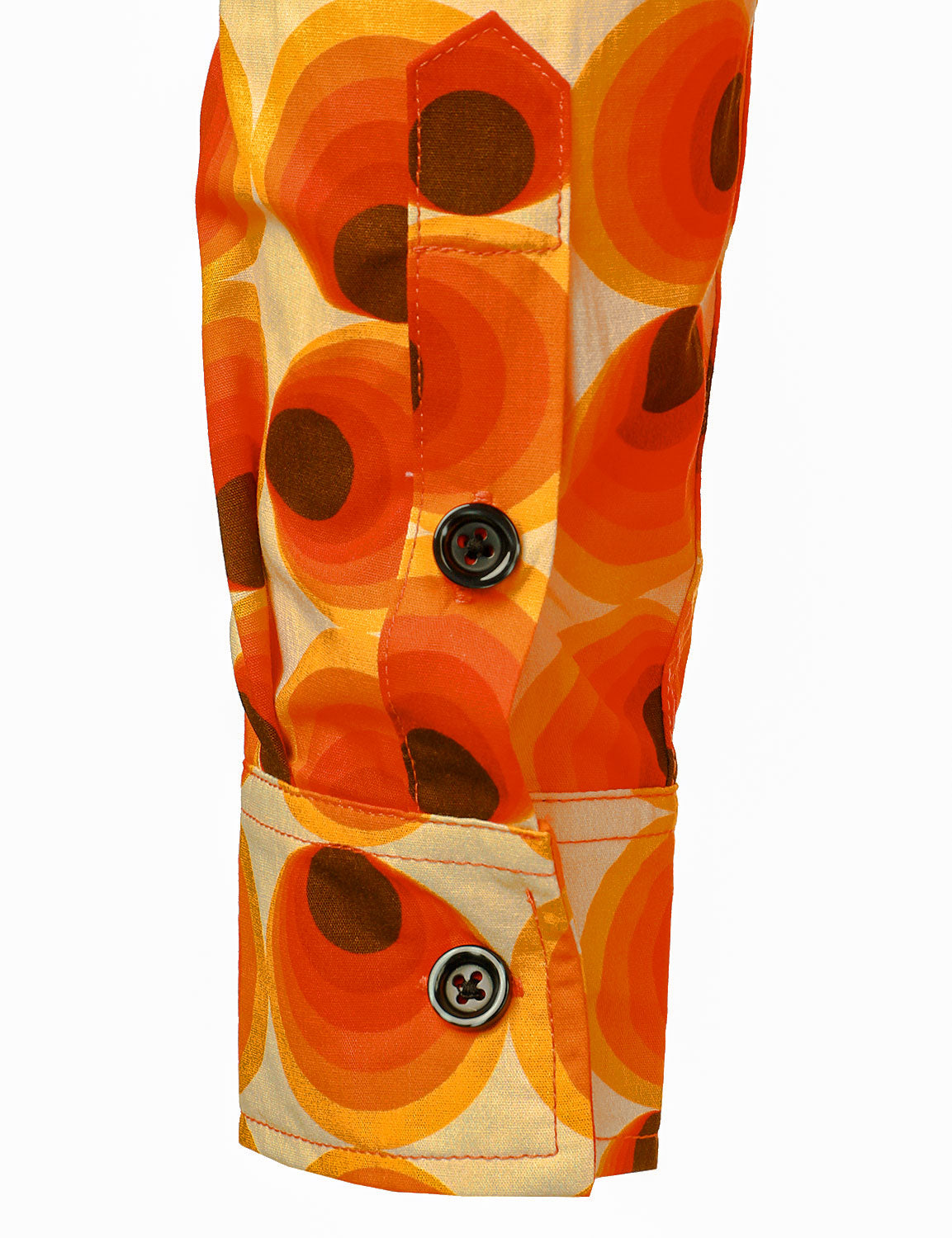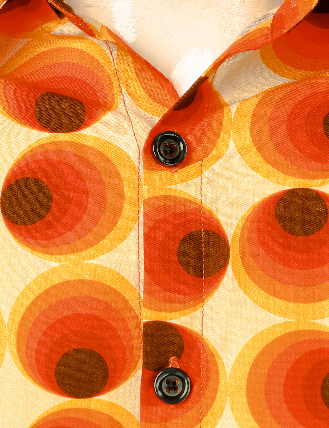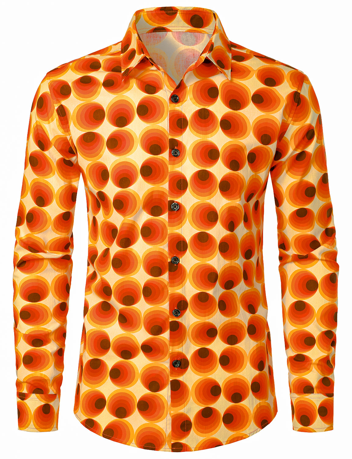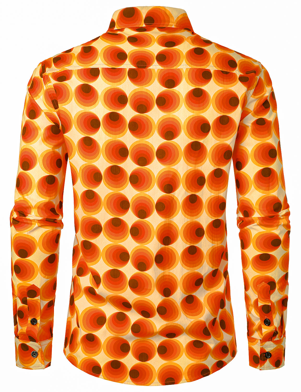 Men's Retro 70s Cotton Geometric Round Print Long Sleeve Shirt